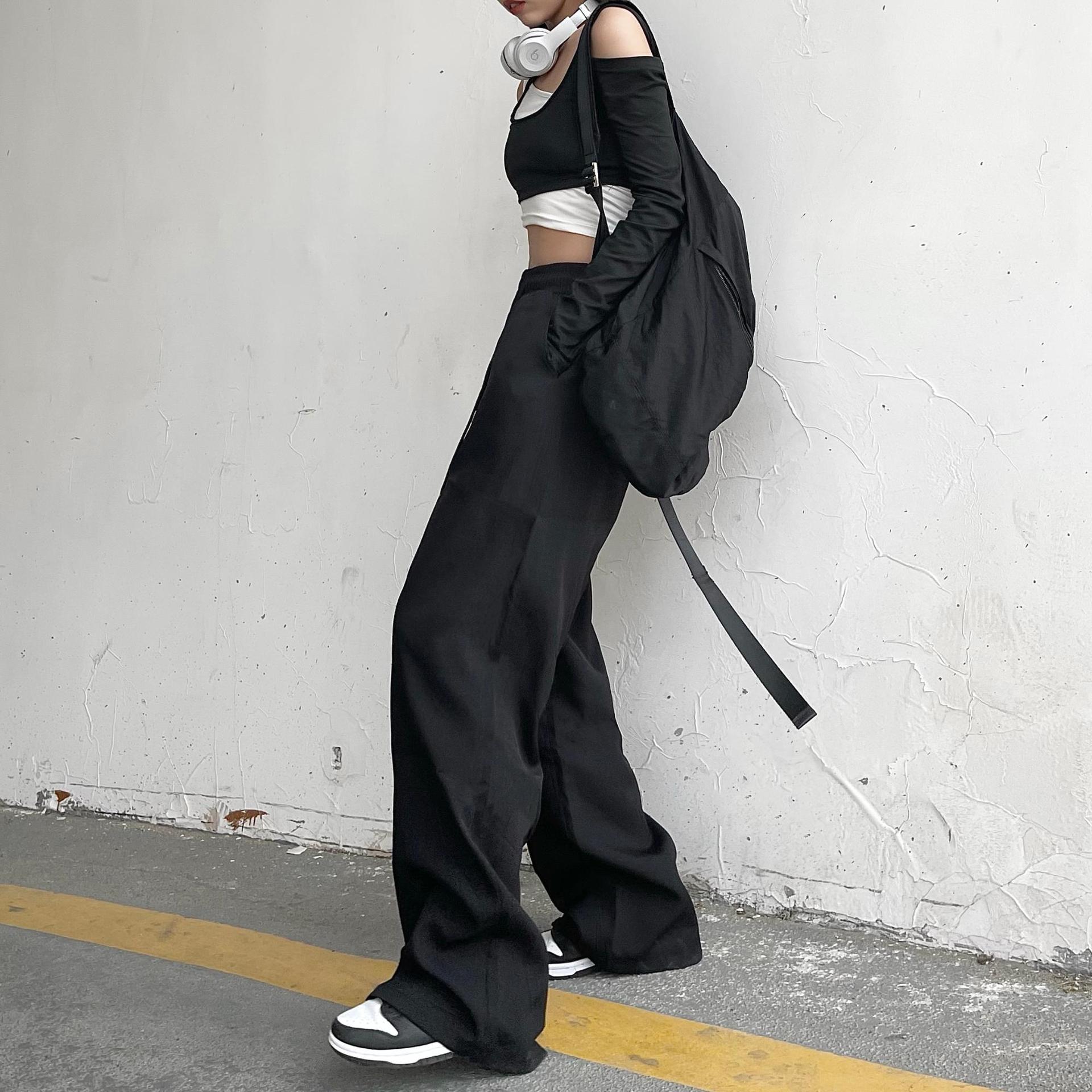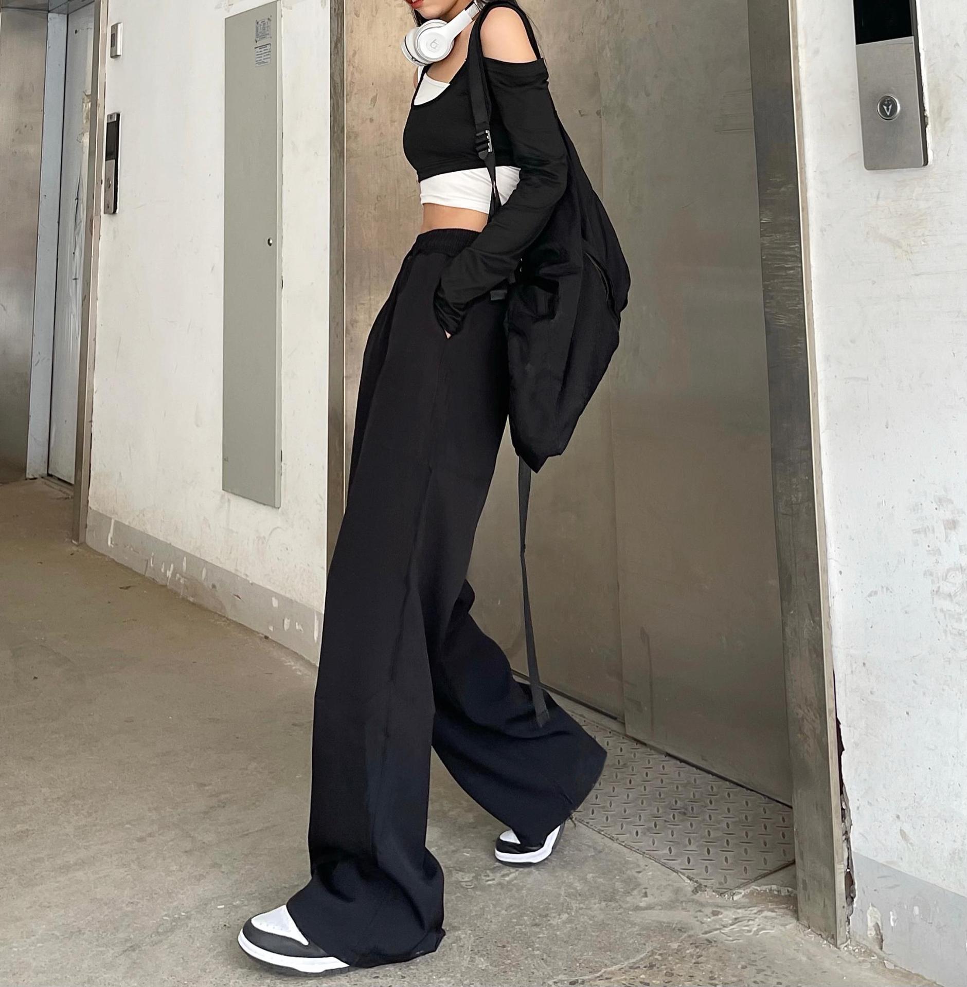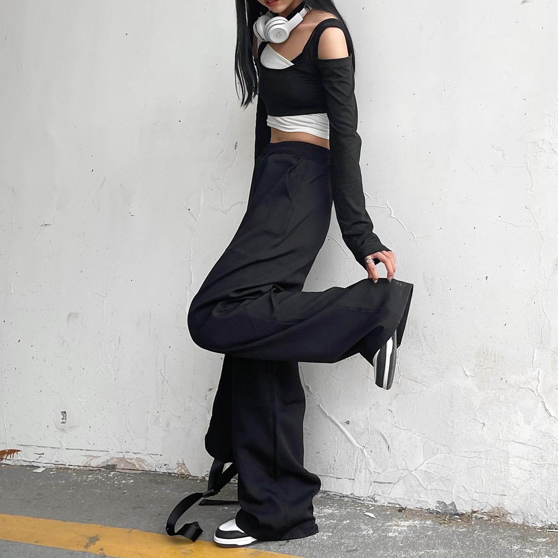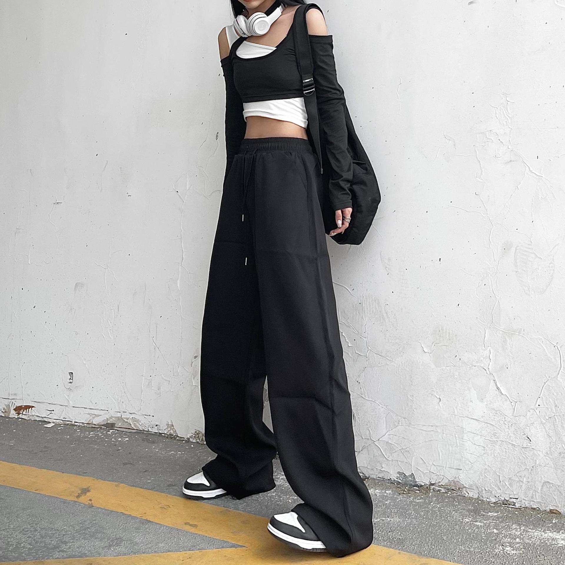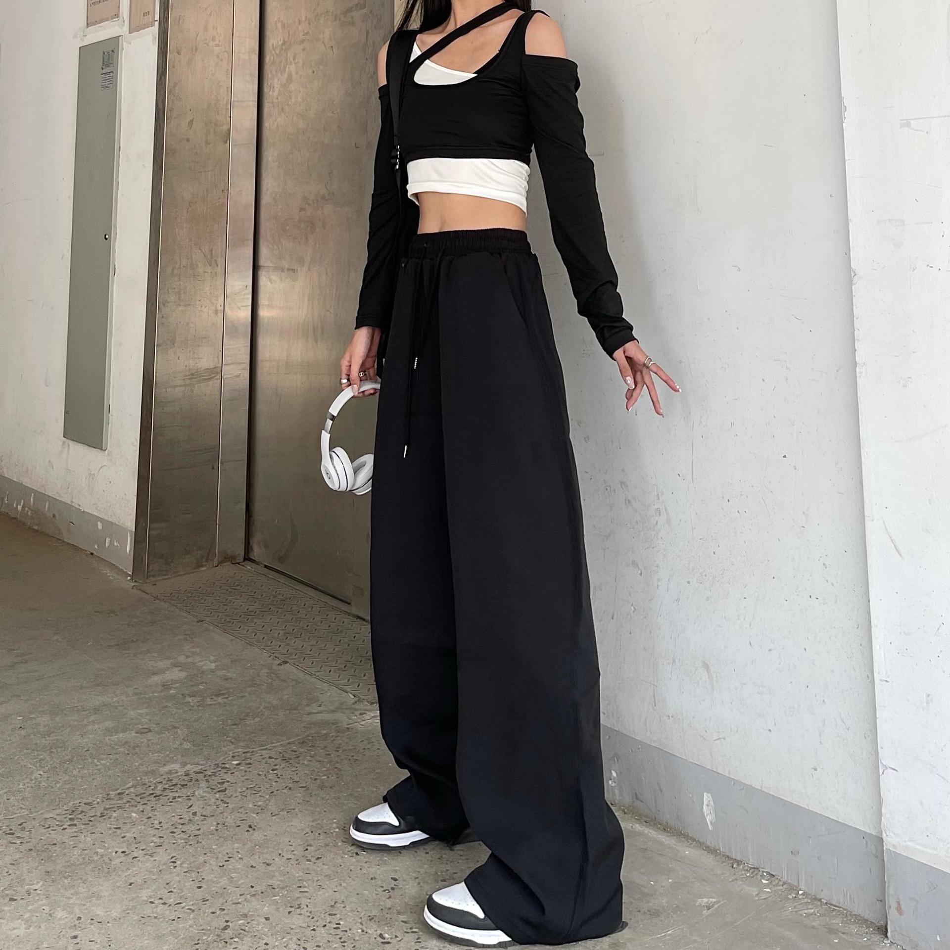 Tiro real talla grande casual pantalón de mop deportivo para mujer otoño Nuevo recto cintura alta slim holgado pierna ancha pantalones al por mayor