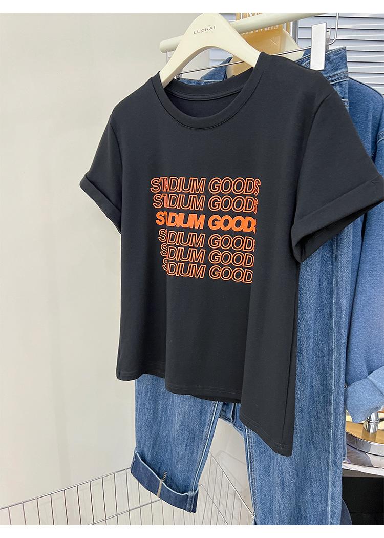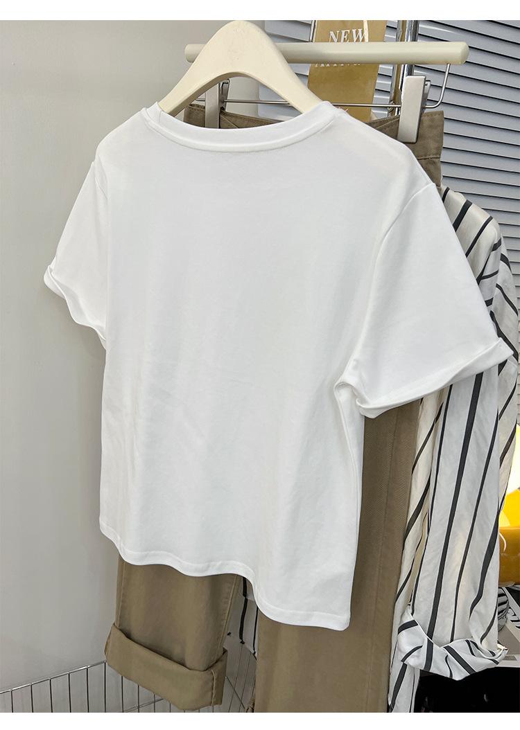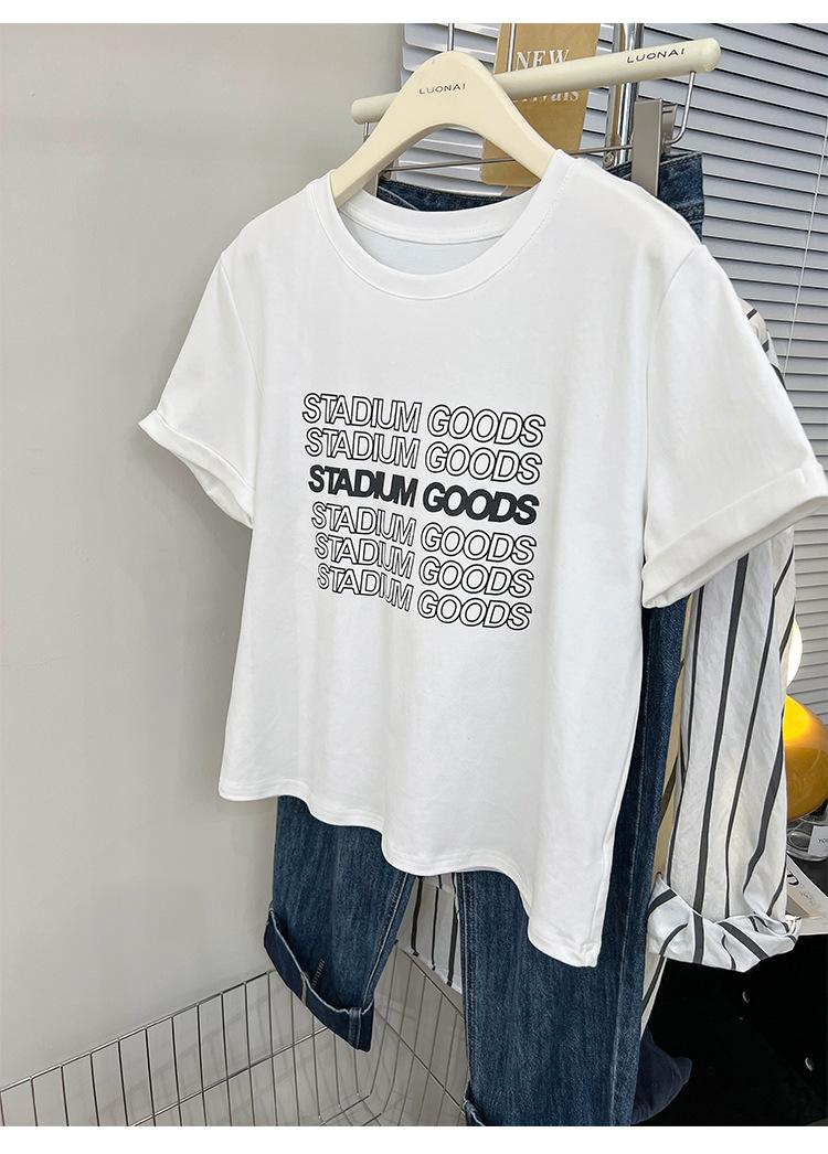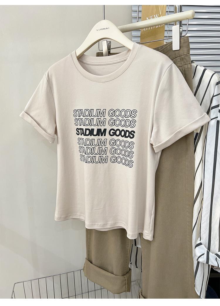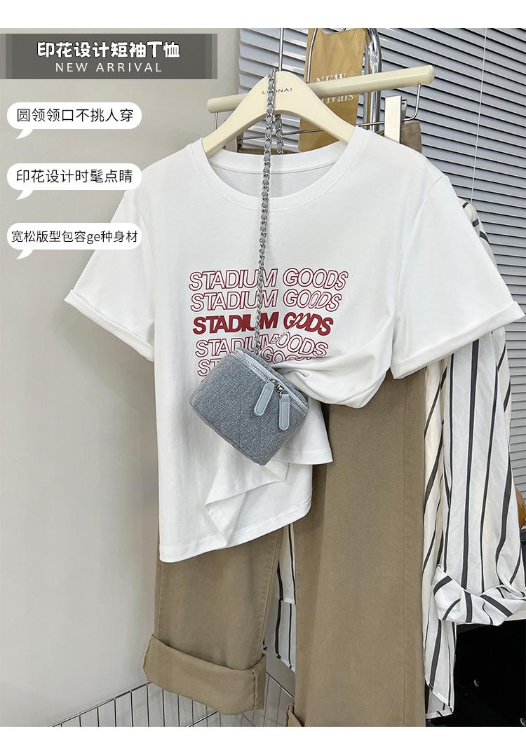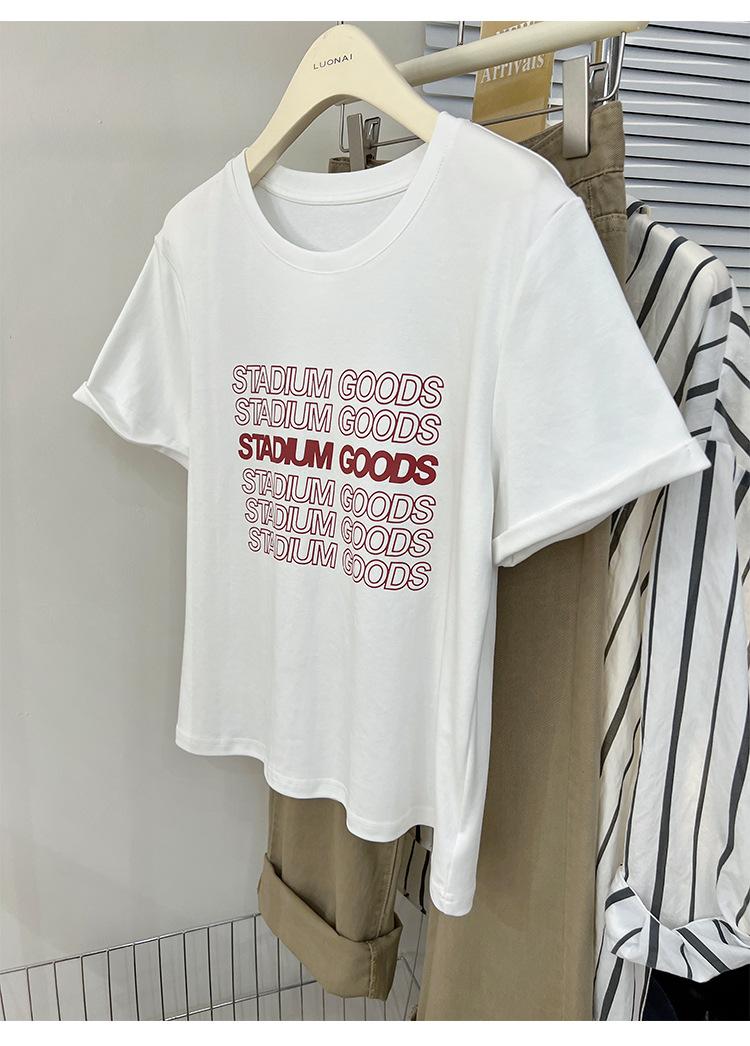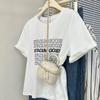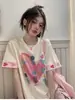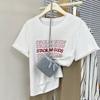 Camiseta de manga corta europea para mujer, diseño de hombros descubiertos, estampado de verano, elegante y holgada.
