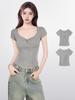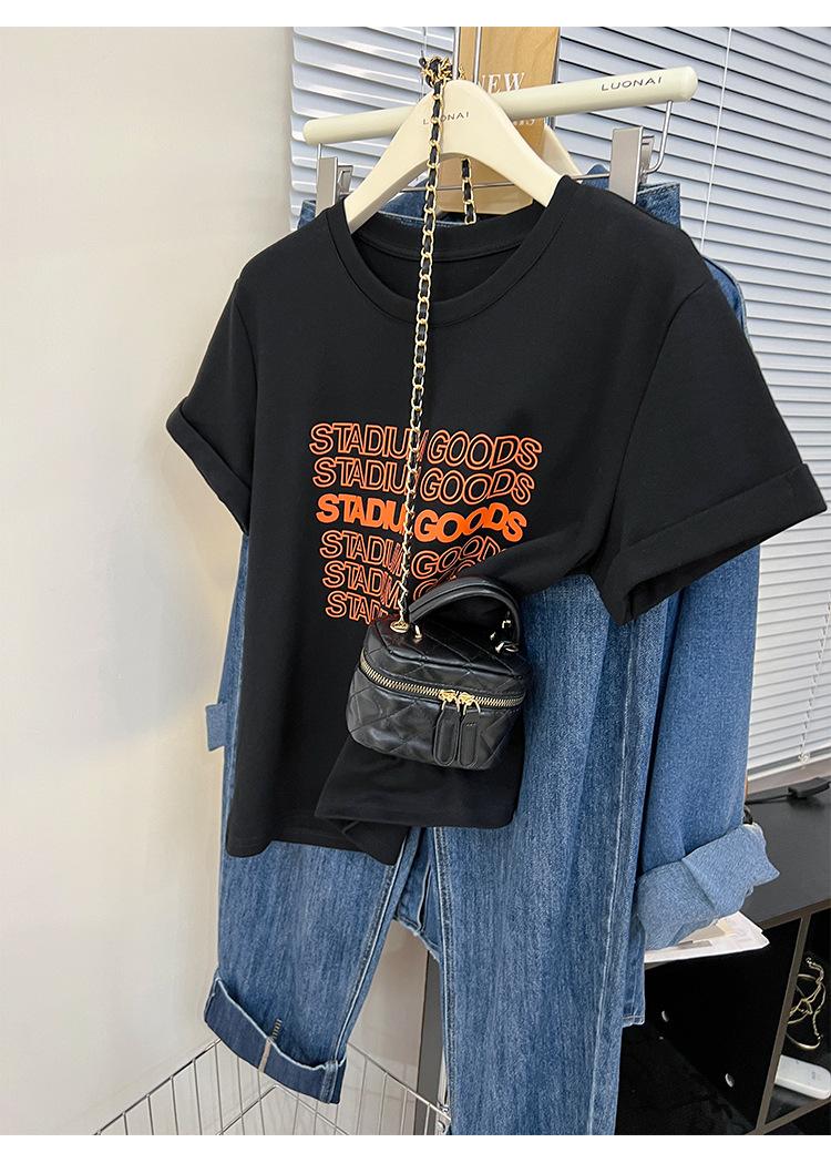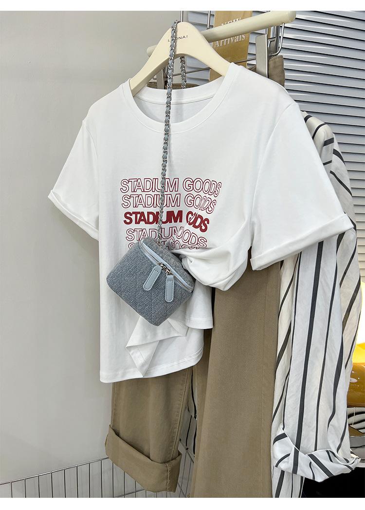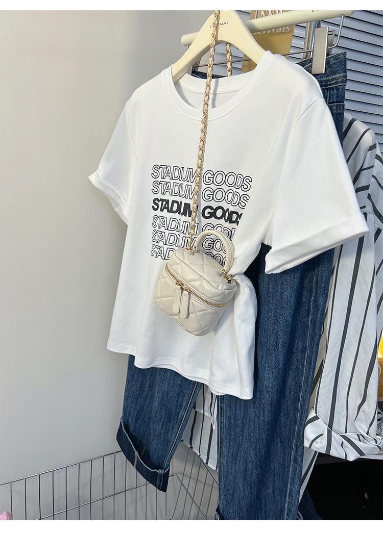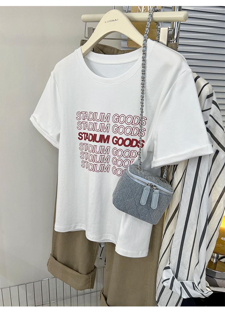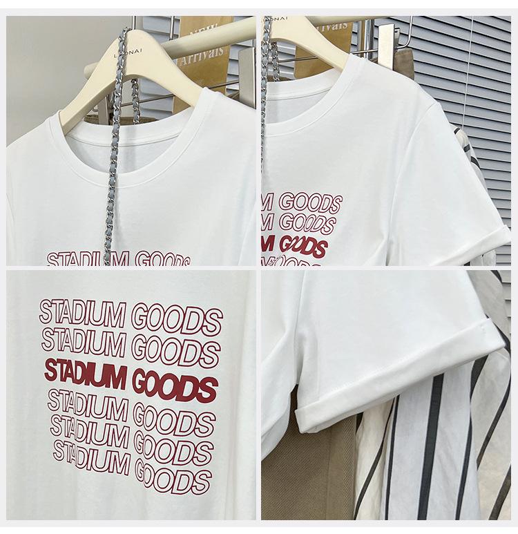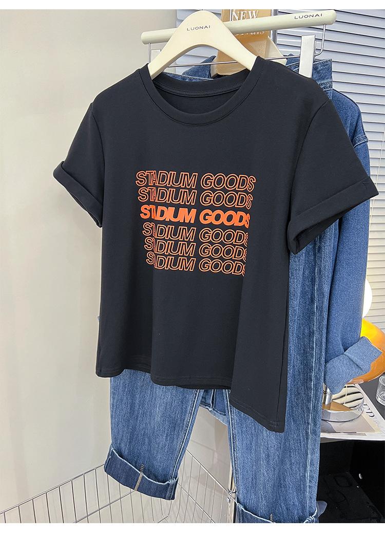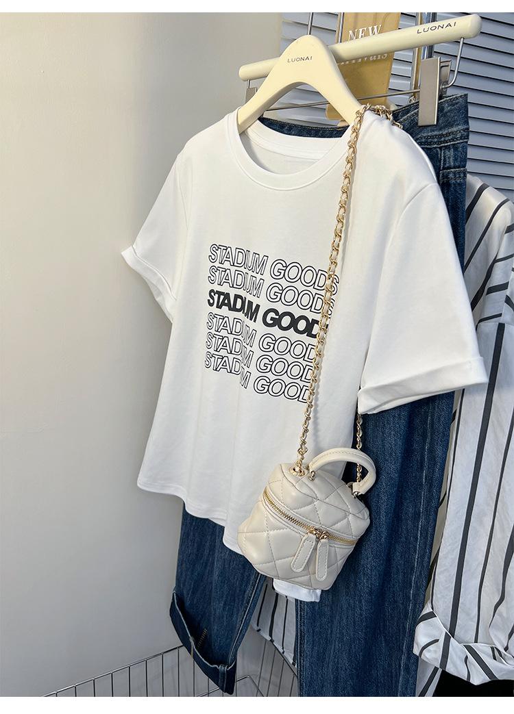 Camiseta de manga corta europea para mujer, diseño de hombros descubiertos, estampado de verano, elegante y holgada.