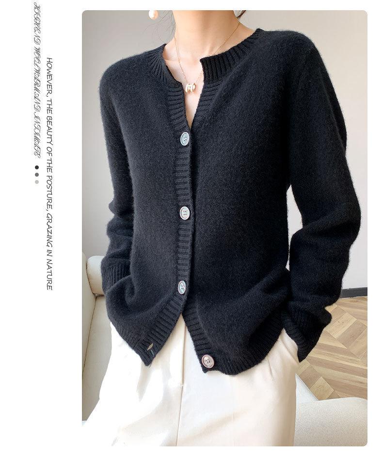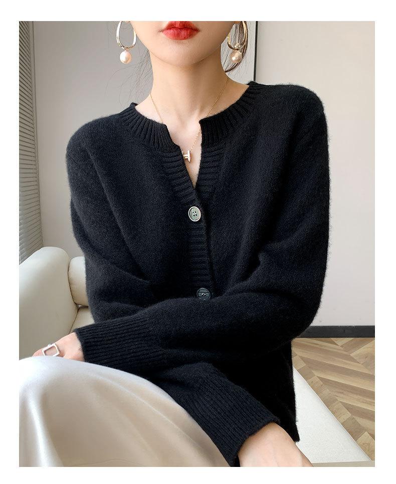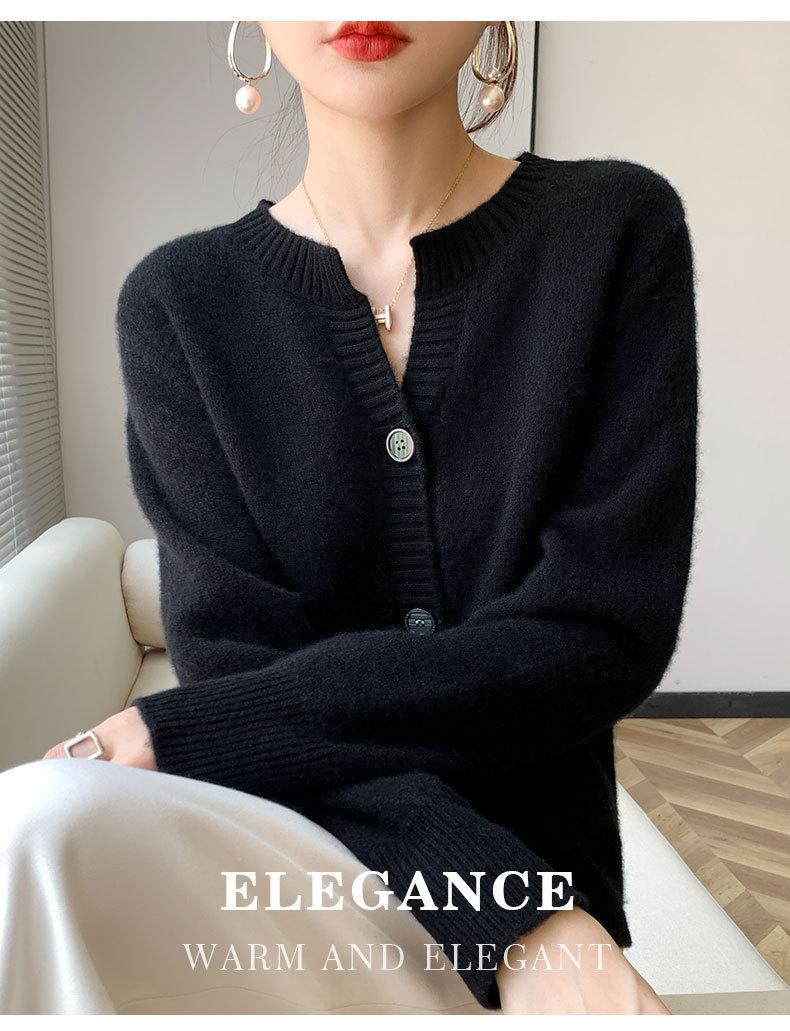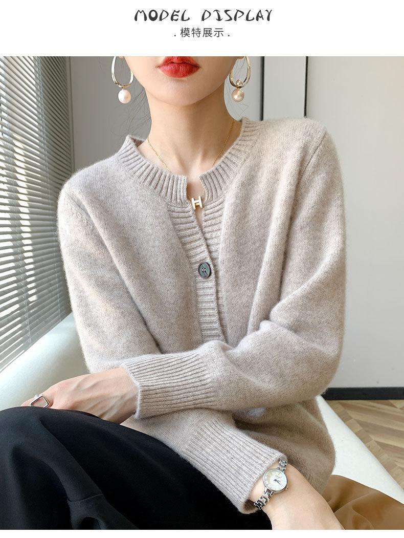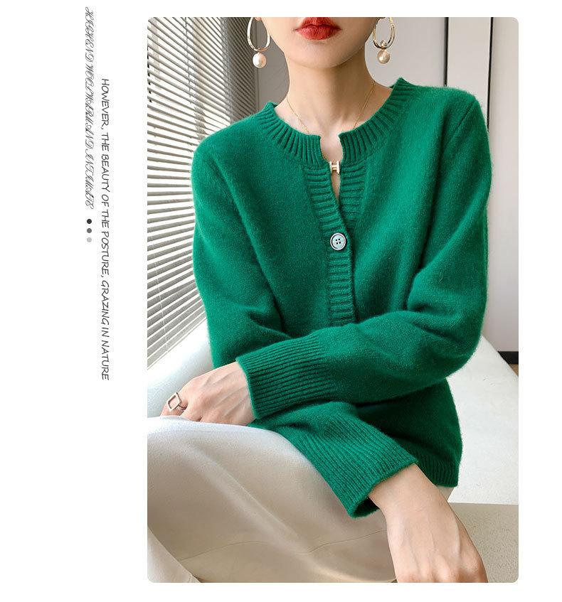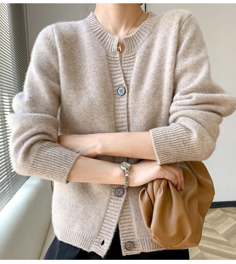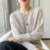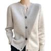 Cárdigan de Cachemira de Cuello Redondo 2025 Ropa Exterior para Mujer Tejido de Lana Pura Suelto Casual de Manga Corta Larga Moderno y Versátil