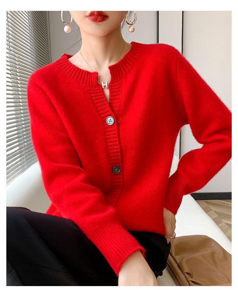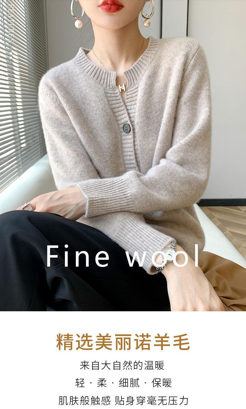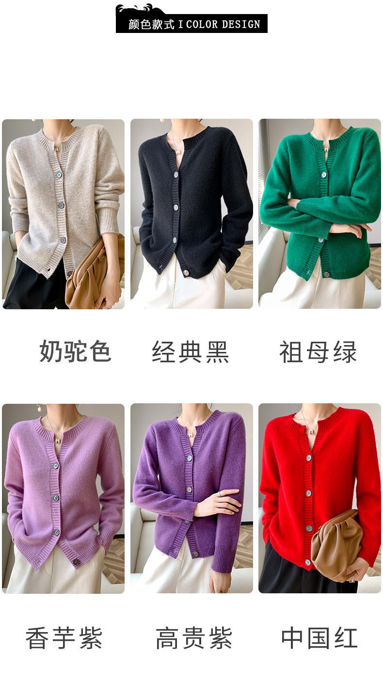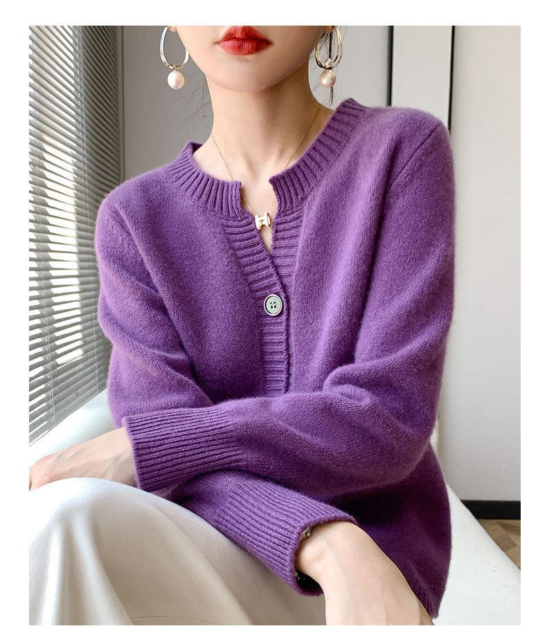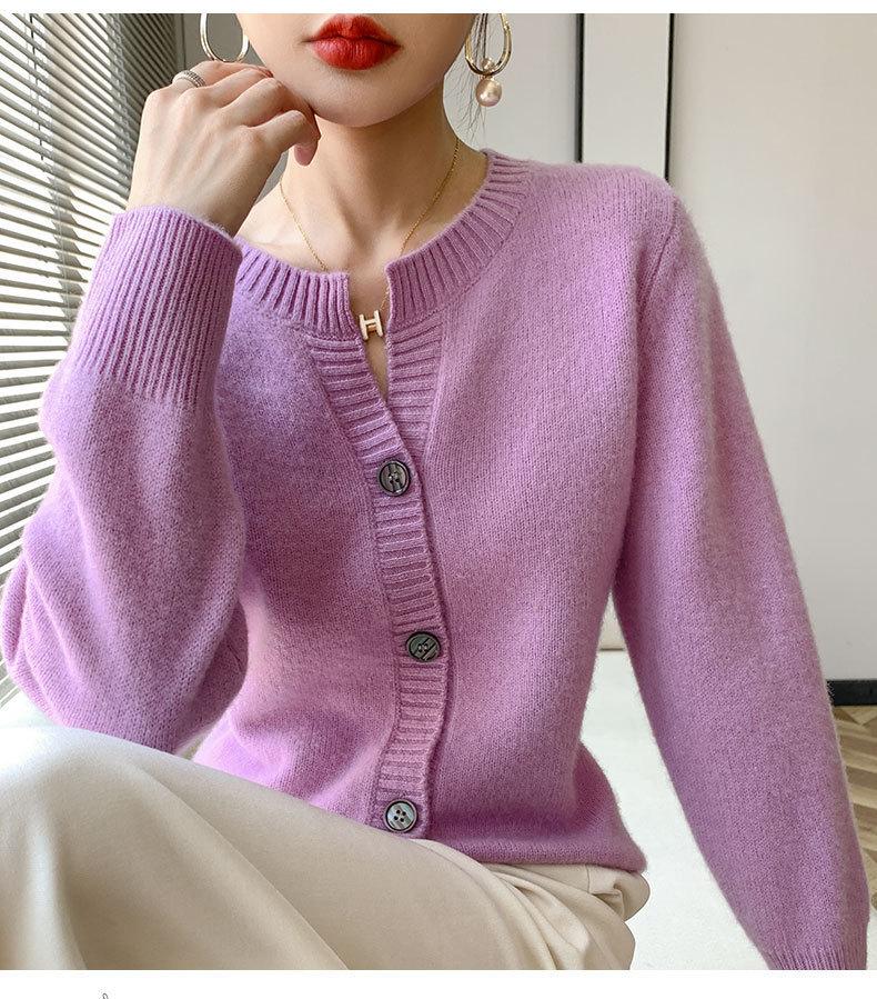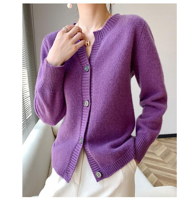 Cárdigan de Cachemira de Cuello Redondo 2025 Ropa Exterior para Mujer Tejido de Lana Pura Suelto Casual de Manga Corta Larga Moderno y Versátil