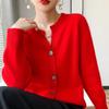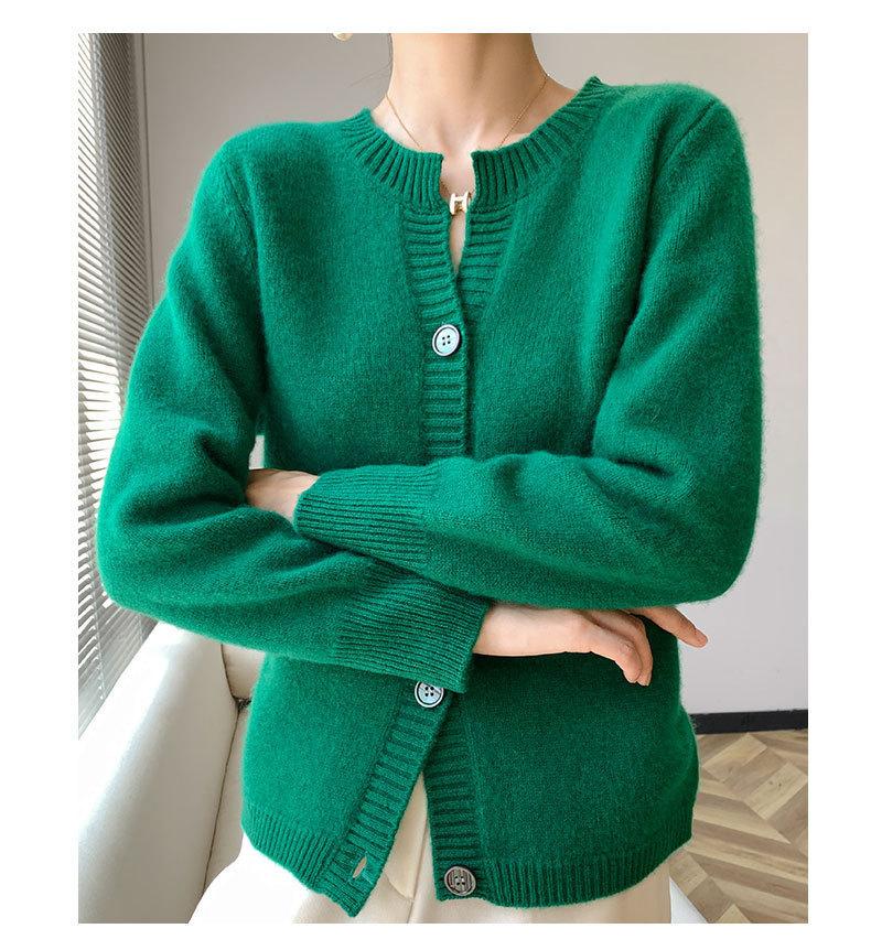 Otoño e invierno 2022 nuevo cárdigan de punto para mujer cuello redondo suéter holgado chaqueta top puro de manga larga elegante y versátil