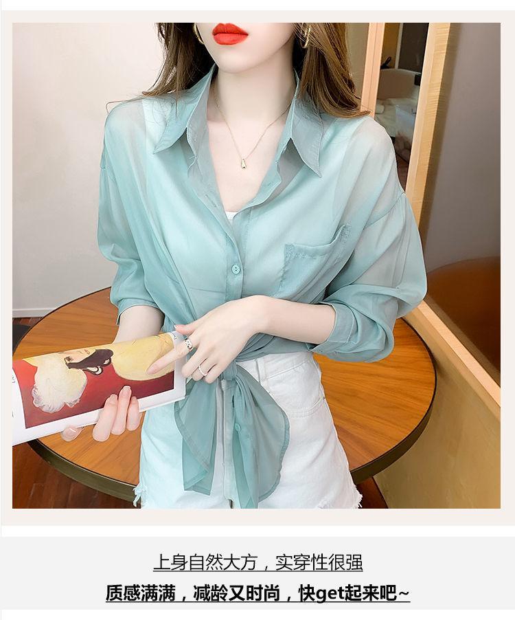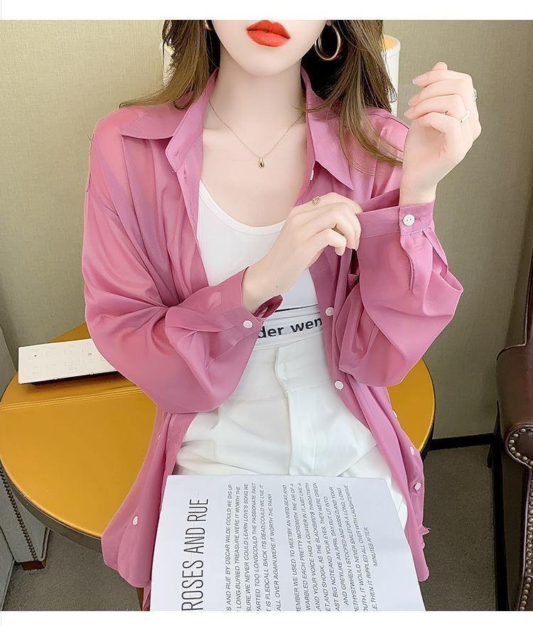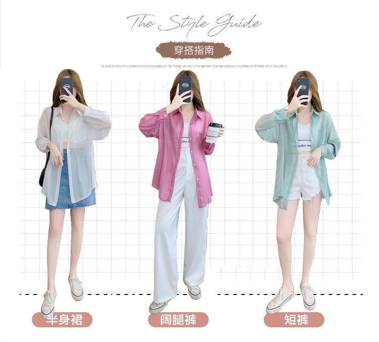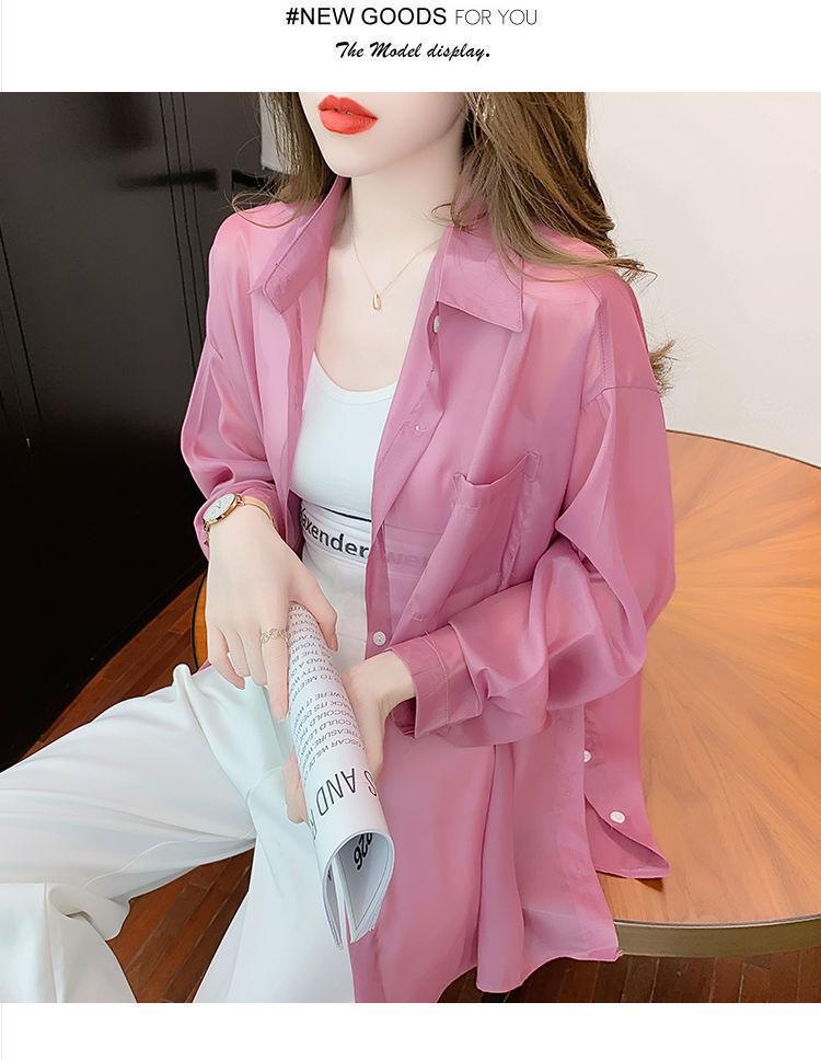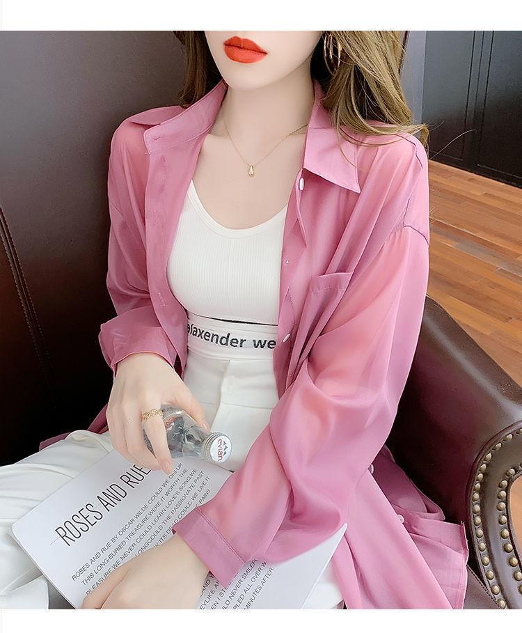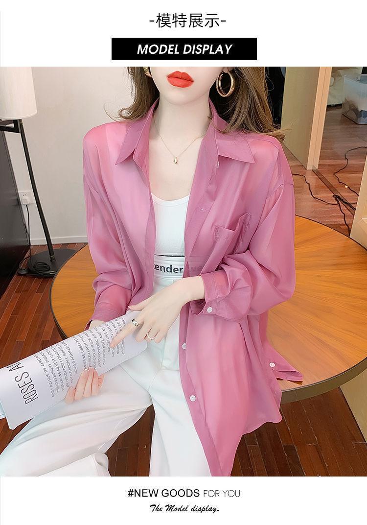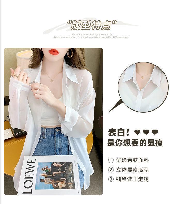 Camisa fina de verano para mujer, ropa de primavera y otoño 2024, nueva moda, top de manga larga, camisa de gasa con protección solar de seda helada