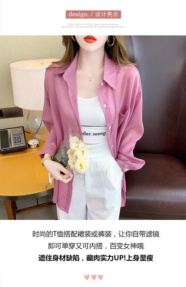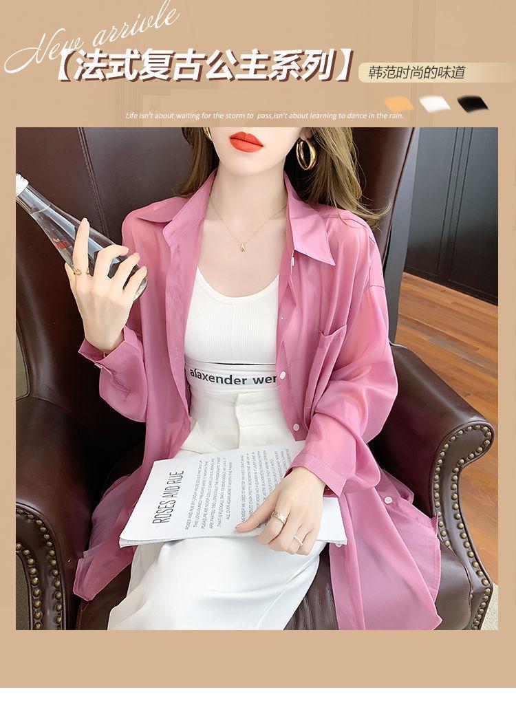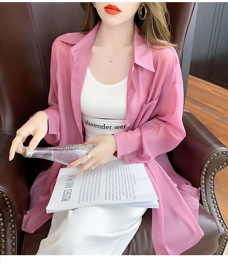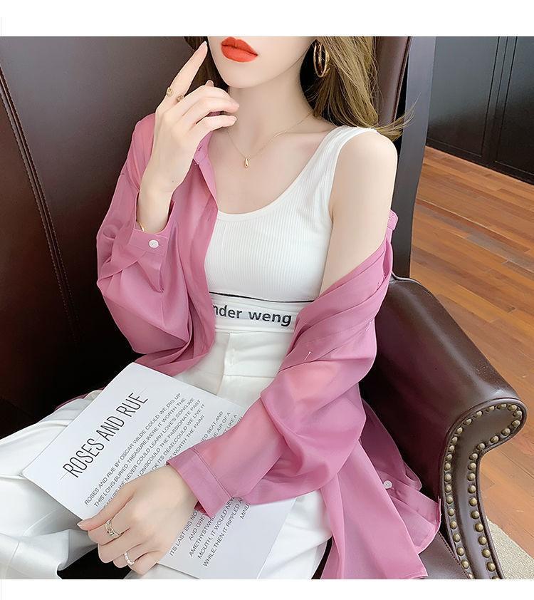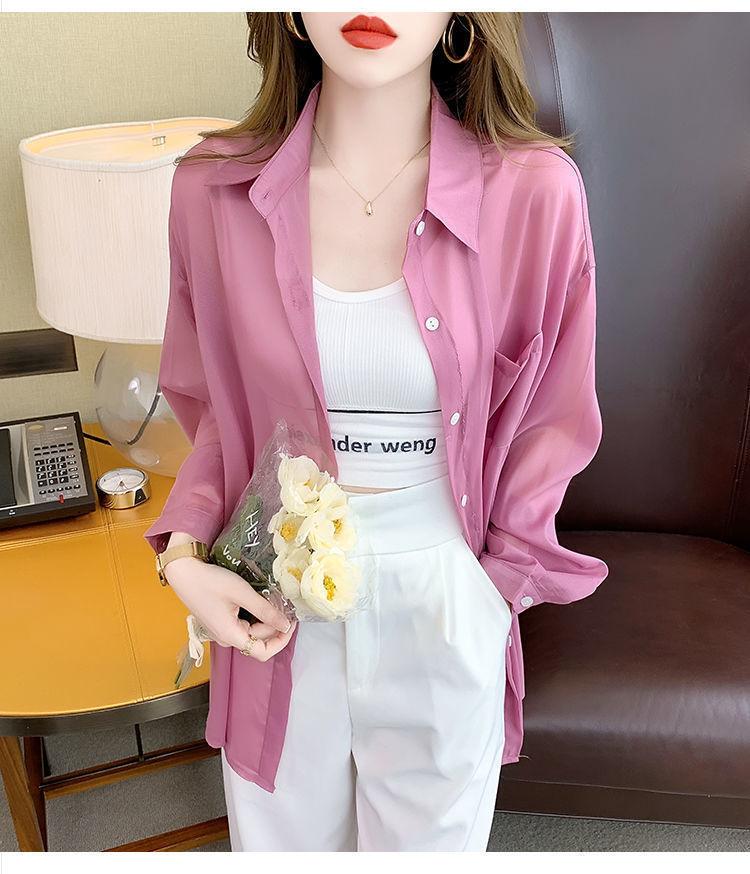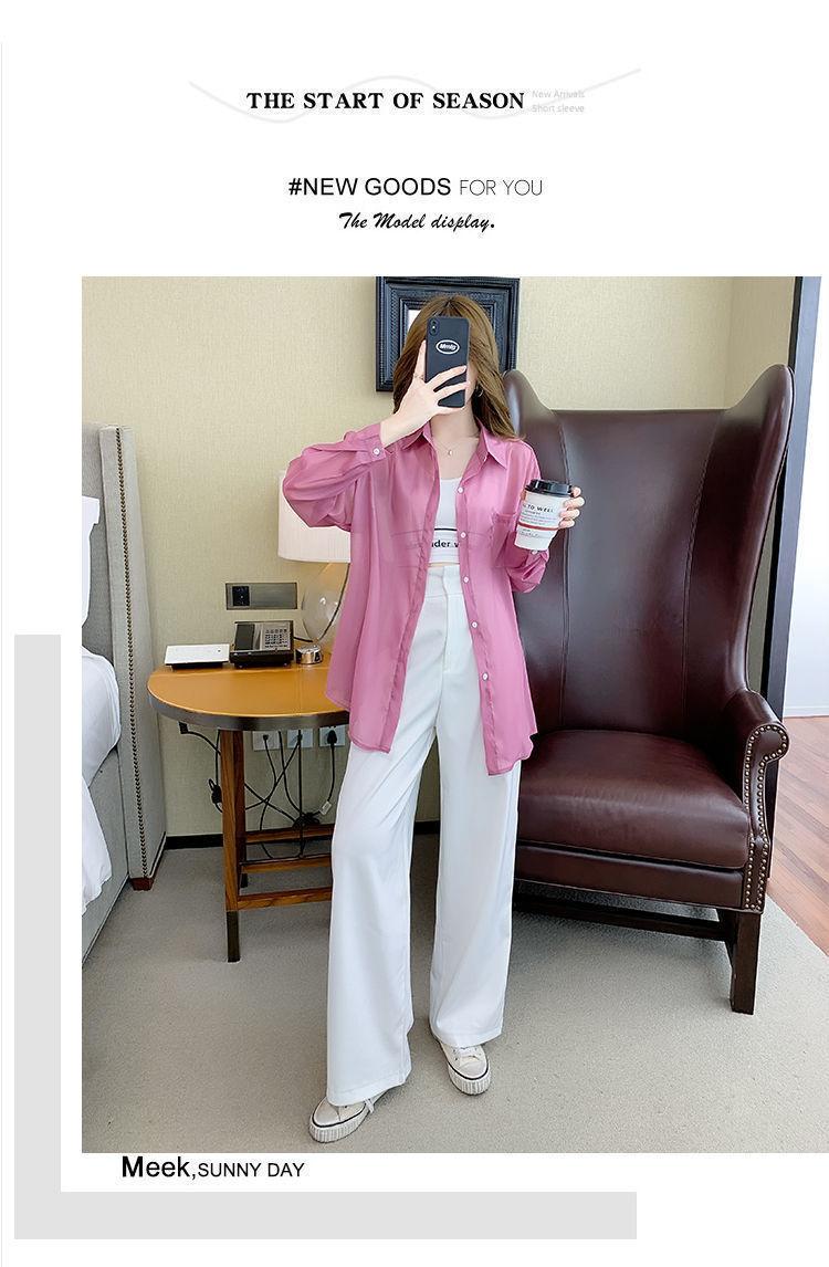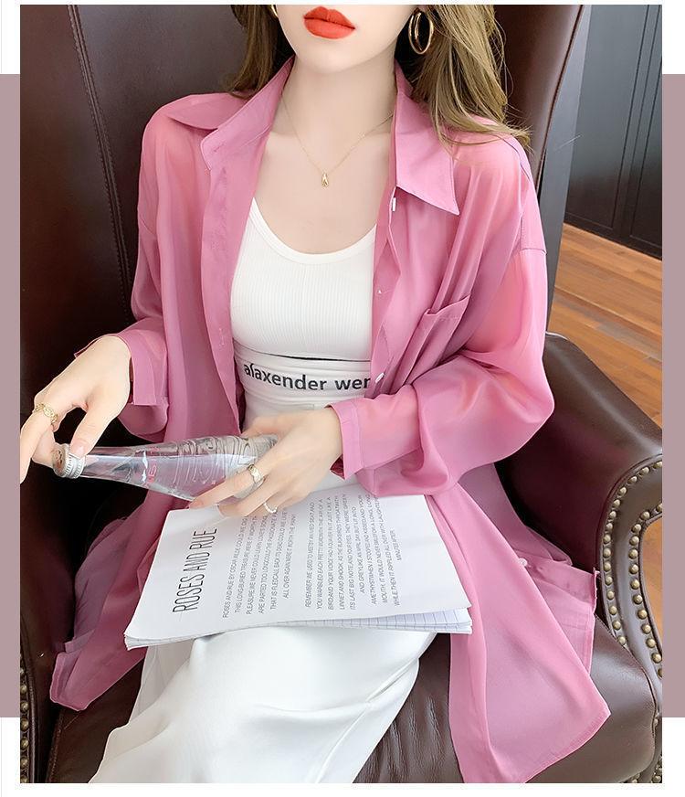 Camisa fina de verano para mujer, ropa de primavera y otoño 2024, nueva moda, top de manga larga, camisa de gasa con protección solar de seda helada