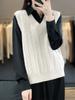 Suéter de punto de hilo sin mangas con cuello en V de lana pura para mujer de estilo coreano otoño e invierno 2023