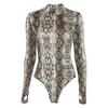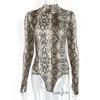 2025 Otoño Transfronterizo Sexy Camiseta Básica con Estampado de Serpiente Aliexpress Popular Europeo y Americano Manga Larga Cuello Alto Mono para Mujer