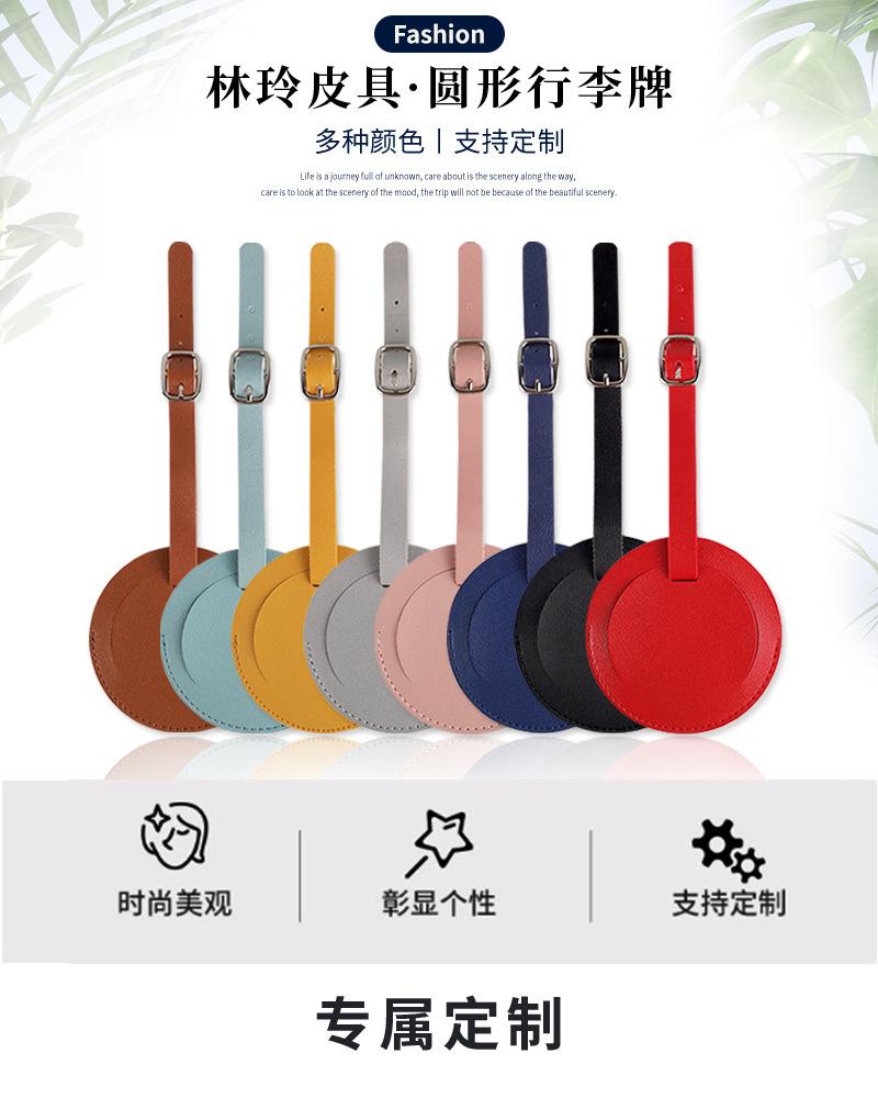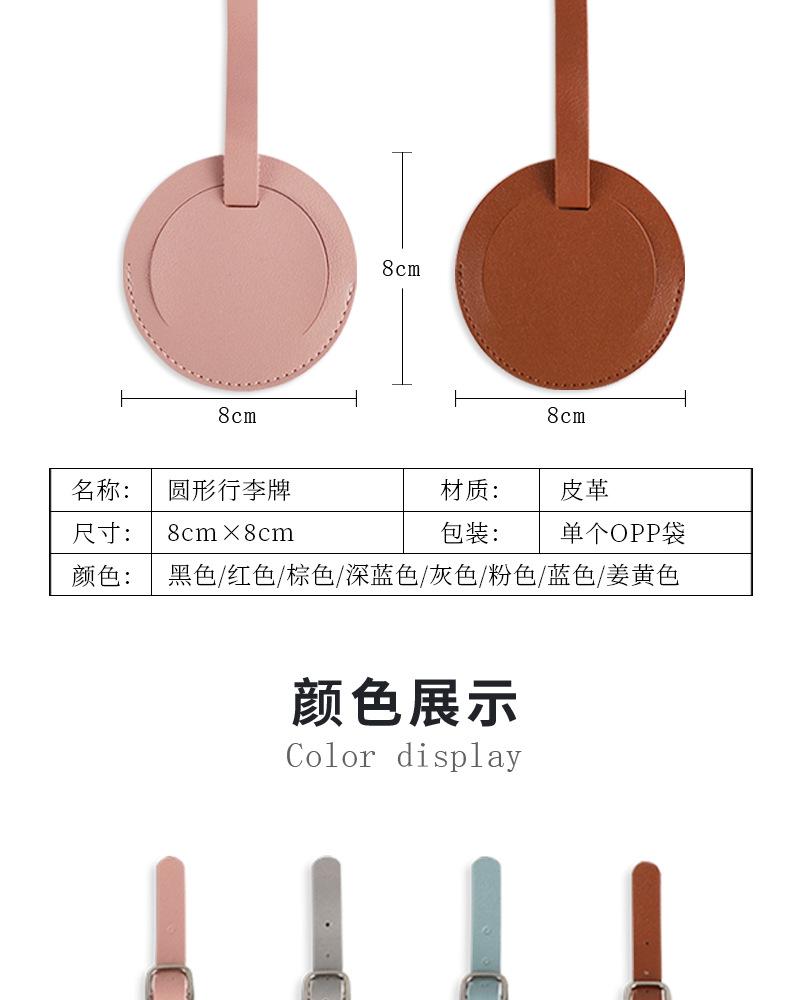 Etiqueta de equipaje redonda de cuero sintético con logotipo fijo disponible en stock con tarjeta de papel impresa, tarjeta de embarque de cuero transfronteriza al por mayor.