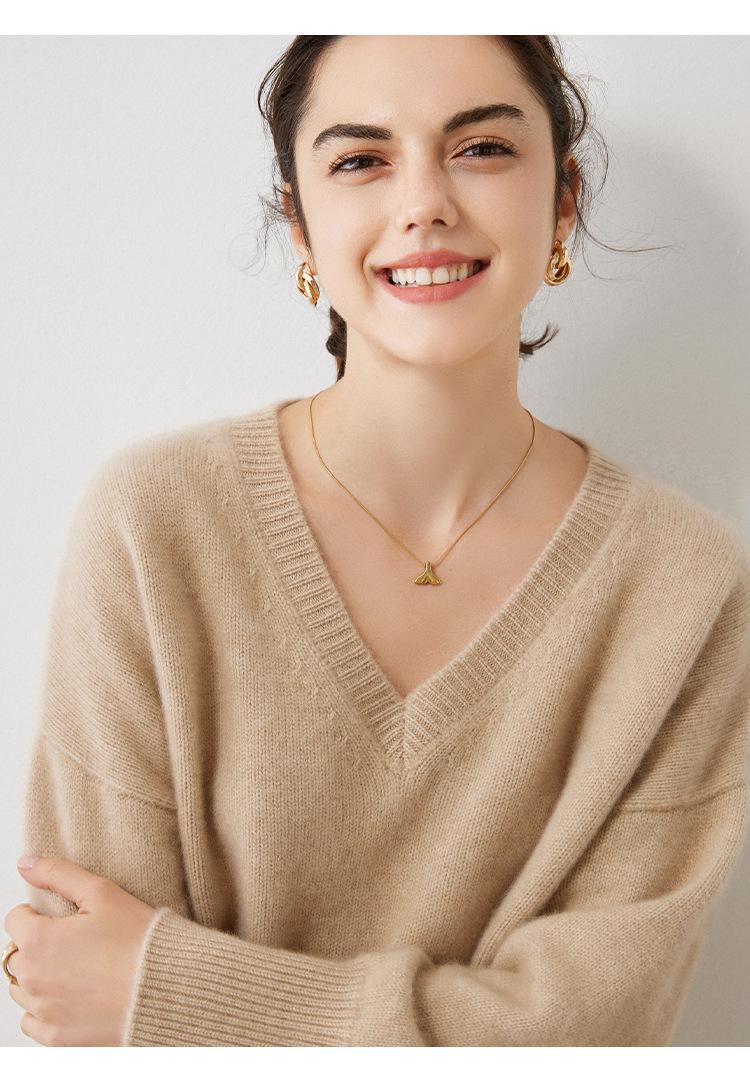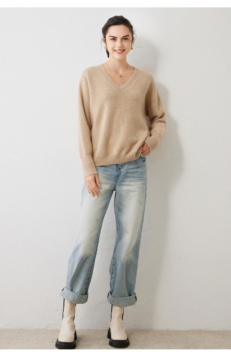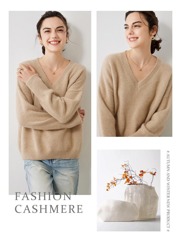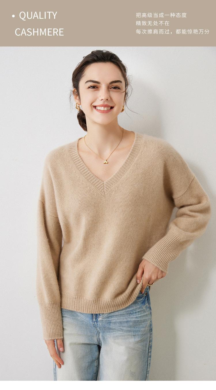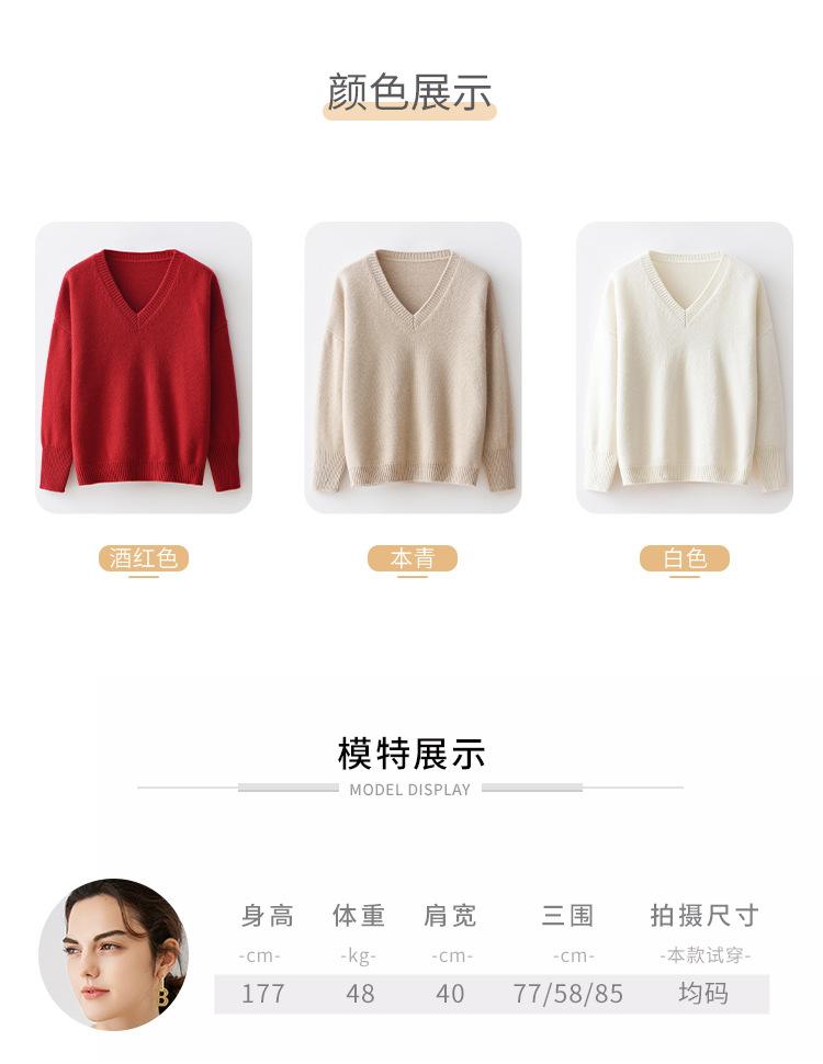 Suéter de cachemira suelto de color sólido con cuello en V para otoño e invierno, suéter de cachemira pura roja gruesa para mujer, suéter con cuello de corazón de pollo