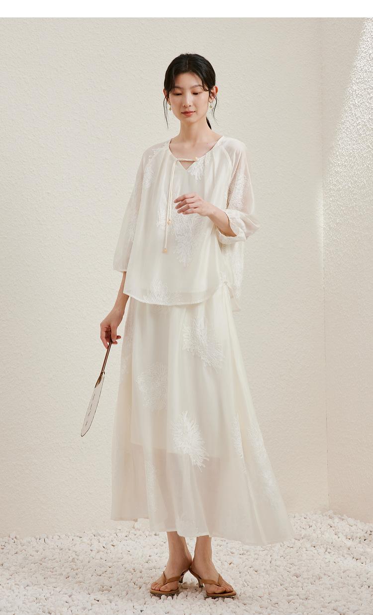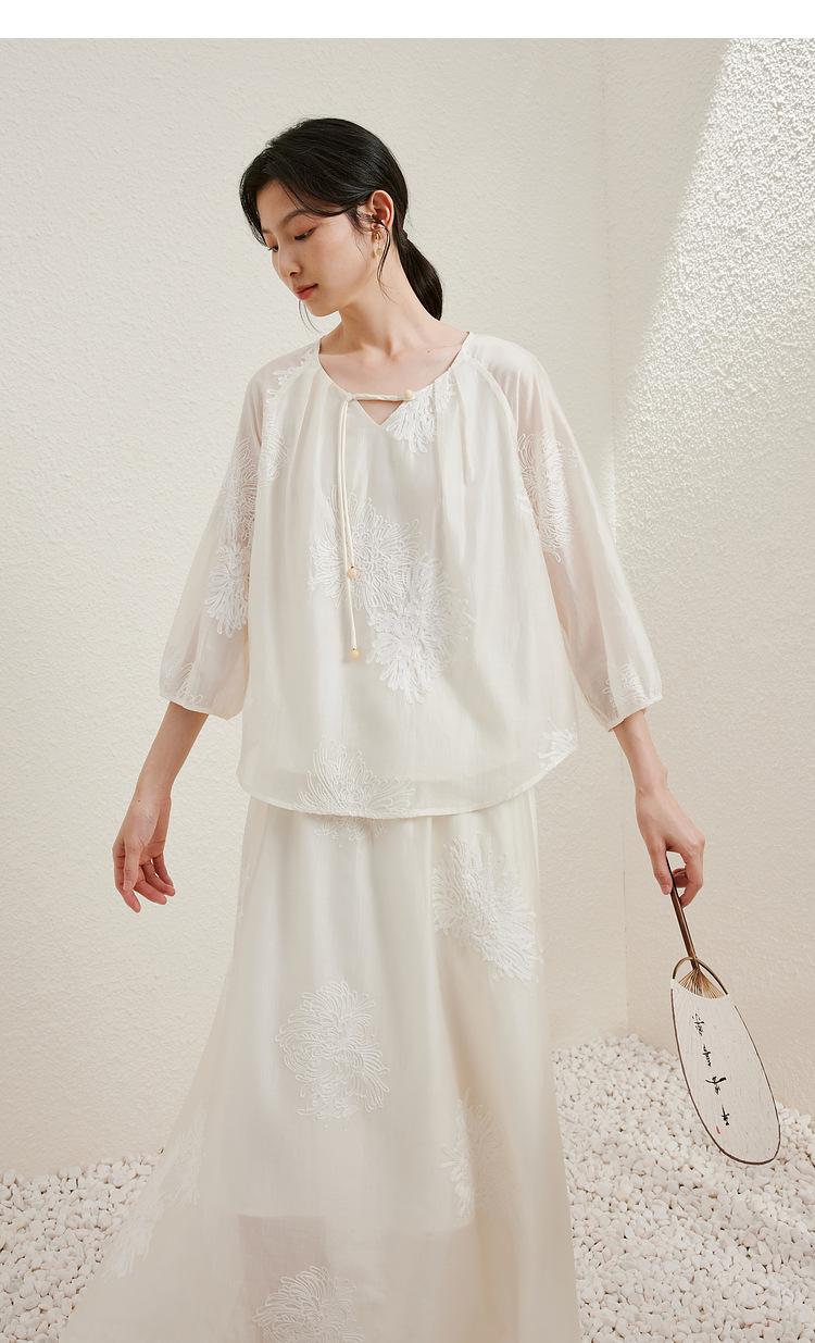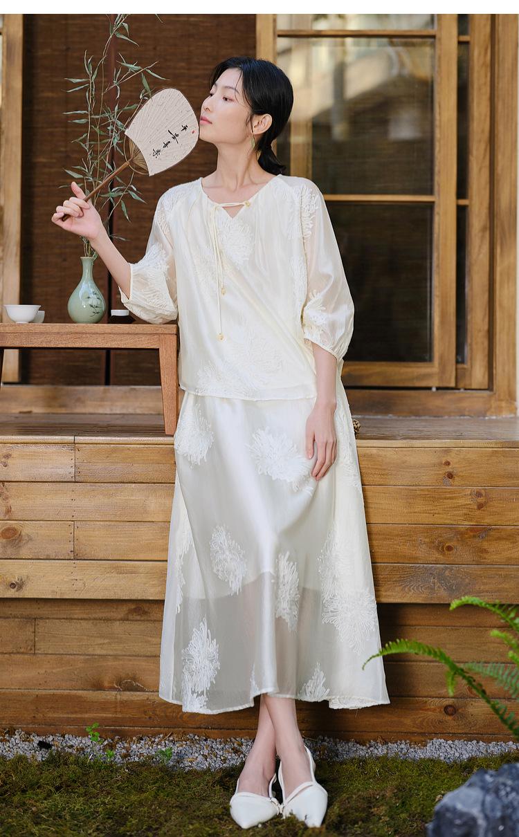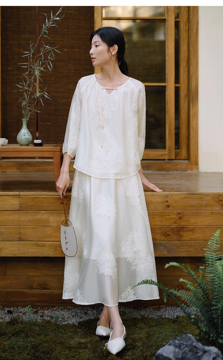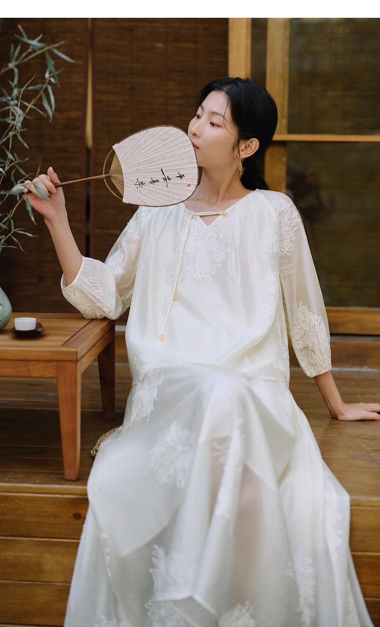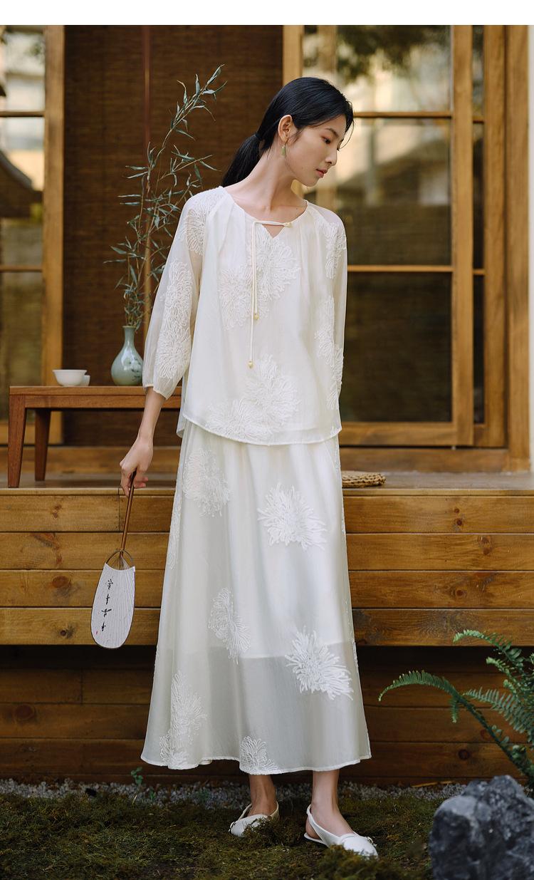 Traje de Moda China Nuevo para Mujer, Estilo Primer Amor, Camisa con Flecos de Estilo Nacional de Primavera y Verano, Falda, Traje de Falda Suelto de Dos Piezas