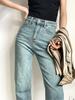 Mengzi Xi Jeans Rectos de Cintura Alta para Mujer, Corte Slim, Adelgazantes, Retro Francés, High Street, Pantalones de Herradura para Mujer X2051