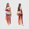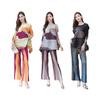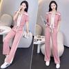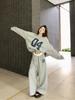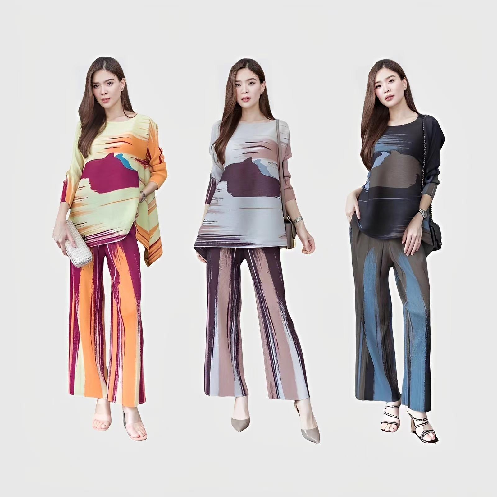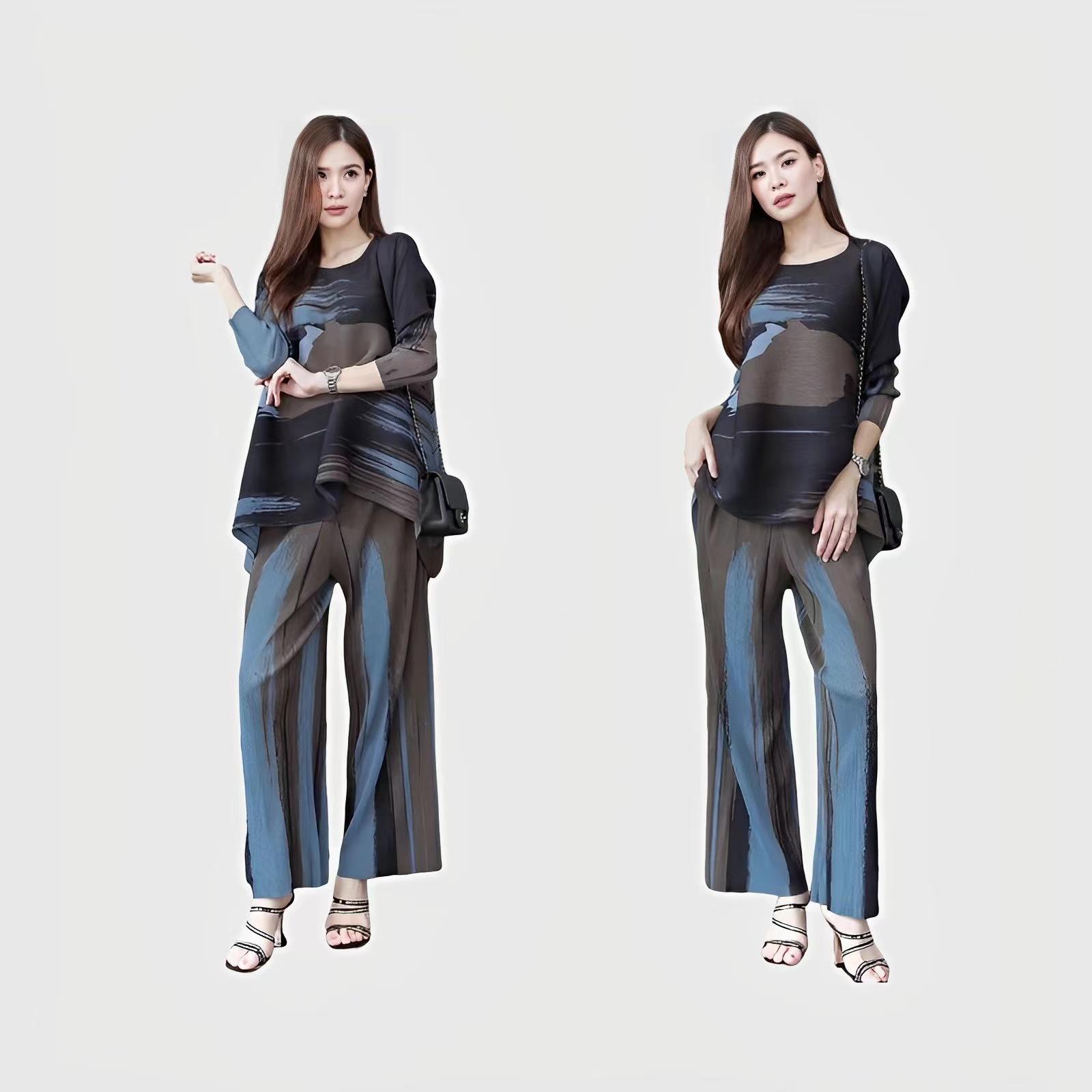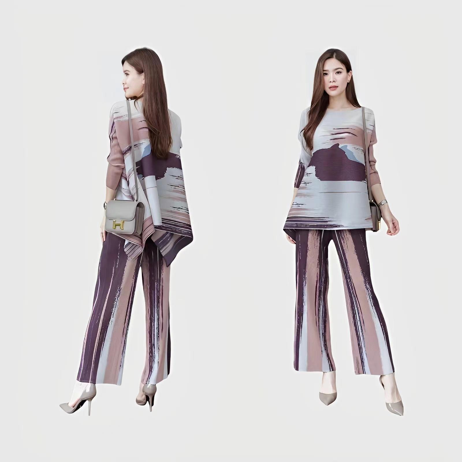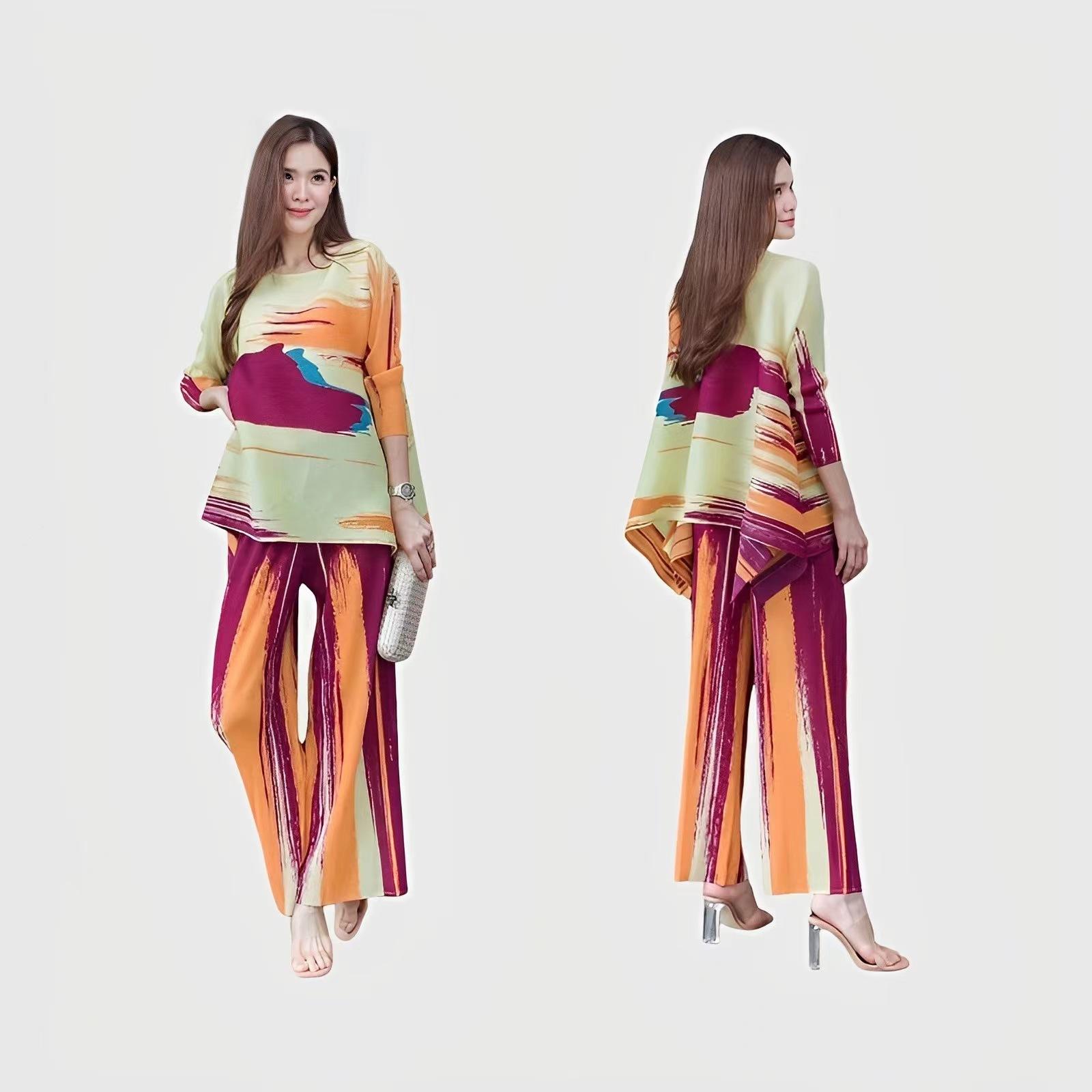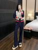 Traje de pantalón con cuello redondo irregular, estilo europeo y americano, plisado, nuevo, de otoño 2023, holgado, de moda, de talla grande, con contraste de color