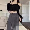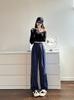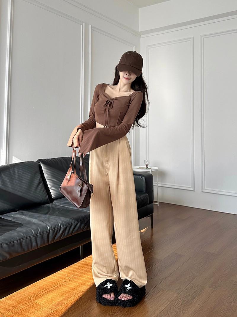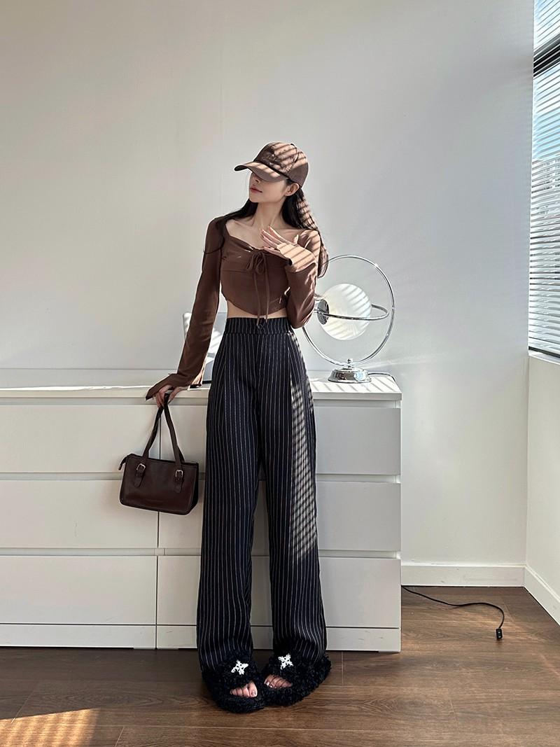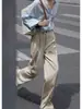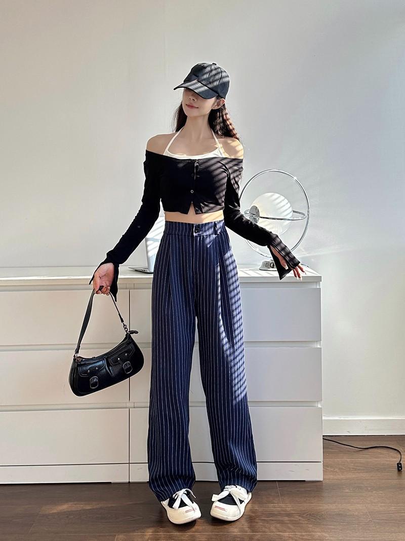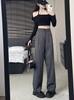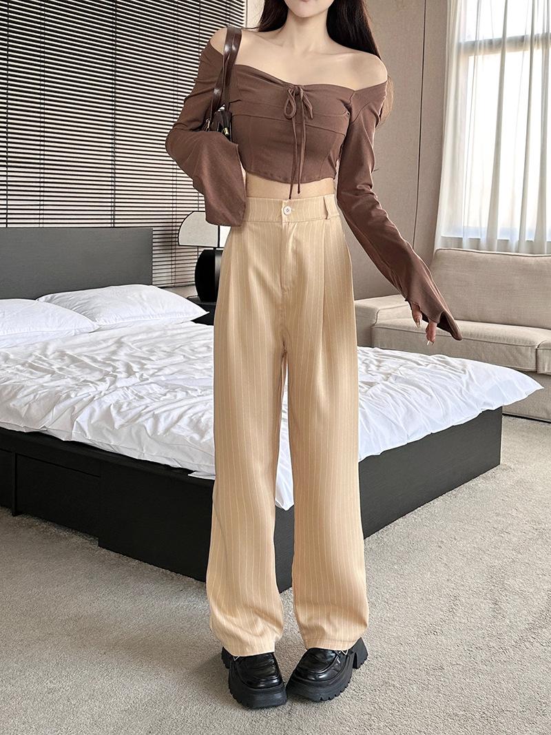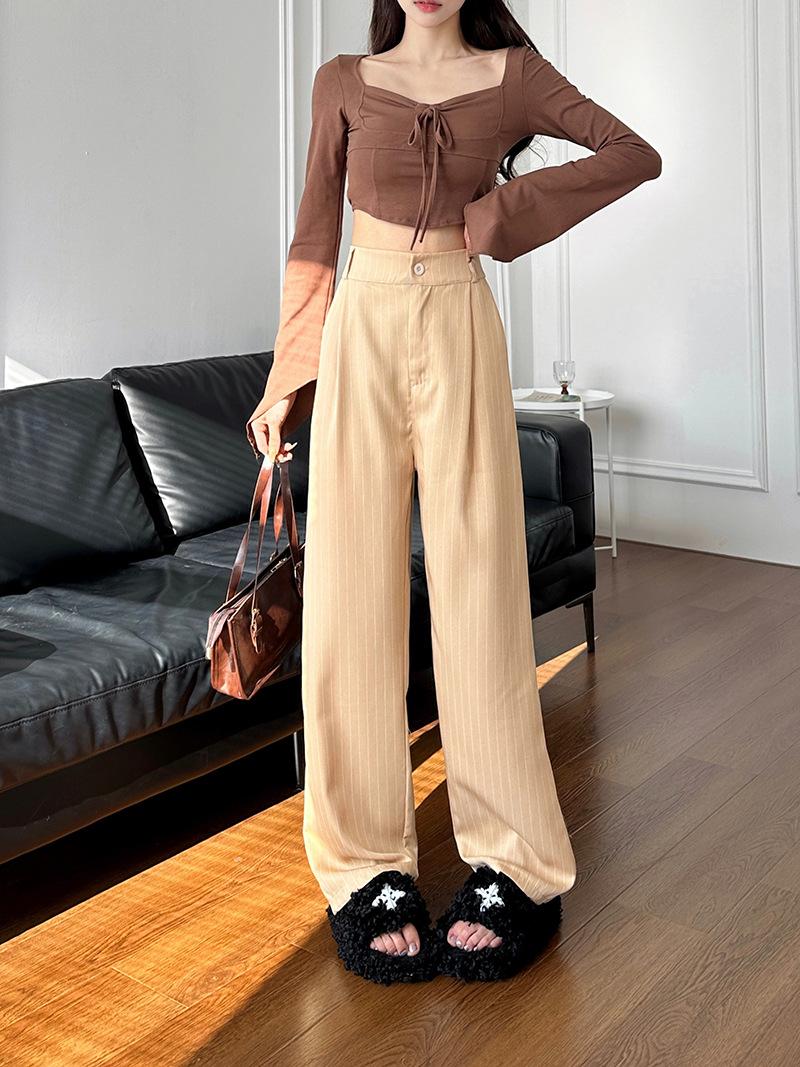 Pantalones anchos a rayas para mujer, de verano, finos, de alta gama, sueltos, de cintura alta, adelgazantes, drapeados, negros, rectos, nuevos pantalones de traje de otoño