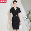 Traje de verano de manga corta con cuello alto y corte entallado para mujer, traje de vestir profesional para recepción de hotel, ropa de trabajo para joyería y tienda de oro.