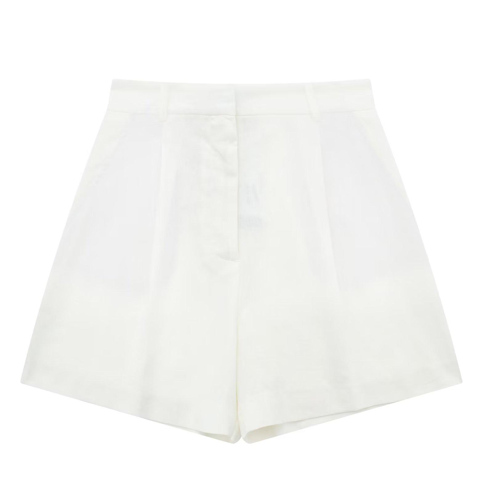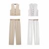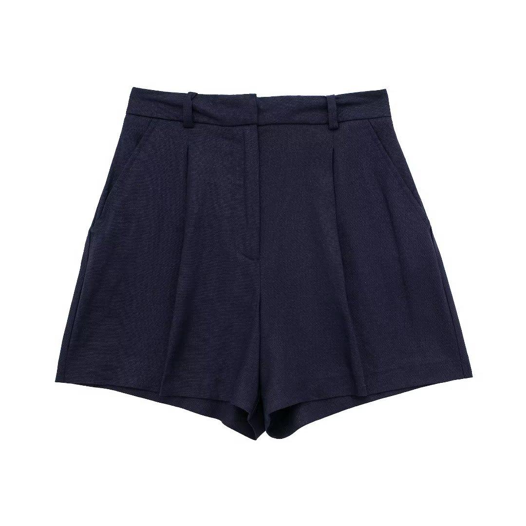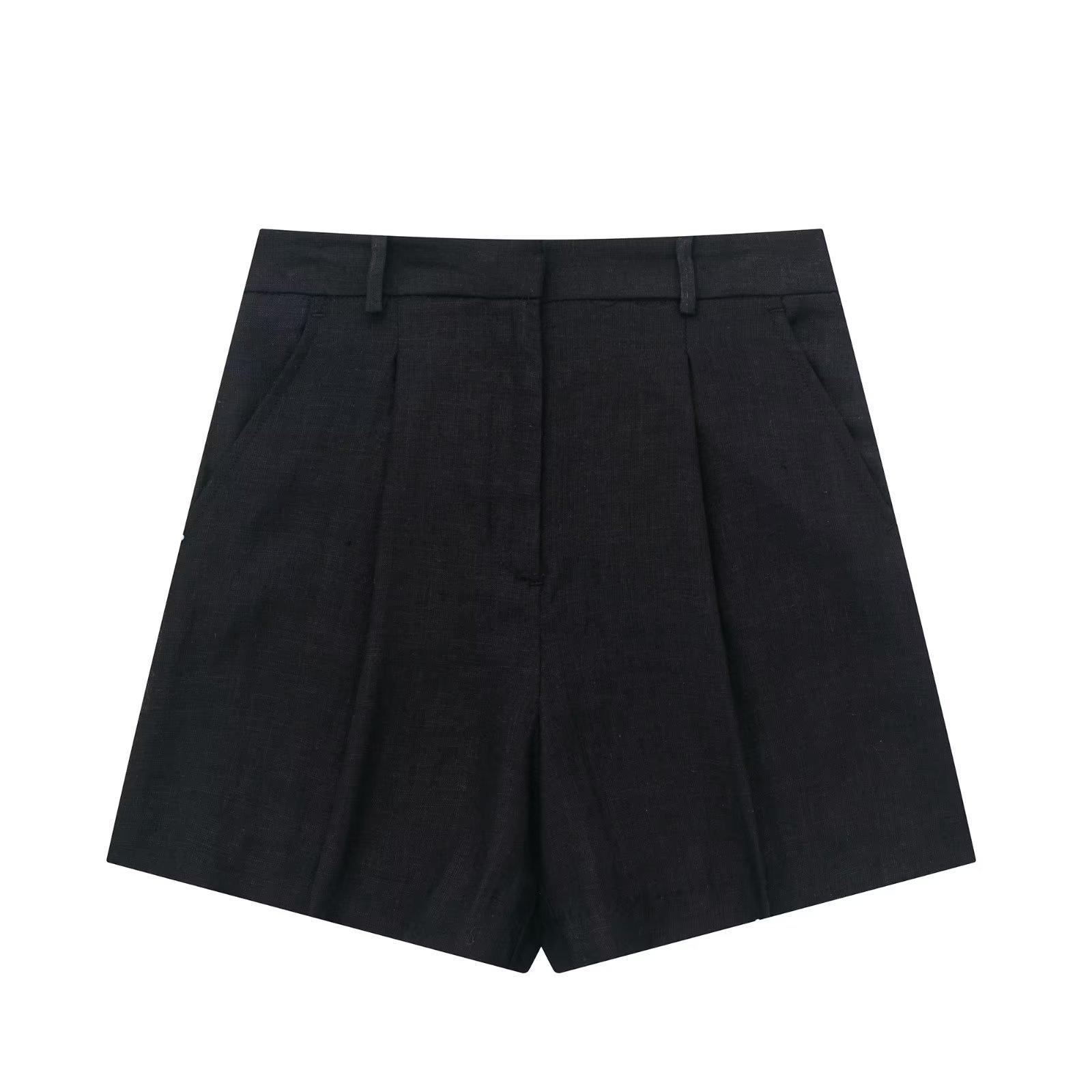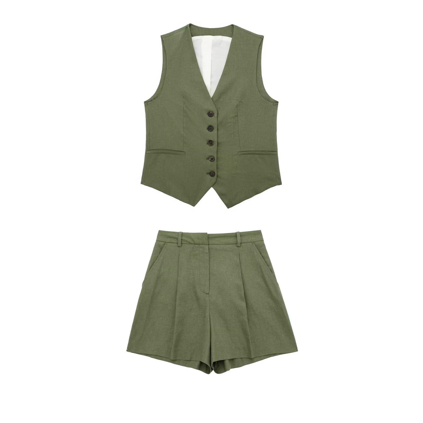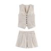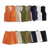 Ropa de mujer transfronteriza de estilo europeo y americano, venta al por mayor, chaleco de mezcla de lino, pantalones cortos, traje informal, novedad de verano de 2024