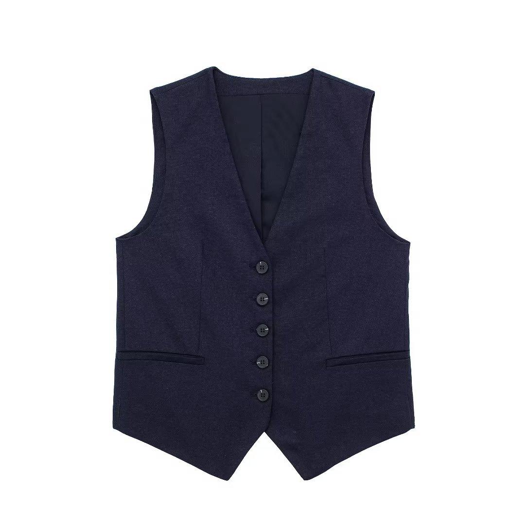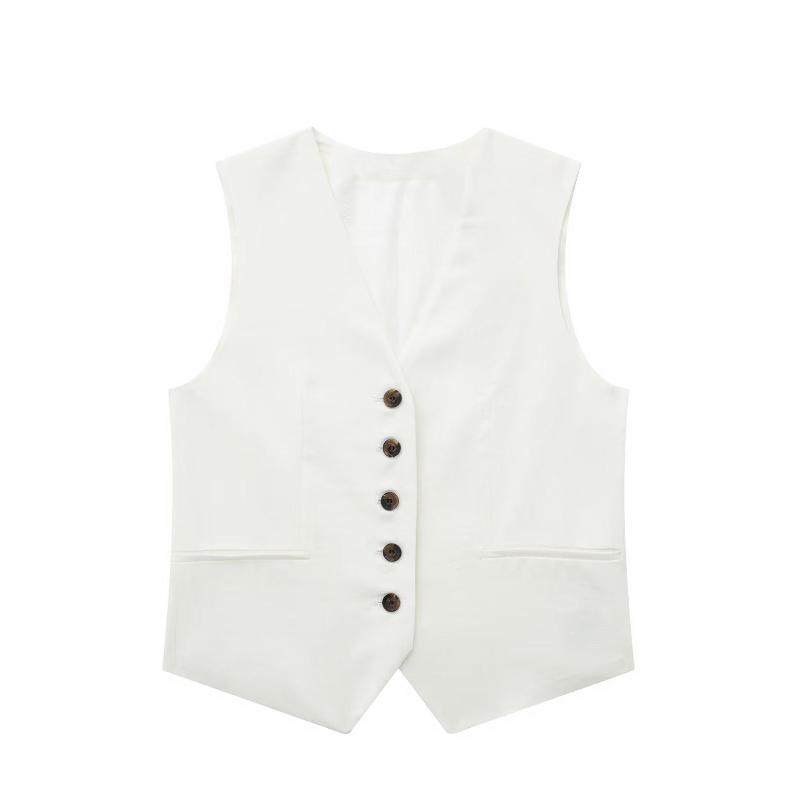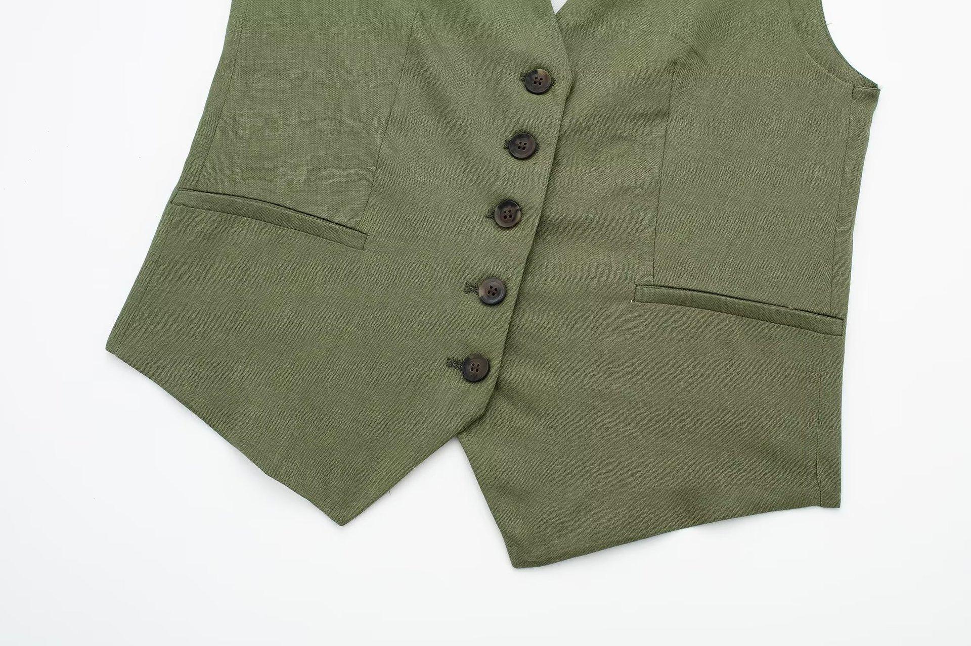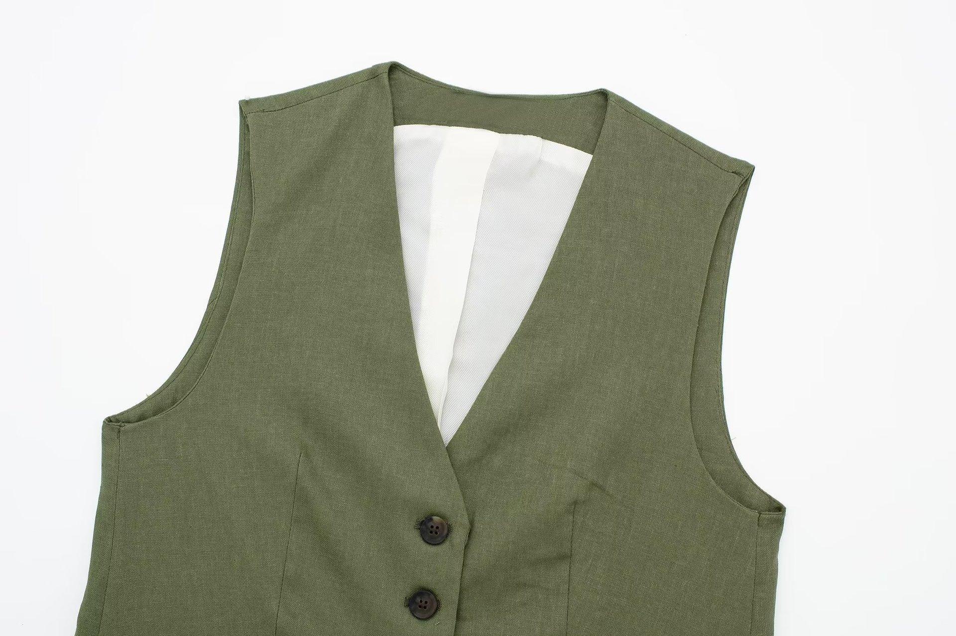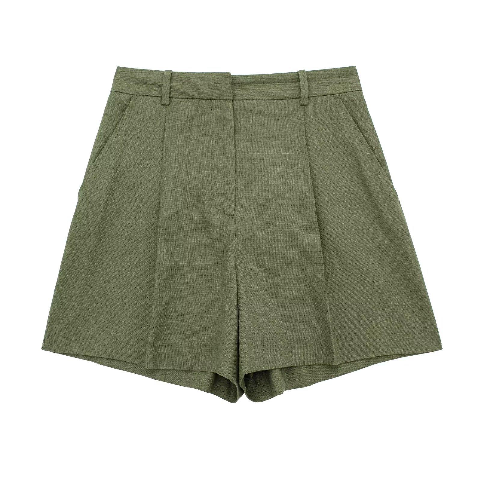 Ropa de mujer transfronteriza de estilo europeo y americano, venta al por mayor, chaleco de mezcla de lino, pantalones cortos, traje informal, novedad de verano de 2024