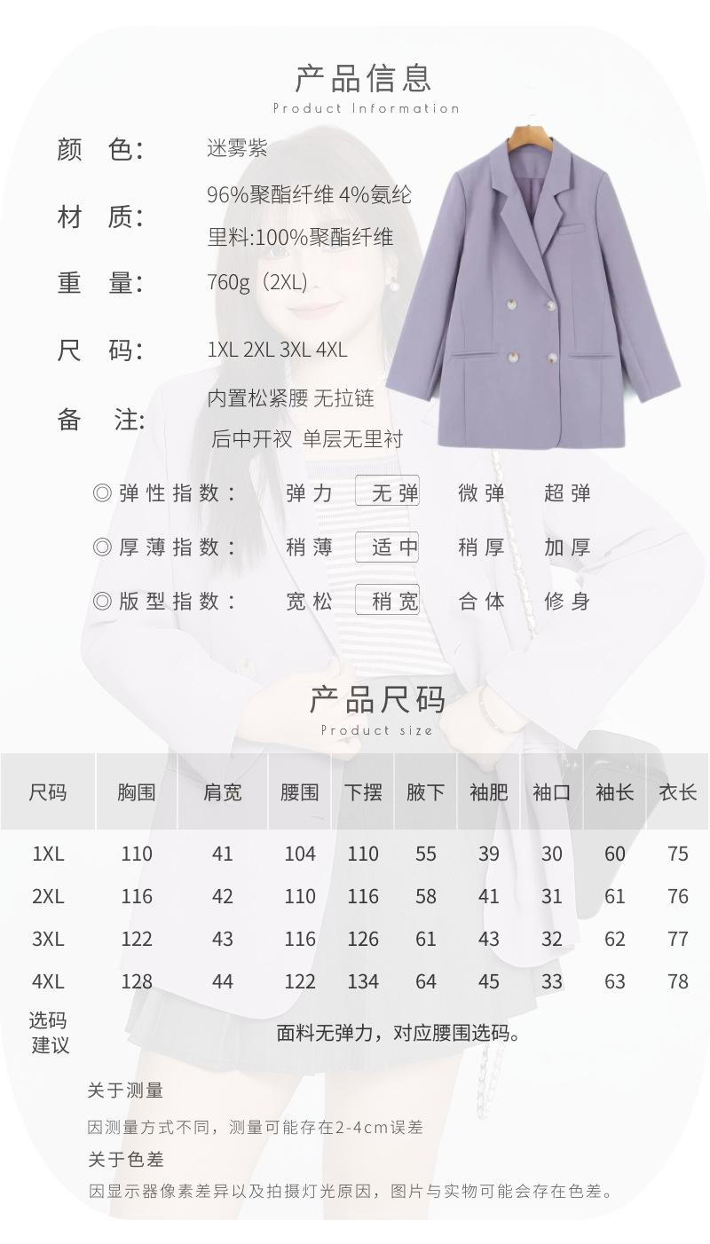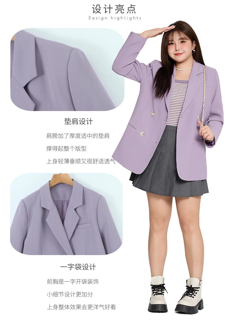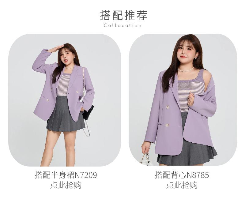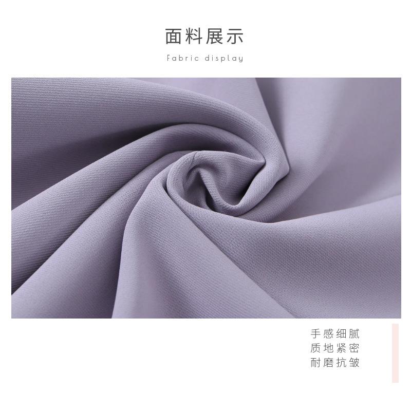 Traje informal drapeado de sarga antiarrugas morado Runqi 8235, traje de talla grande, chaleco y falda.