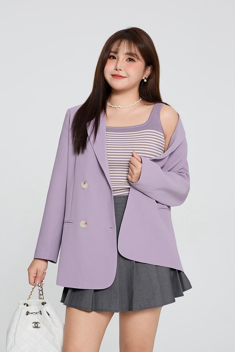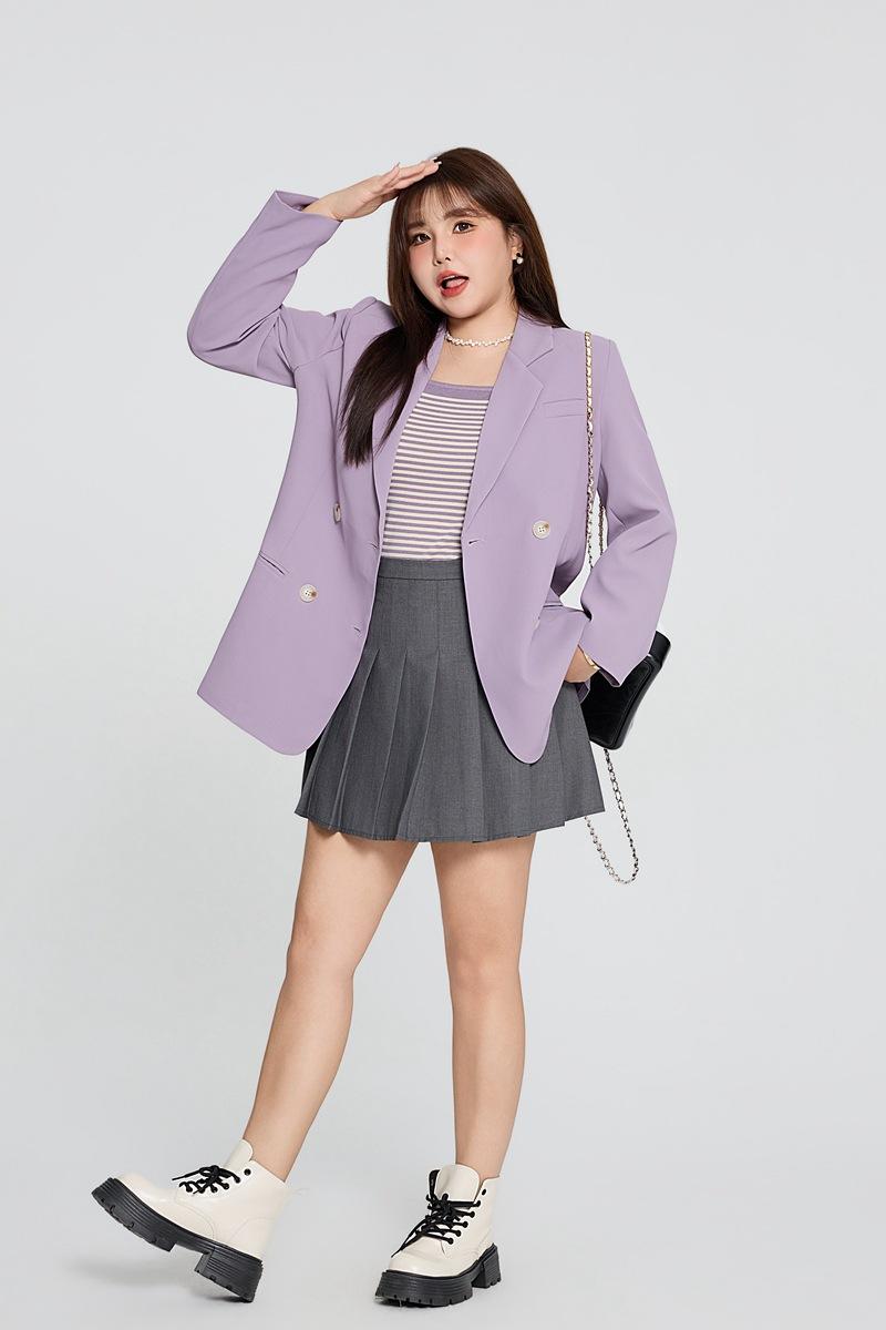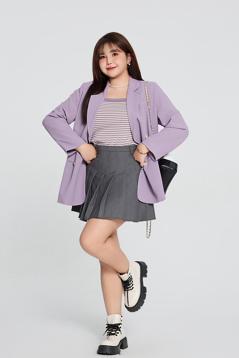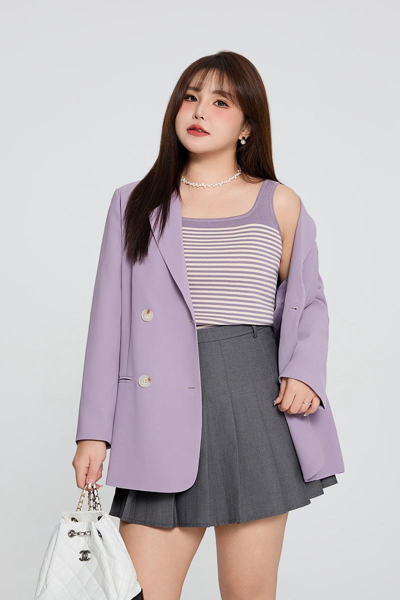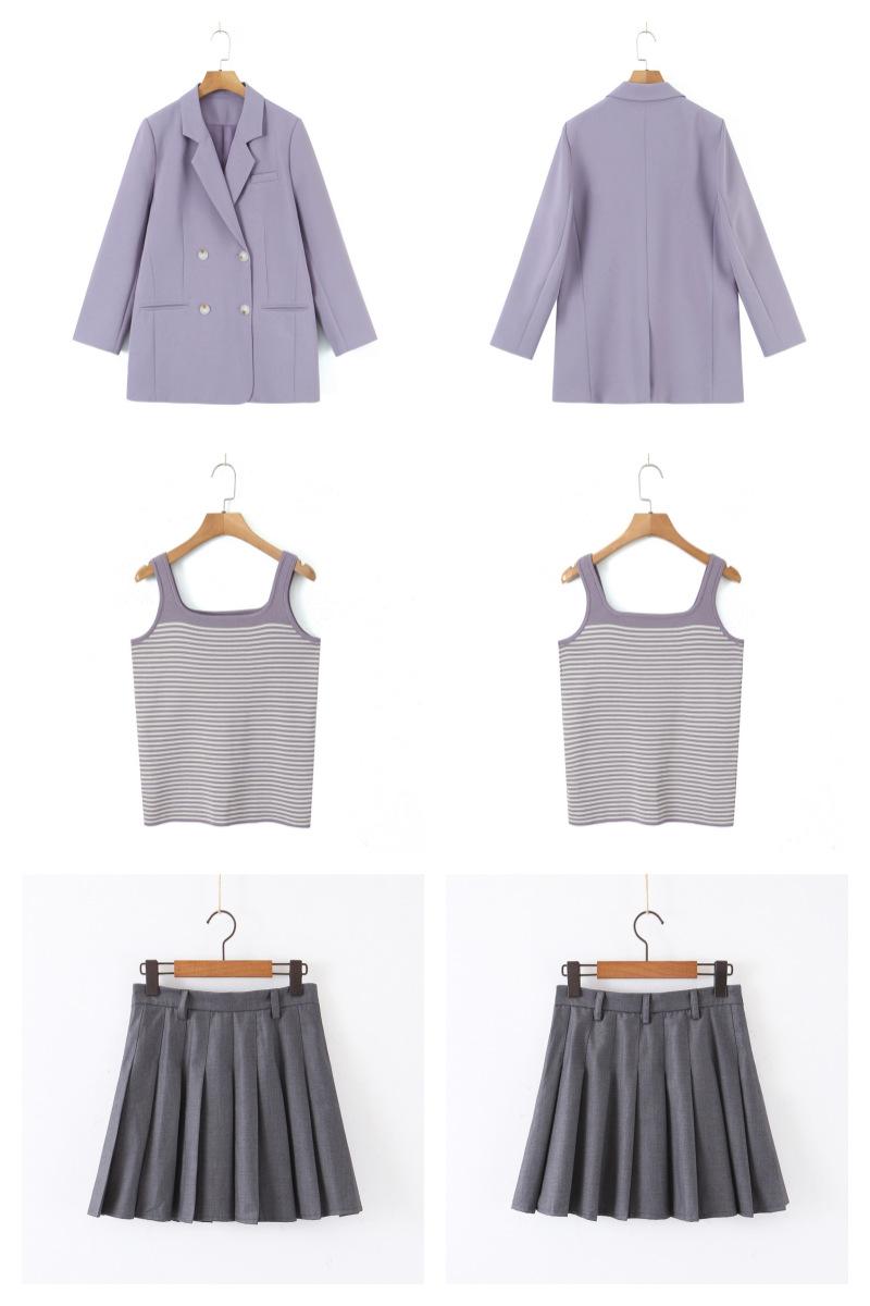 Mist Purple Suit, Grey Pleated Skirt, Purple Striped Knit Vest