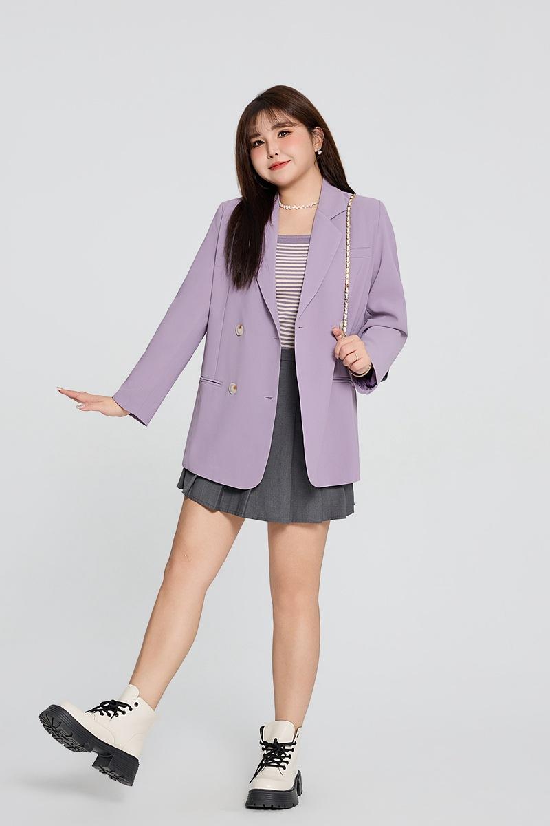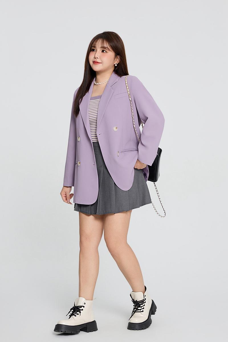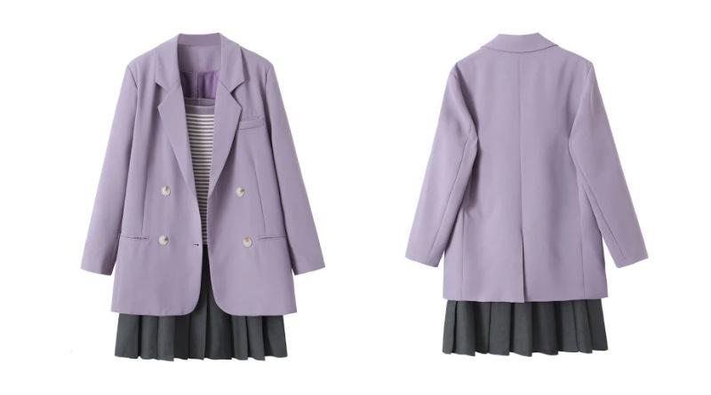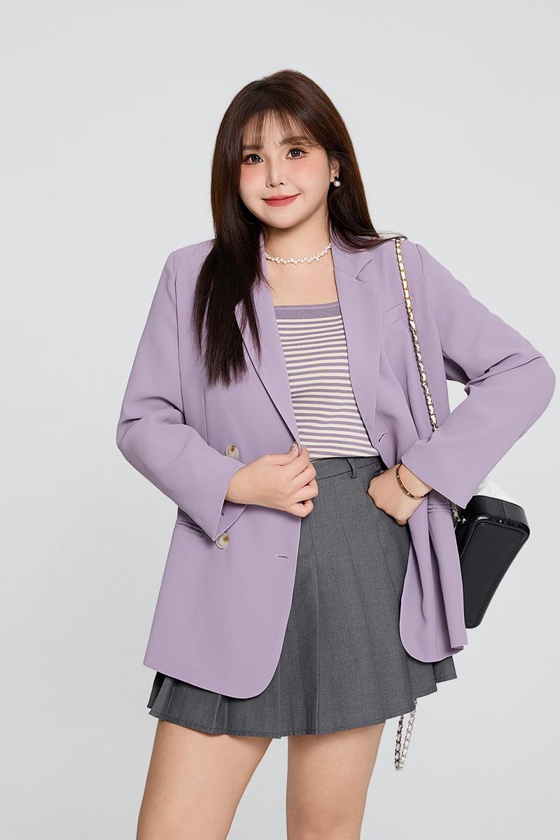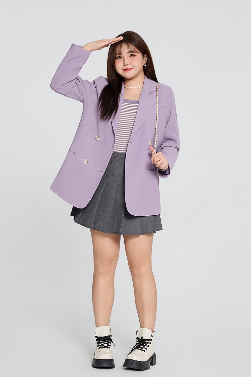 Mist Purple Suit, Grey Pleated Skirt, Purple Striped Knit Vest
