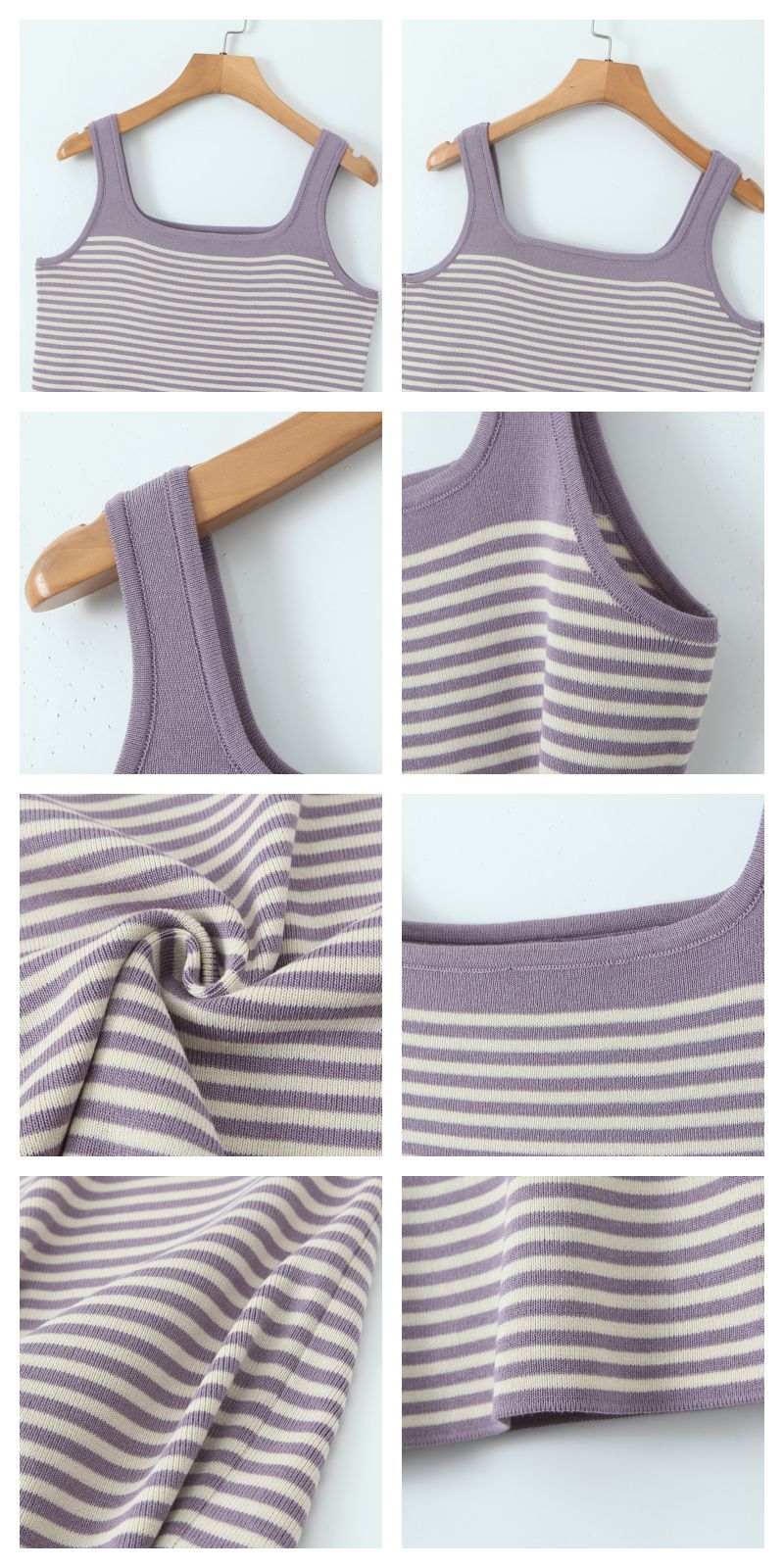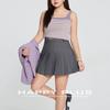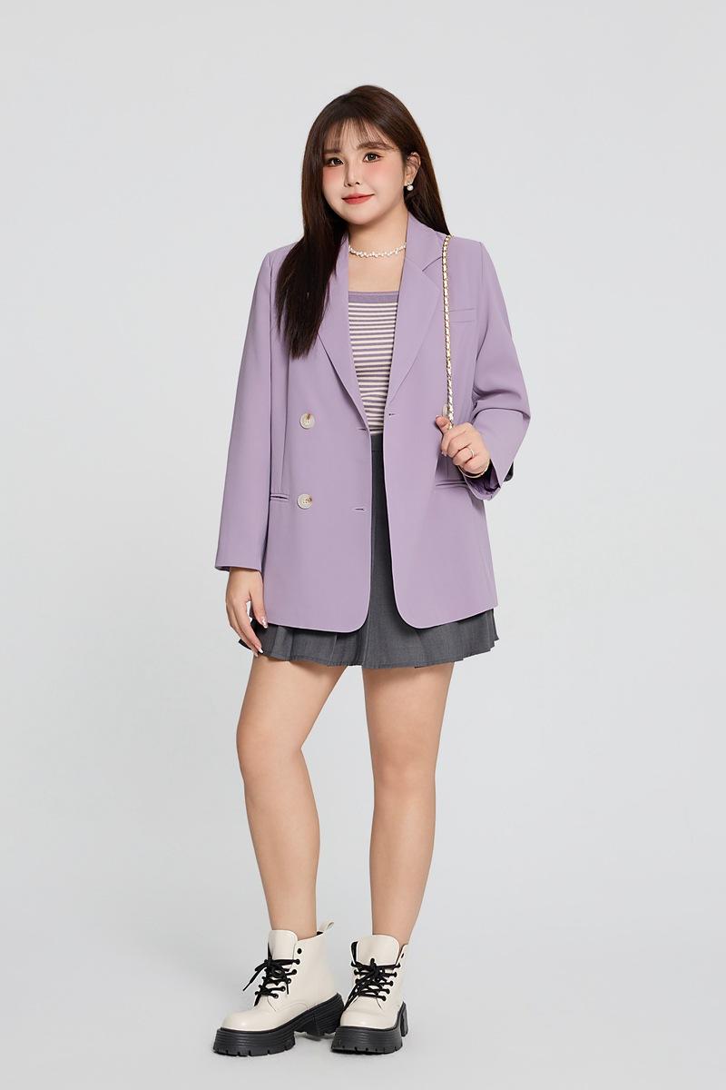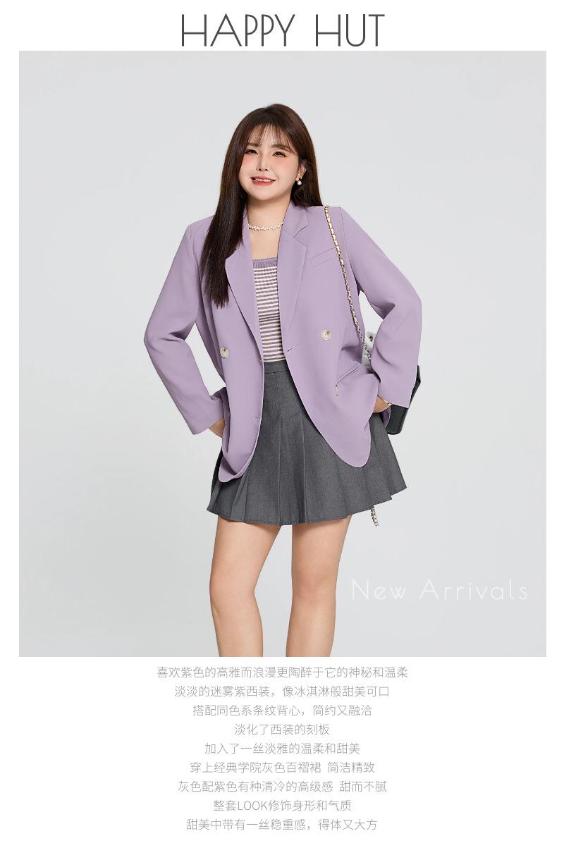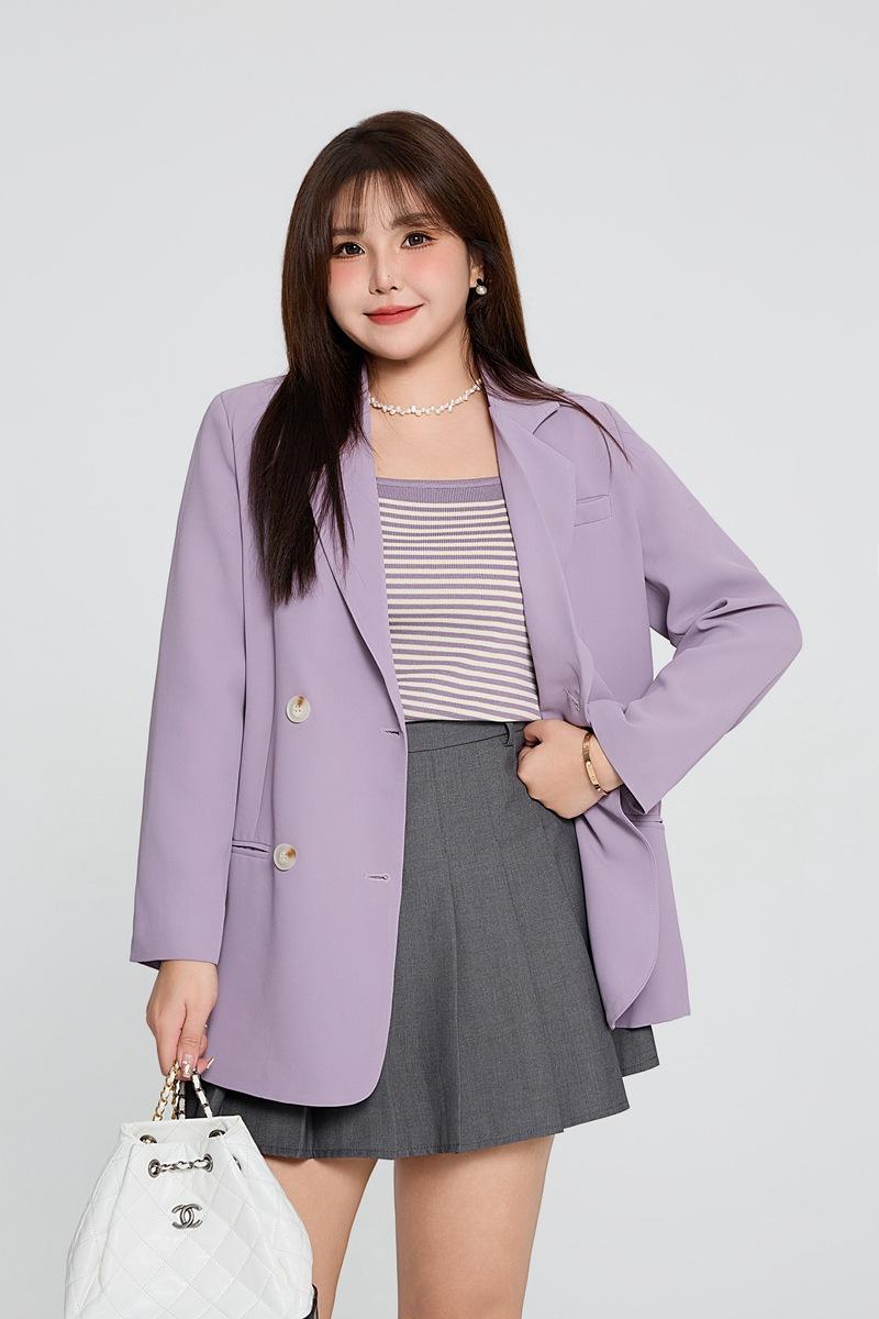 Mist Purple Suit, Grey Pleated Skirt, Purple Striped Knit Vest