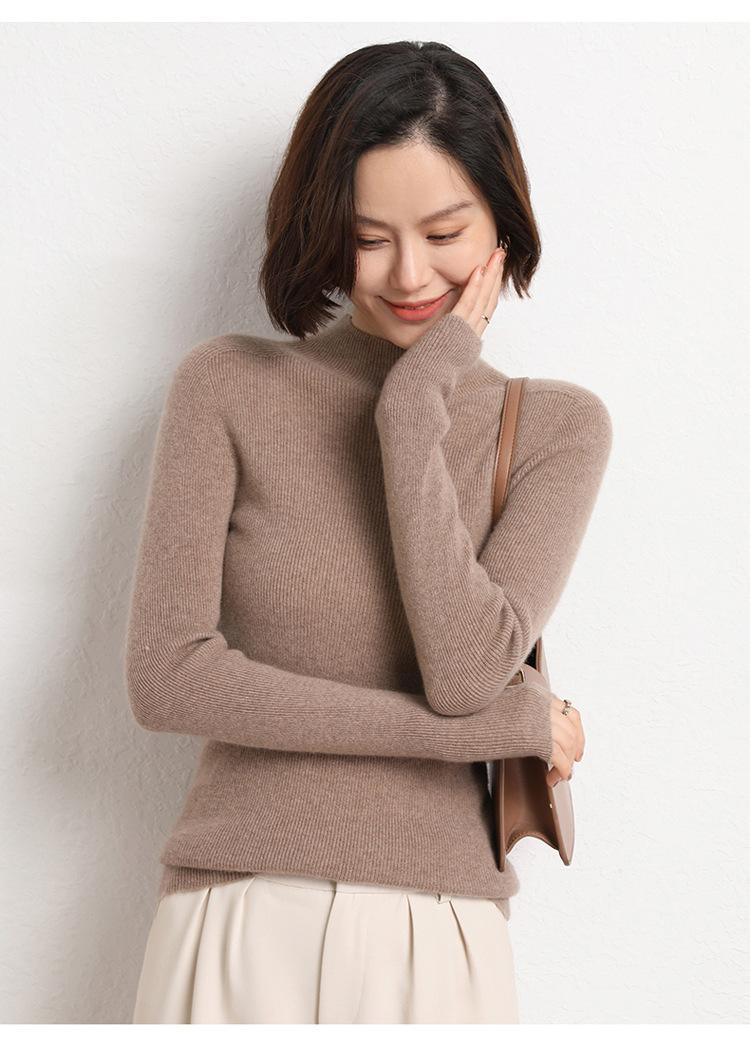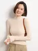 Ropa de primera línea sin costuras camisa ajustada de fondo para mujer cuello medio alto ajuste ceñido suéter versátil nuevo suéter cálido de otoño e invierno