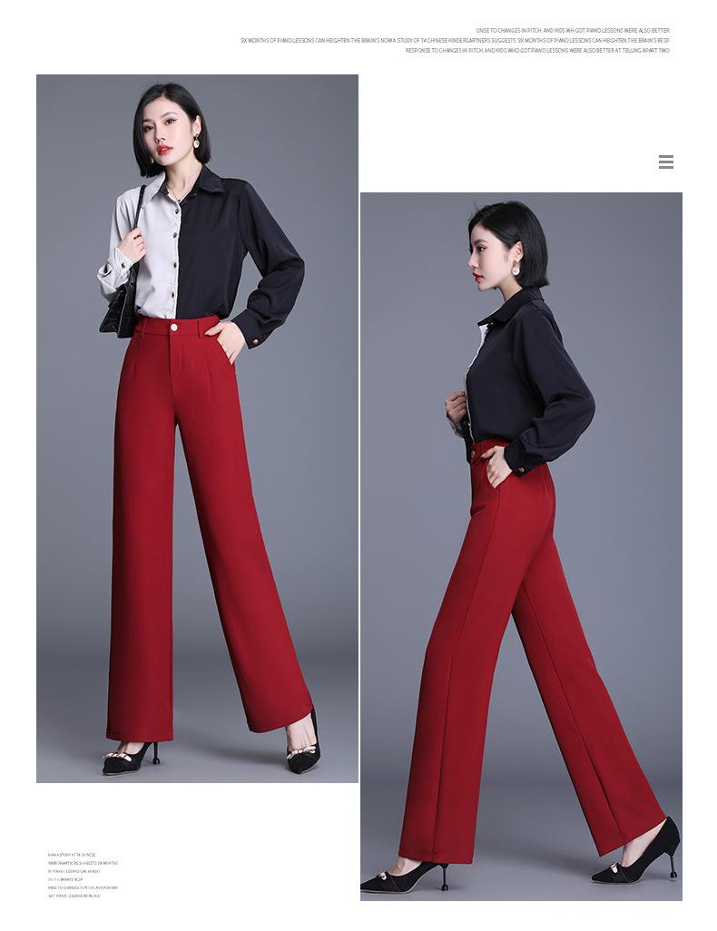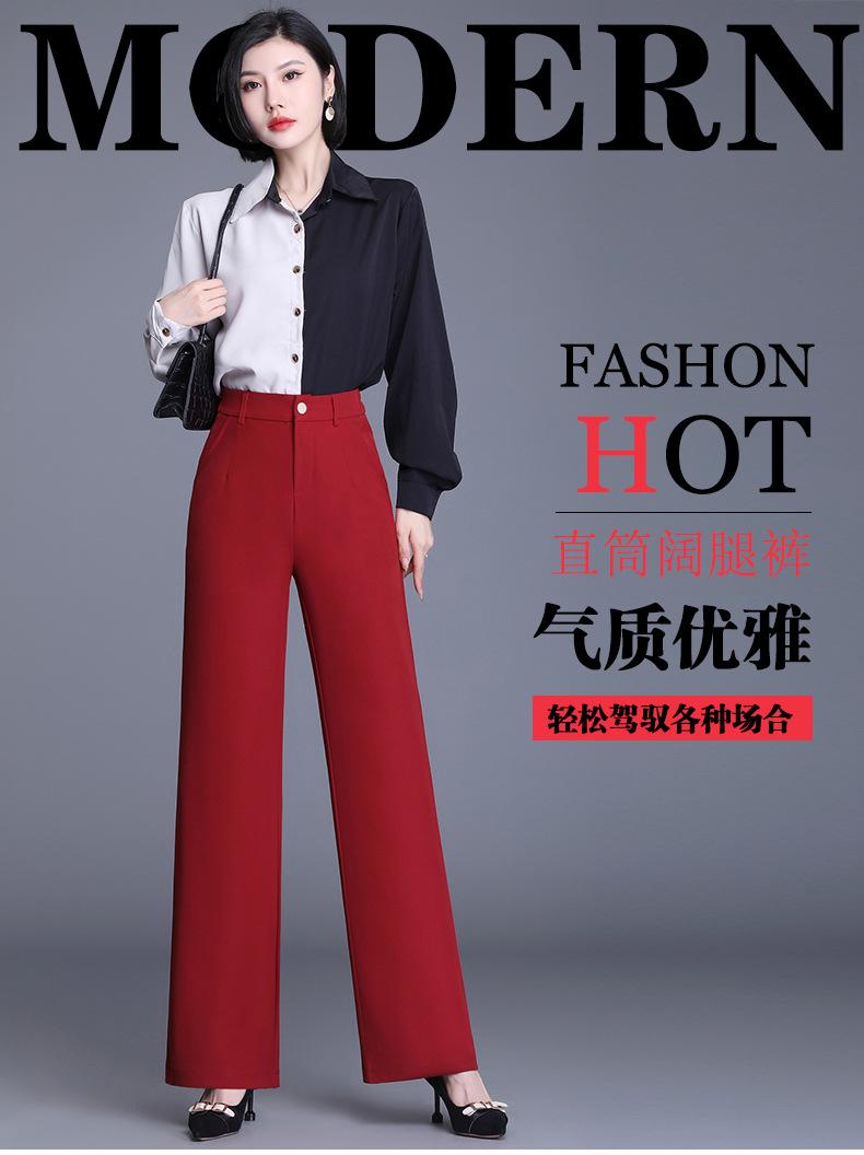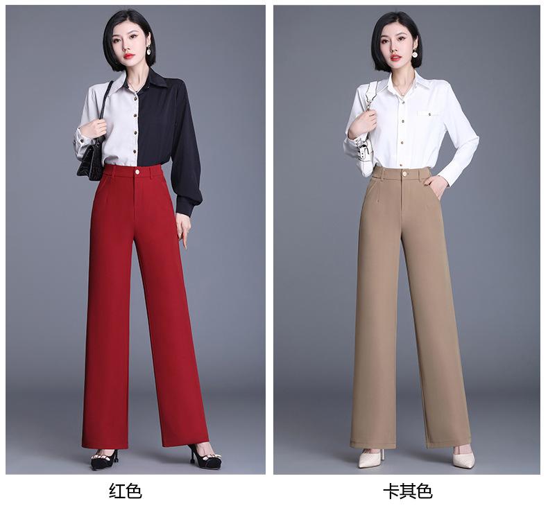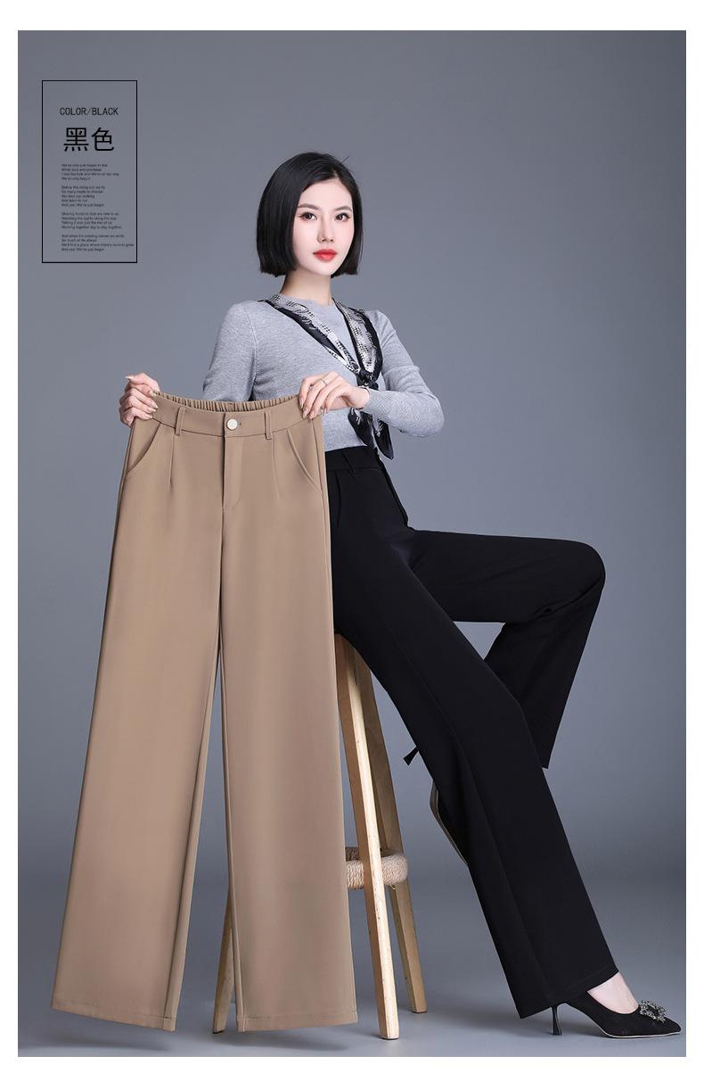 Ropa de Mujer de Primavera y Otoño 2025 Nuevos Pantalones de Pierna Recta Cintura Elástica de Tiro Alto Pantalones Casuales de Pierna Ancha para Mujeres Que Hacen Que las Piernas Parezcan Más Largas