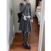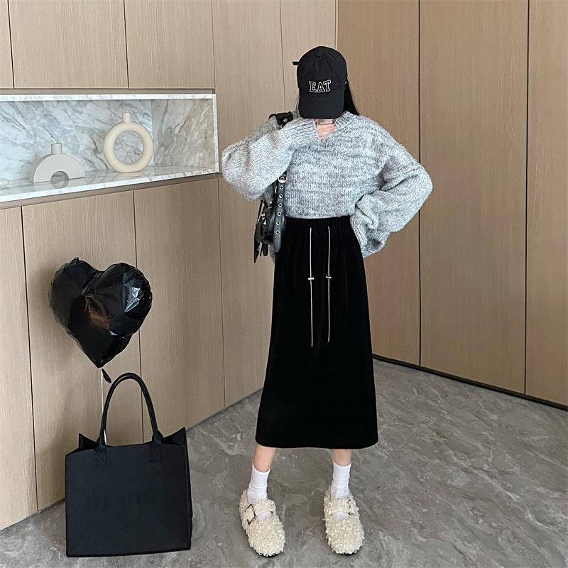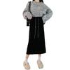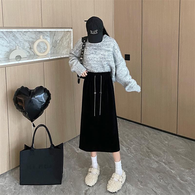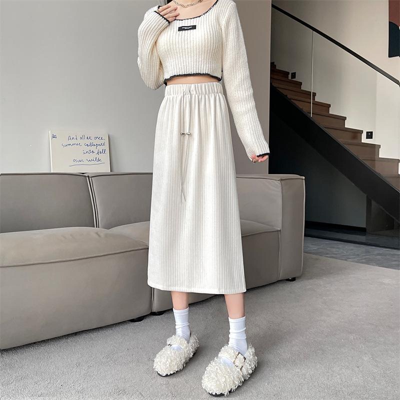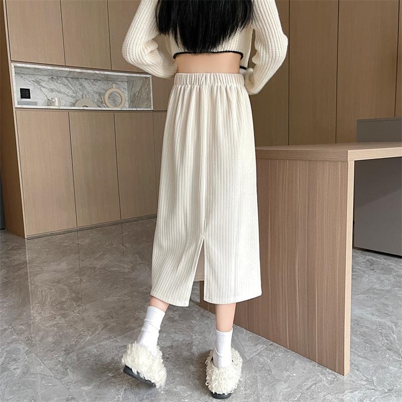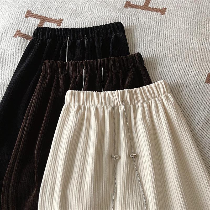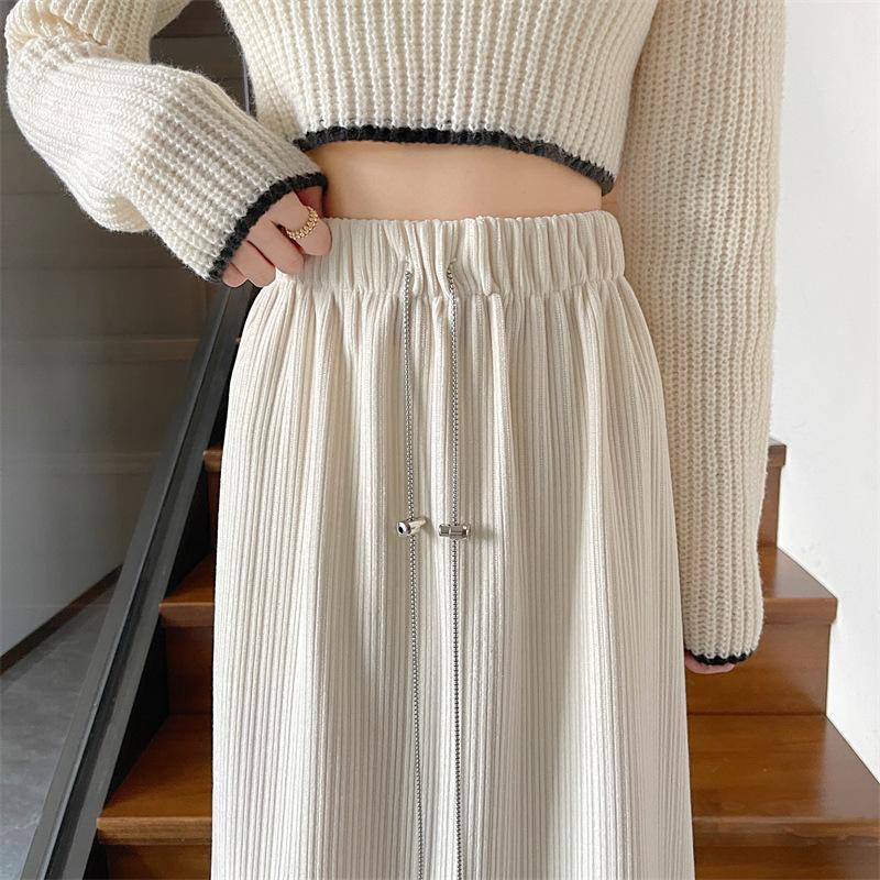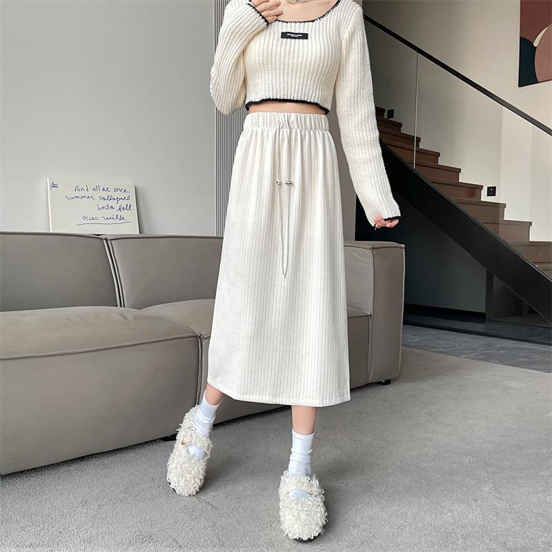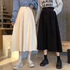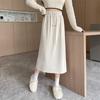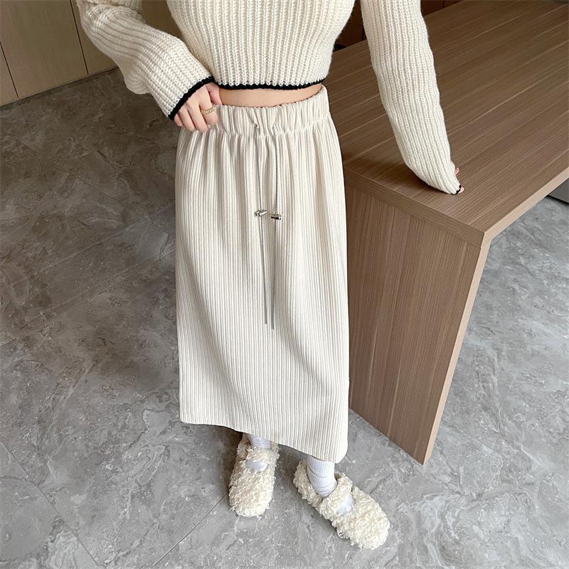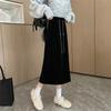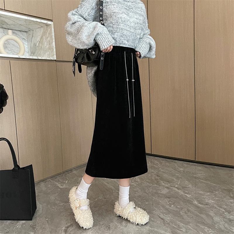 Falda Delgada de Pana para Mujer Diseño de Primavera y Otoño Cadena Abertura Estilo Coreano Cintura Alta Adelgazante Falda Midi