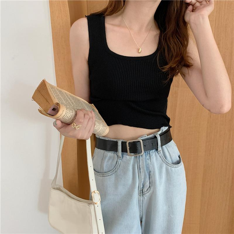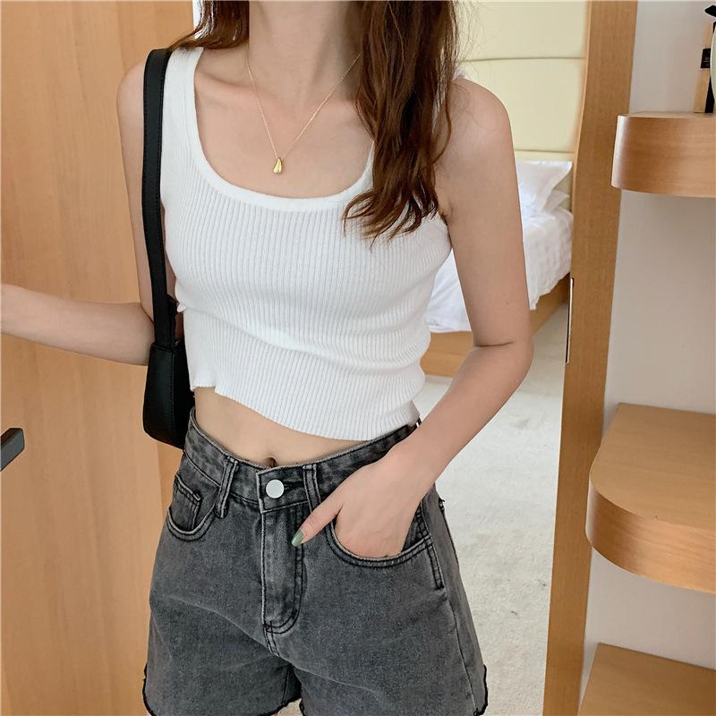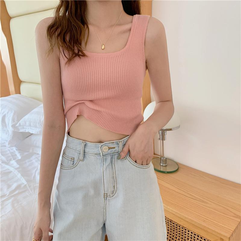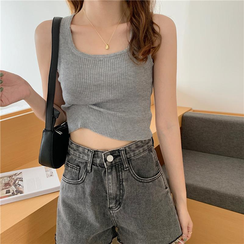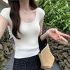 Camisola de punto sencilla y corta para exterior, estilo coreano, de corte entallado, estilo primavera y verano de 2024