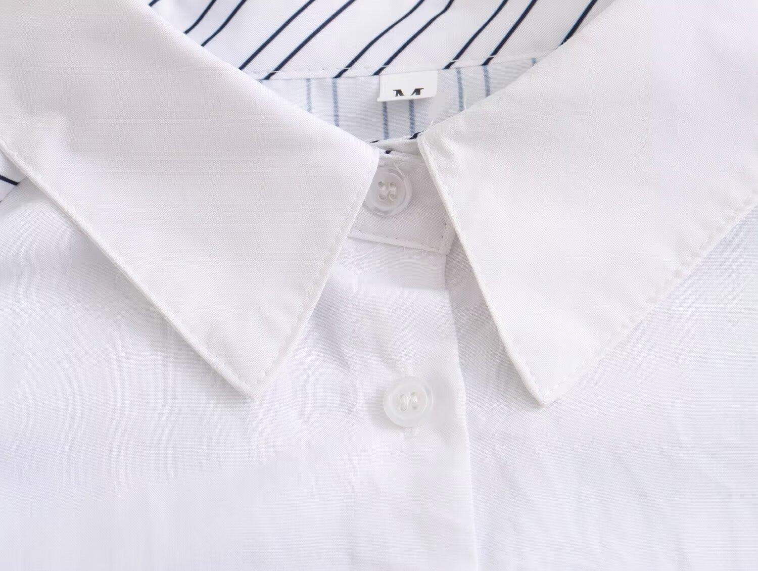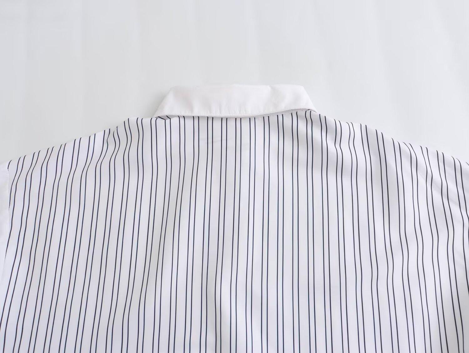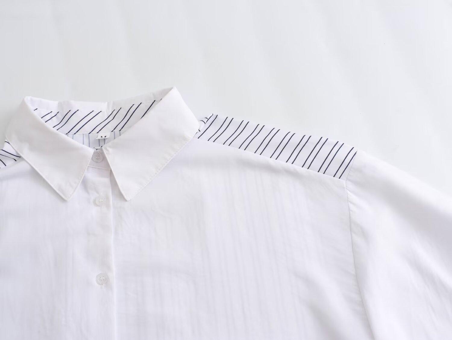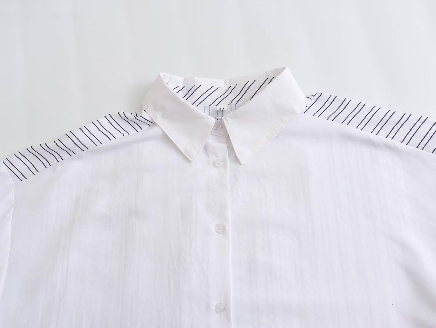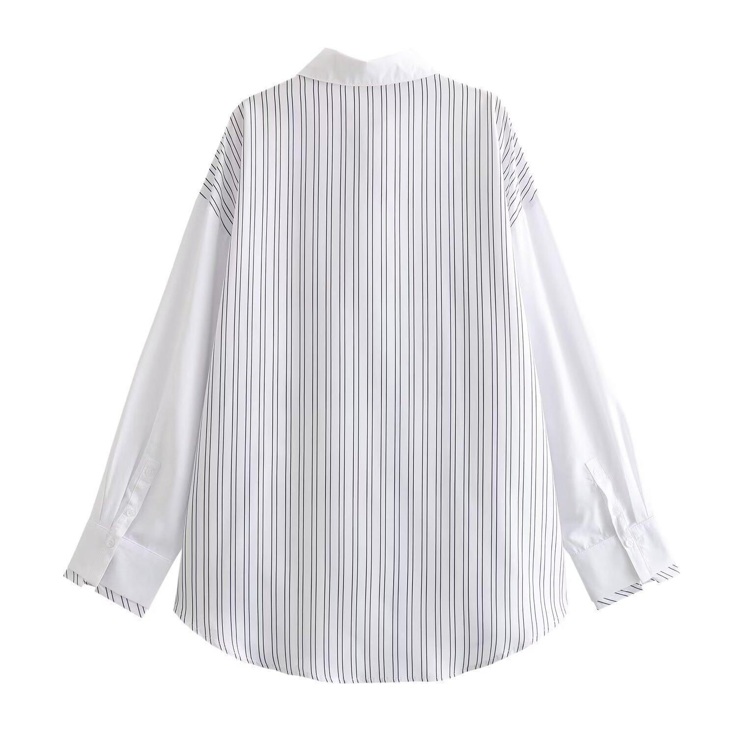 Ropa de mujer transfronteriza europea y americana primavera 2024 top sentido del diseño nicho estilo novio holgado costuras a rayas camisa blanca