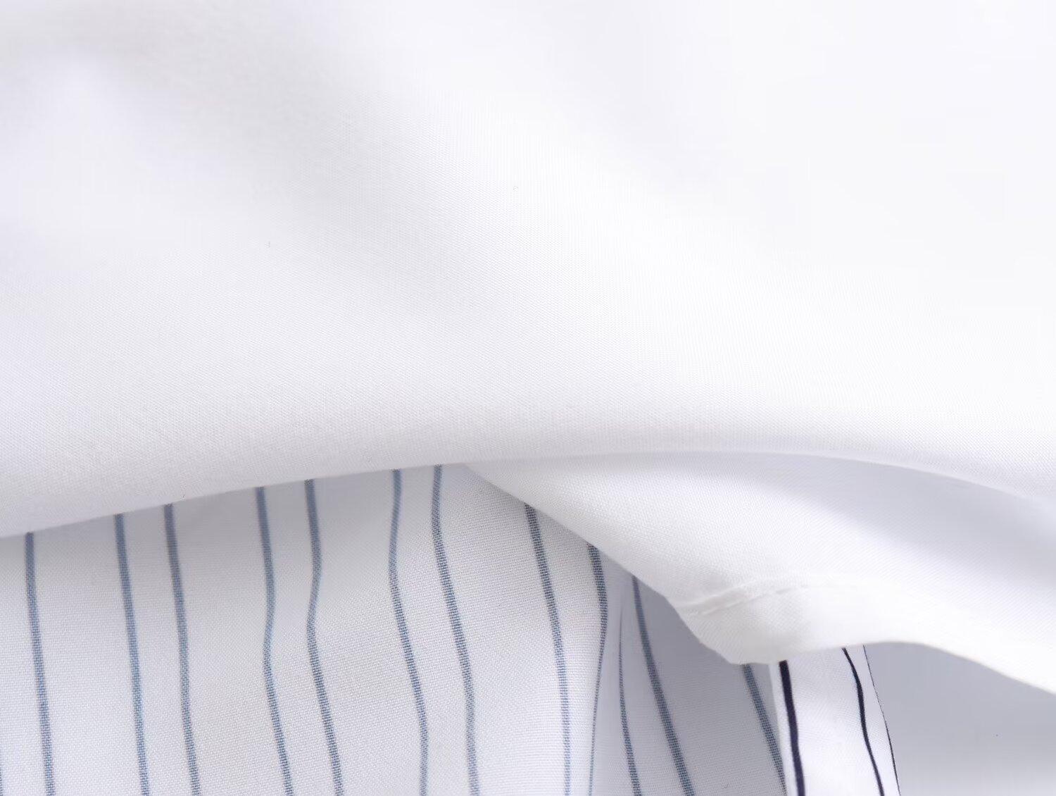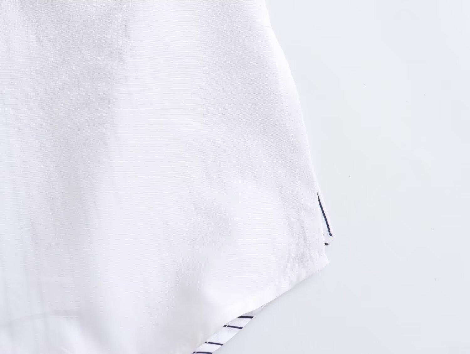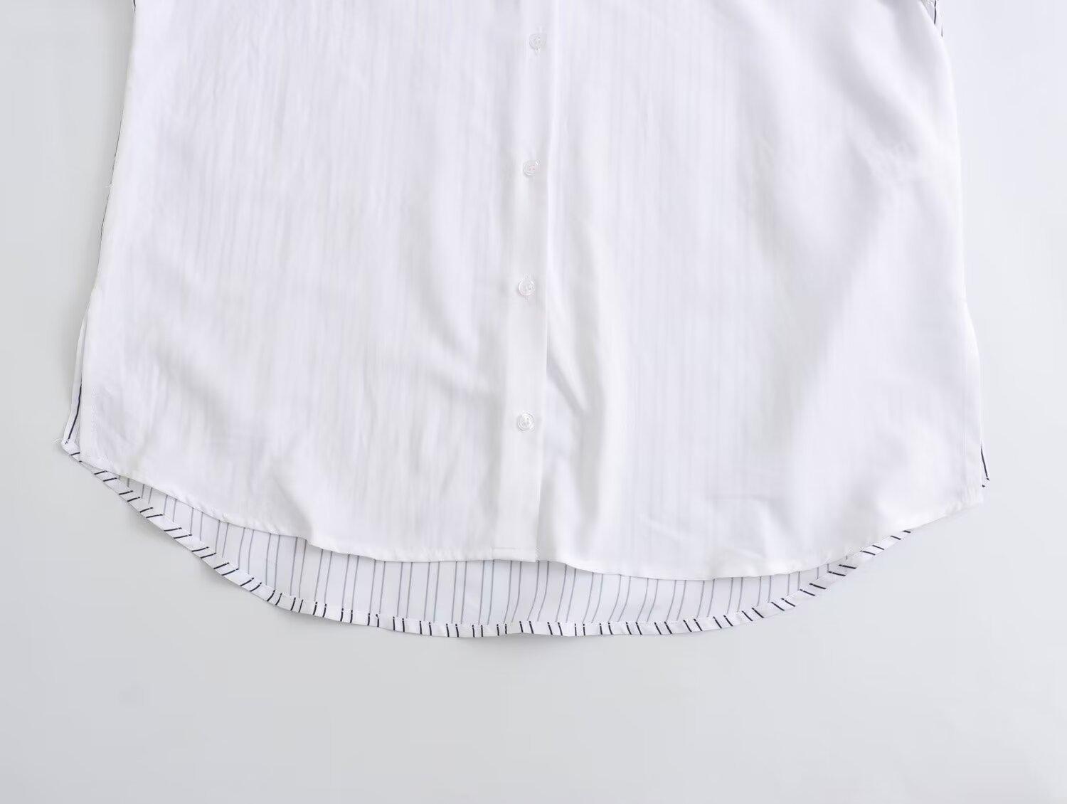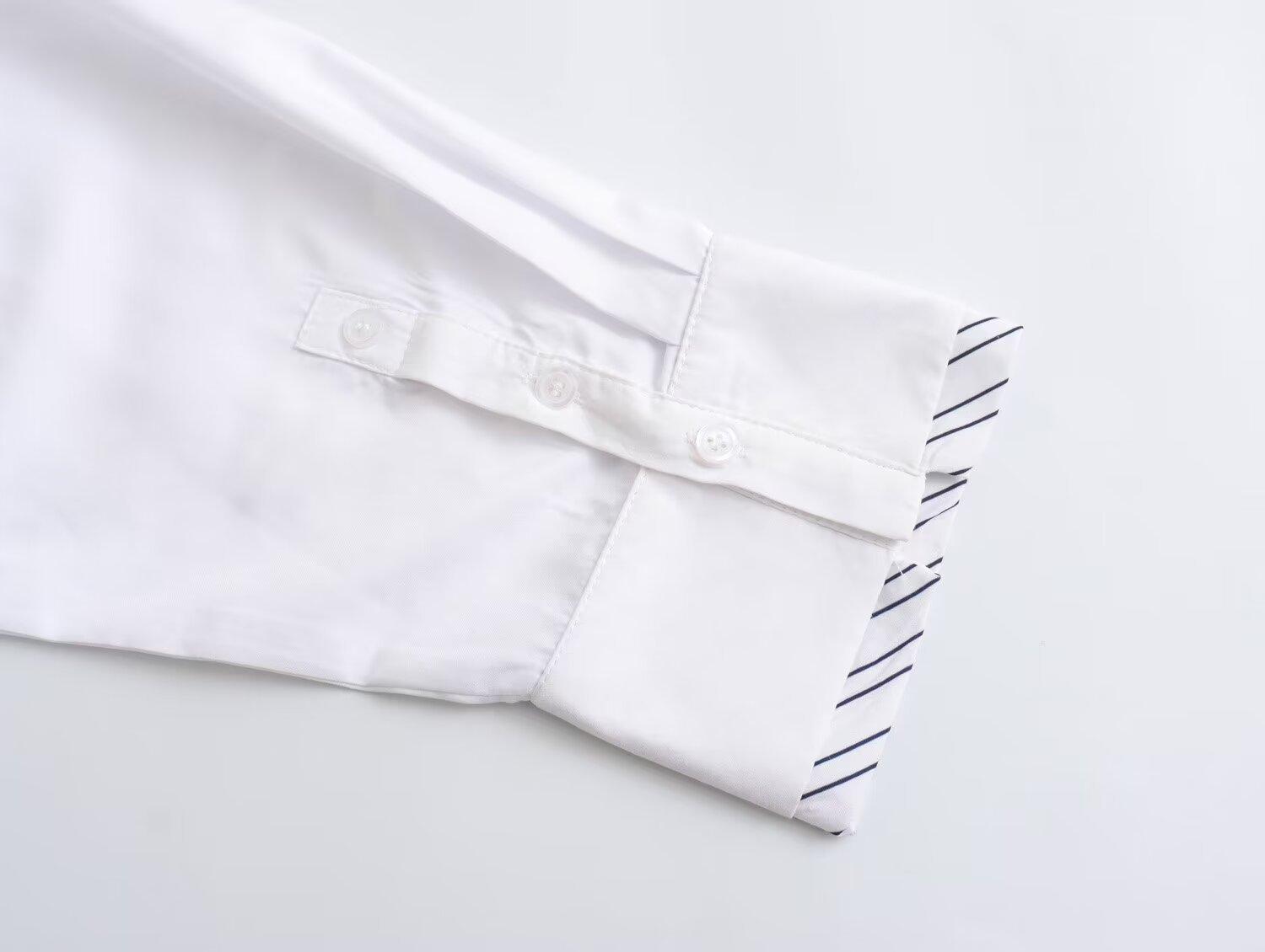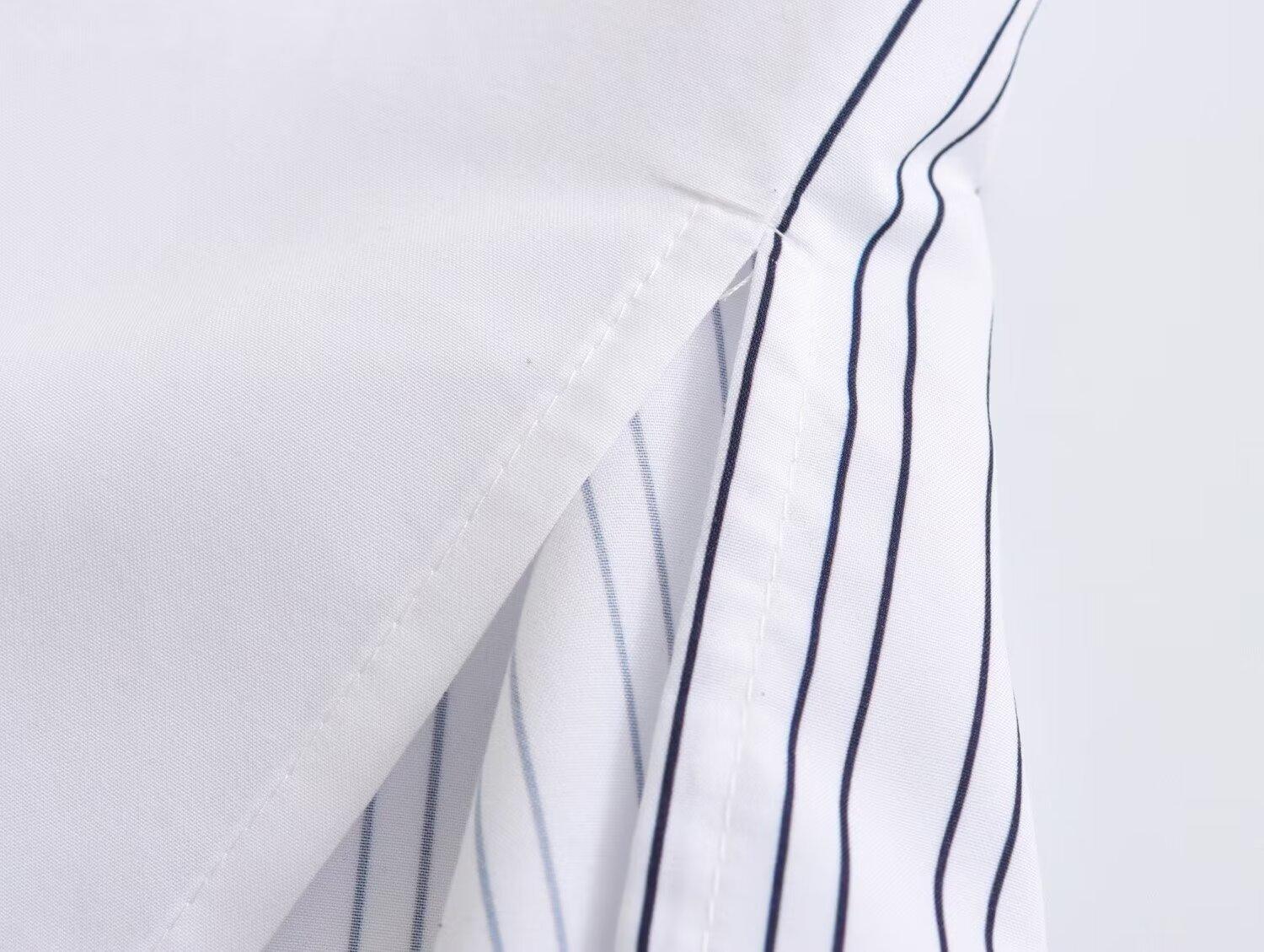 Ropa de mujer transfronteriza europea y americana primavera 2024 top sentido del diseño nicho estilo novio holgado costuras a rayas camisa blanca