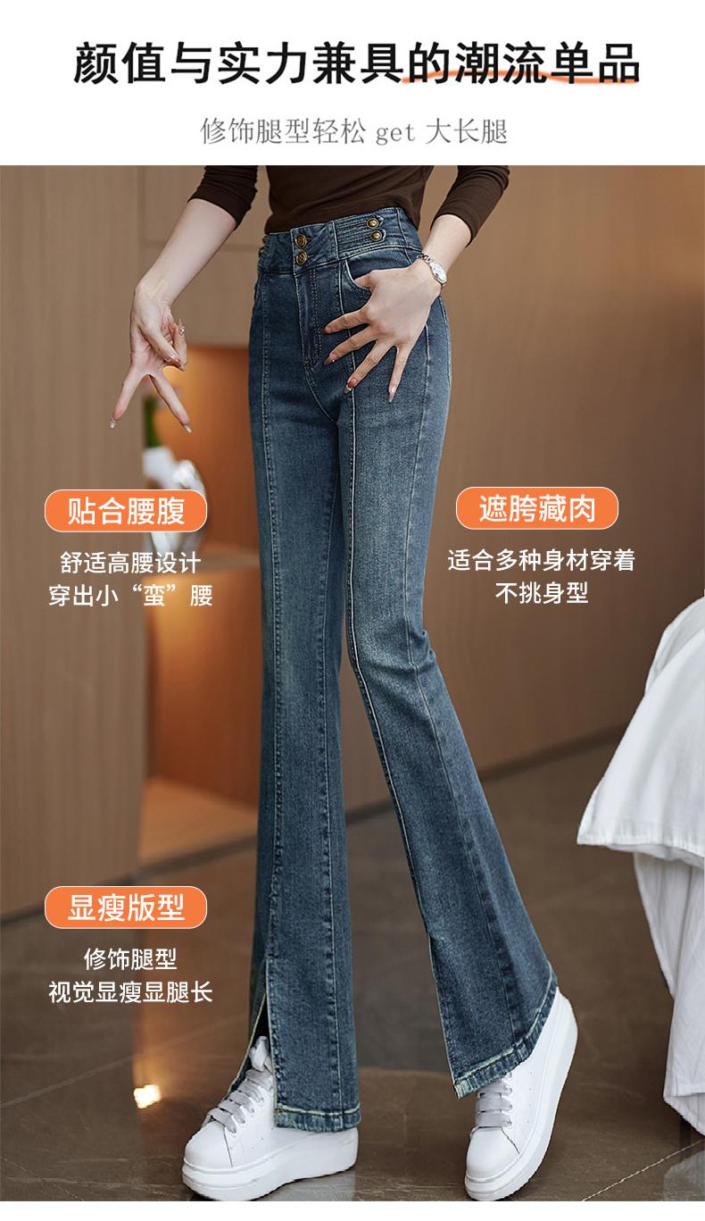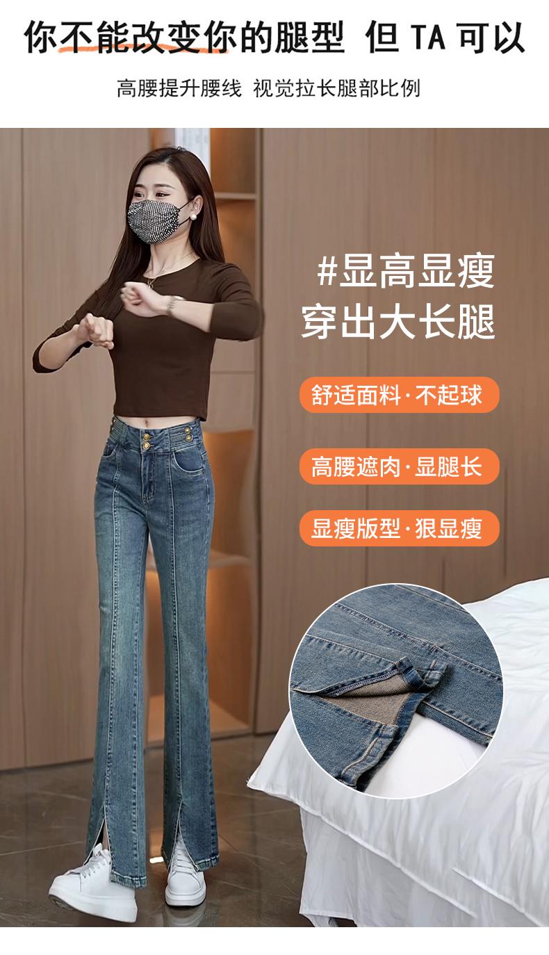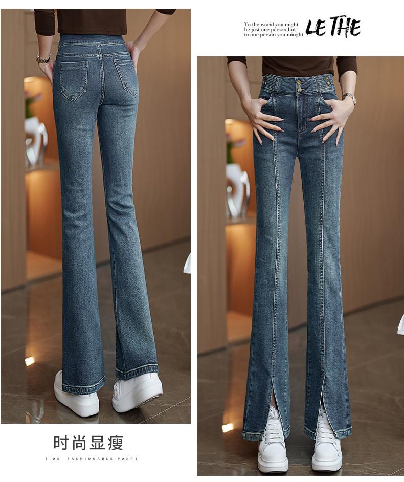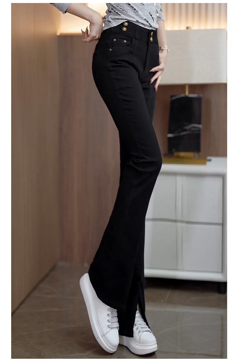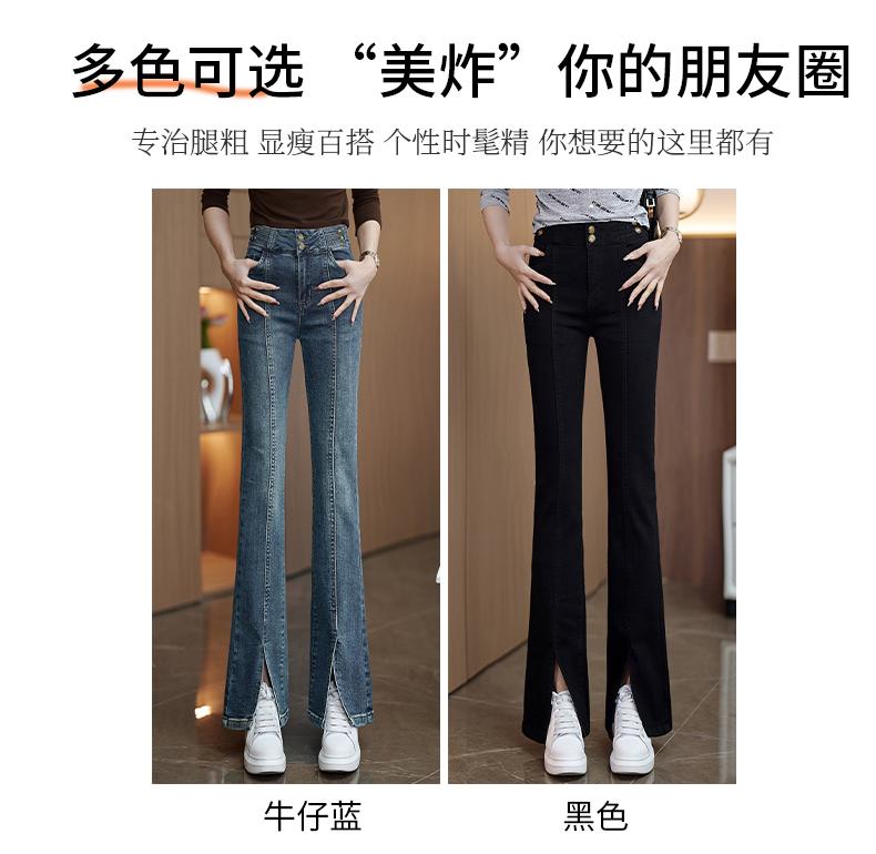 Pantalones vaqueros micro con descuento de marca para mujer, primavera y otoño 2024, nuevos pantalones de cola de pez de cintura alta, pantalones acampanados con botonadura.