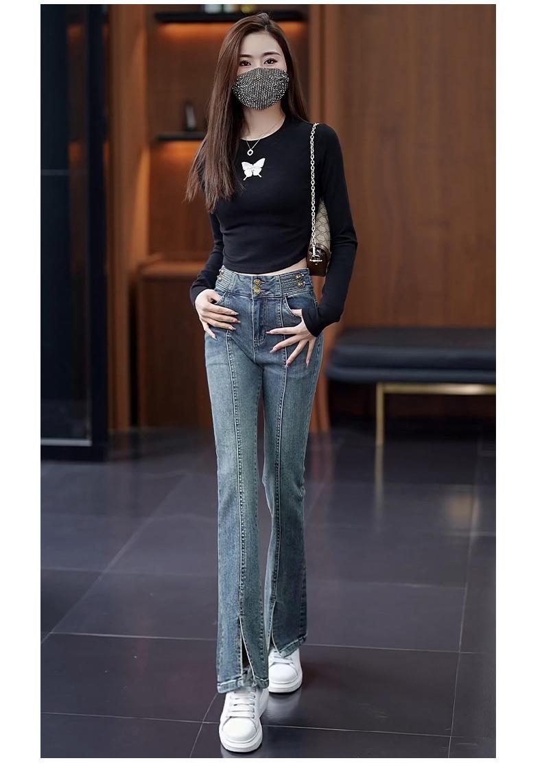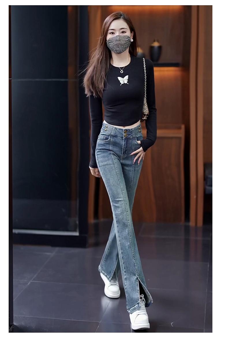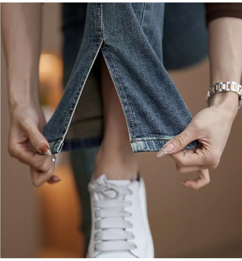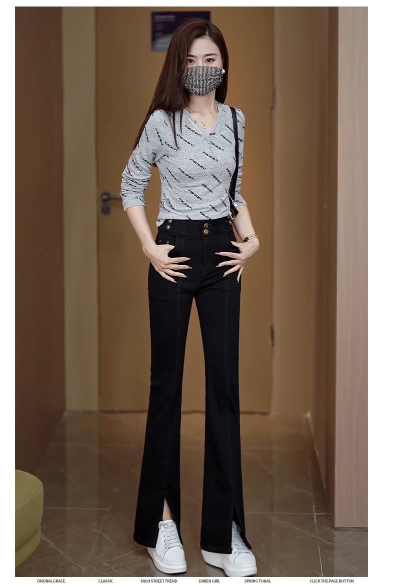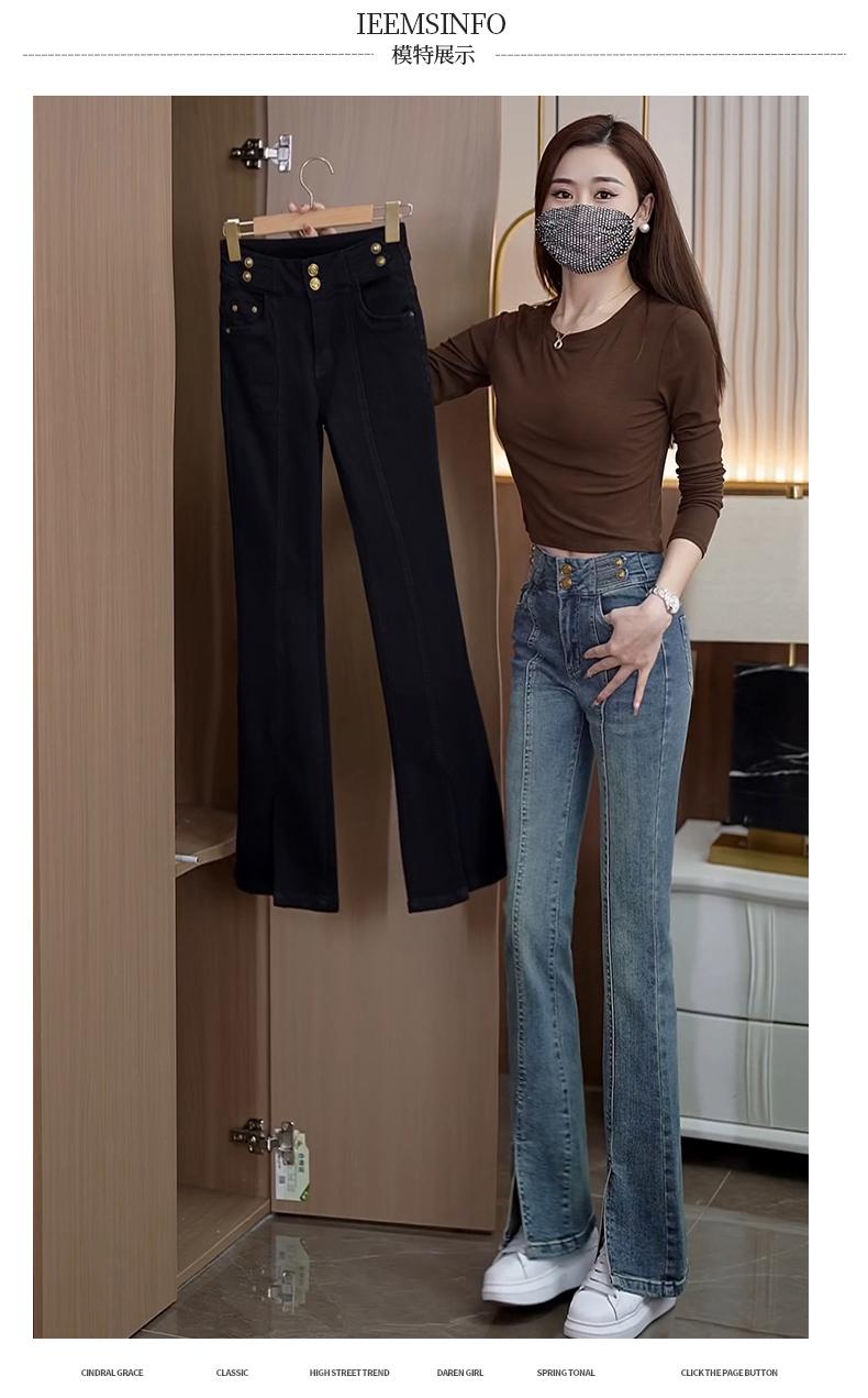 Pantalones vaqueros micro con descuento de marca para mujer, primavera y otoño 2024, nuevos pantalones de cola de pez de cintura alta, pantalones acampanados con botonadura.