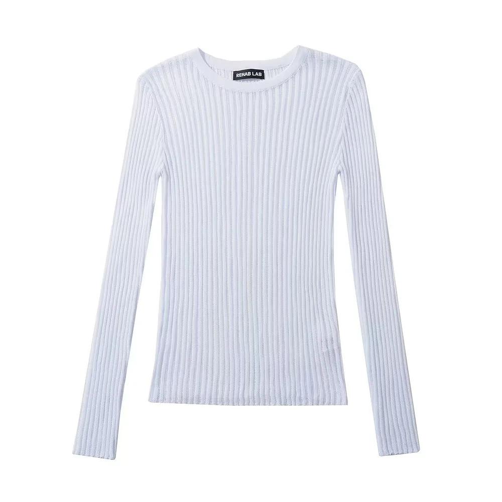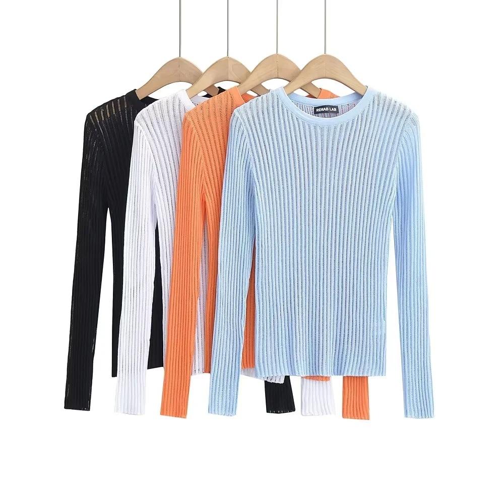 Suéter calado con perspectiva de calle europea y americana para mujer, primavera 2023, ajustado, adelgazante, combina con todo, camisa base sexy