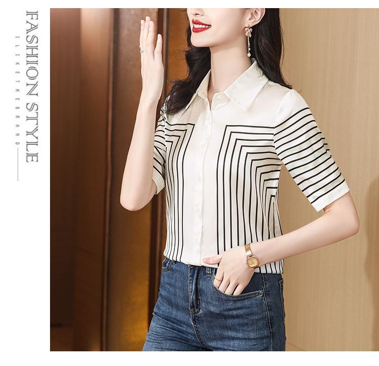 Camisa con estampado de rayas para mujer, verano 2023, diseño francés de nicho, elegante, combinable, para ir al trabajo