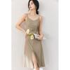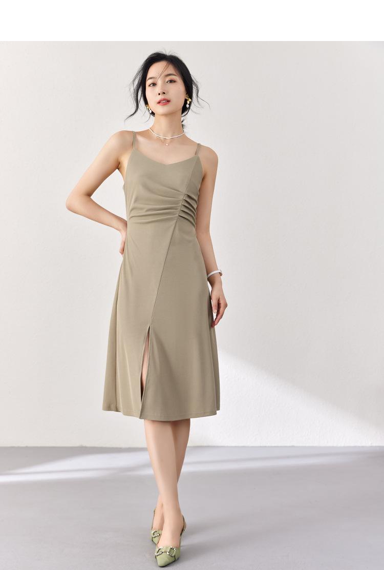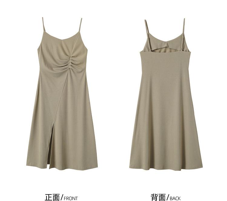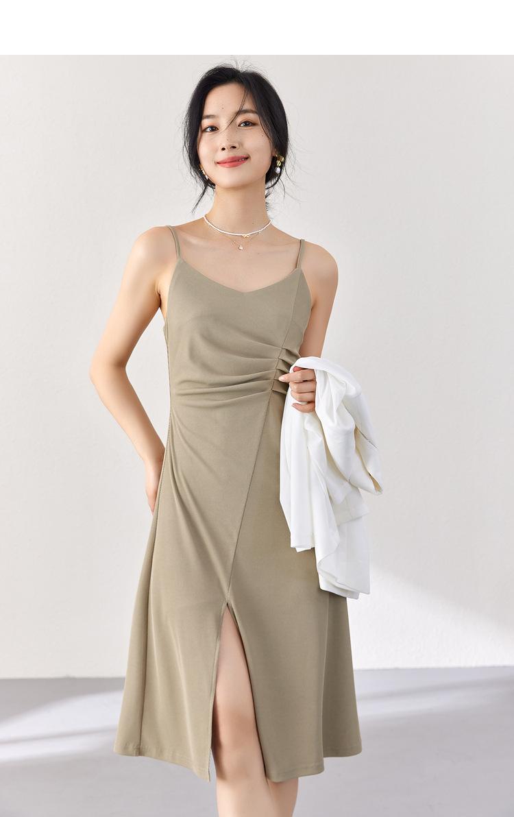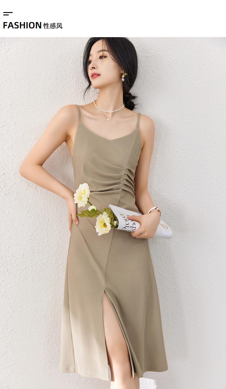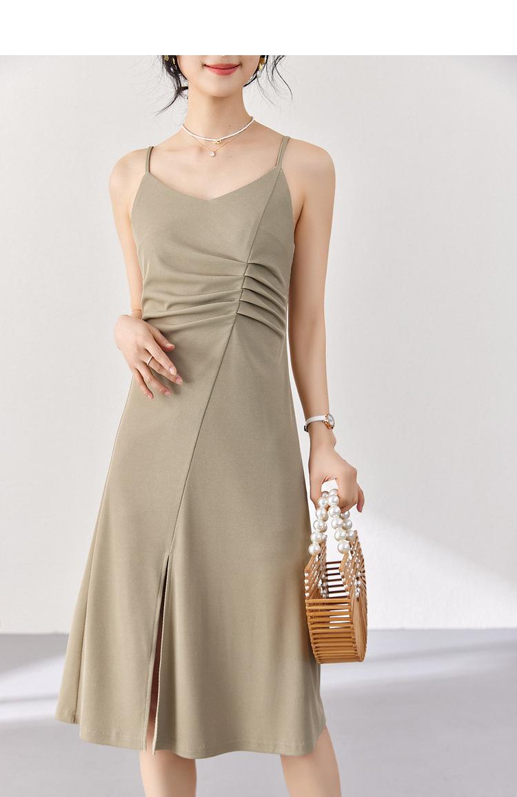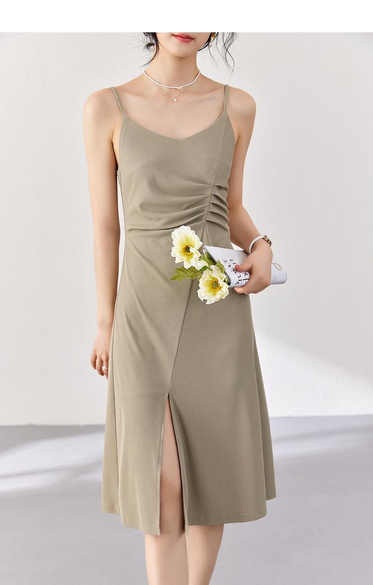 Vestido Zhen Xi para mujer, sexy, con escote en V, cintura alta, corte entallado, con abertura en la pierna y color liso, DJ770