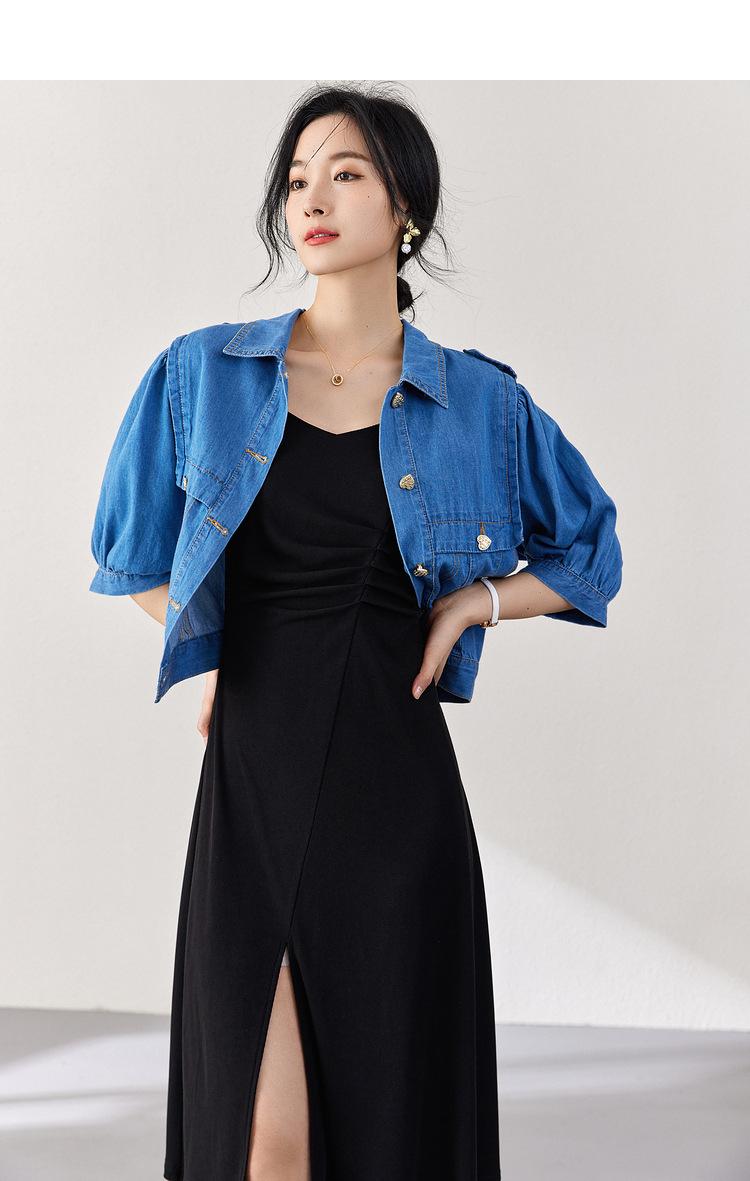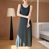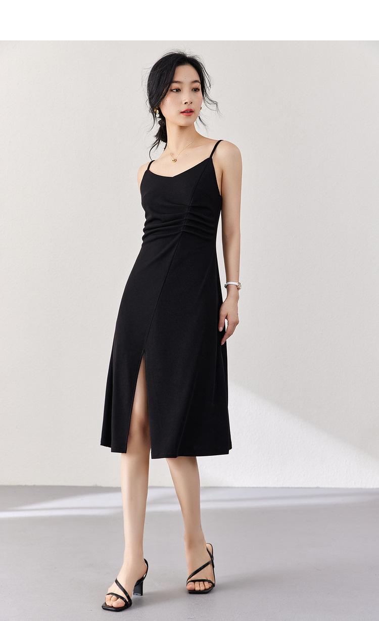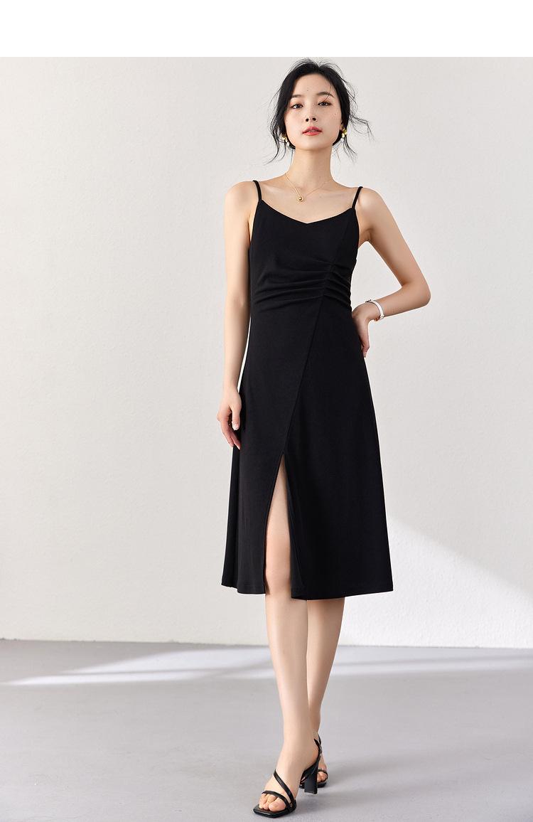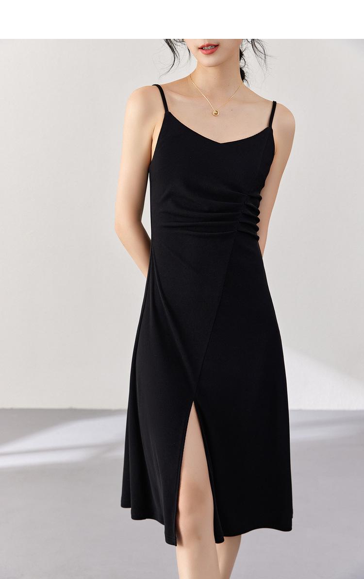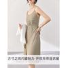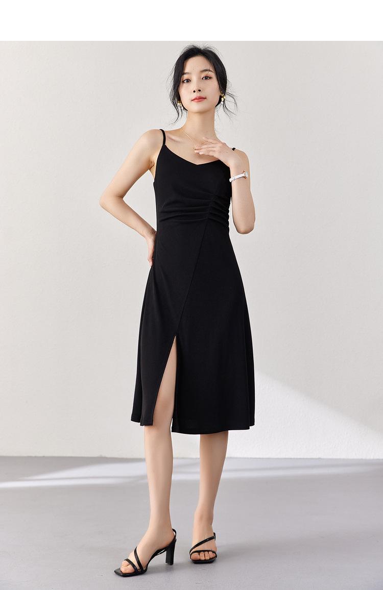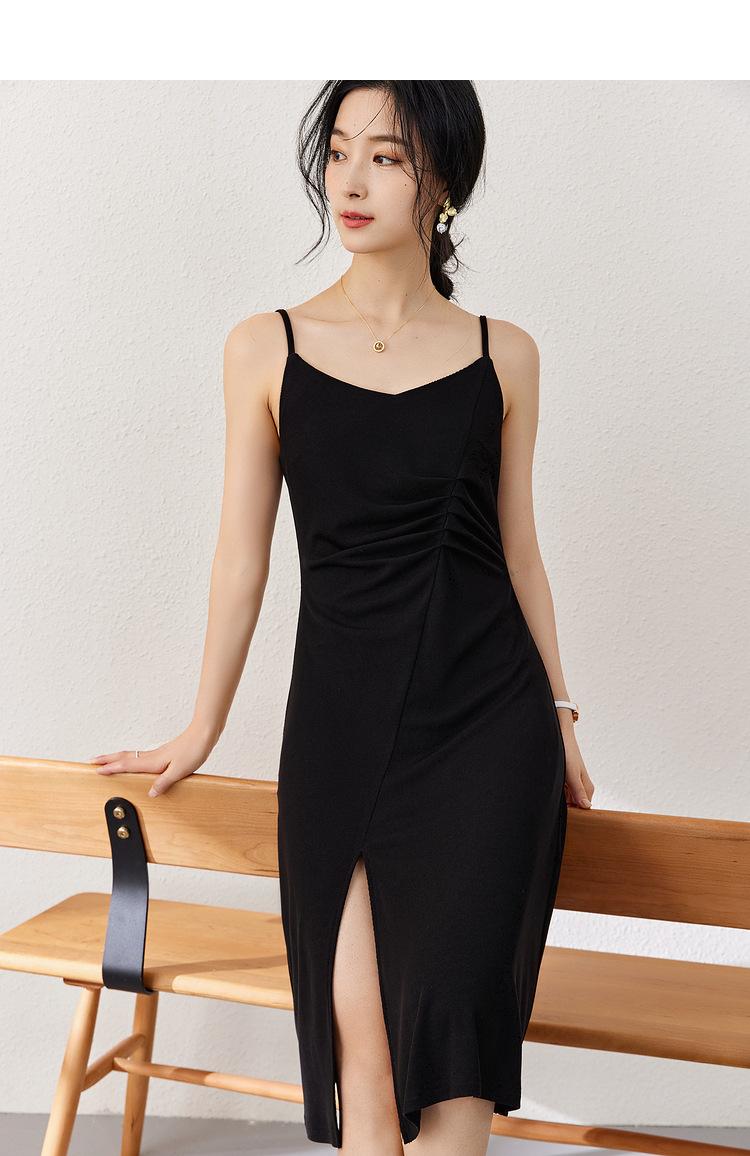 Vestido Zhen Xi para mujer, sexy, con escote en V, cintura alta, corte entallado, con abertura en la pierna y color liso, DJ770