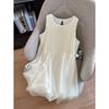 Conjunto de vestido de verano para mujer, estilo coreano, estilo francés, de malla, con escote en V, holgado, informal, adelgazante, de dos piezas, a la moda