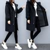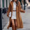 Abrigo de solapa con capucha de longitud media de felpa cálida de otoño e invierno para mujer europea y americana popular entre las fronteras de Amazon