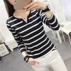 Mayoreo 2020 Nuevo Otoño Estilo Coreano Ropa de Mujer Slim Rayas Cuello en V Manga Larga Camiseta de Mujer Camiseta Básica Envío Directo