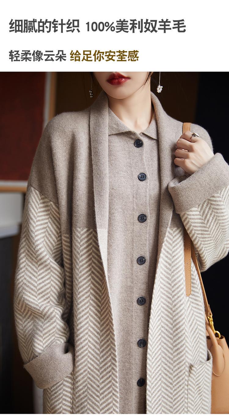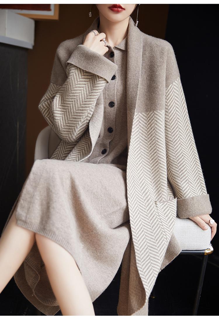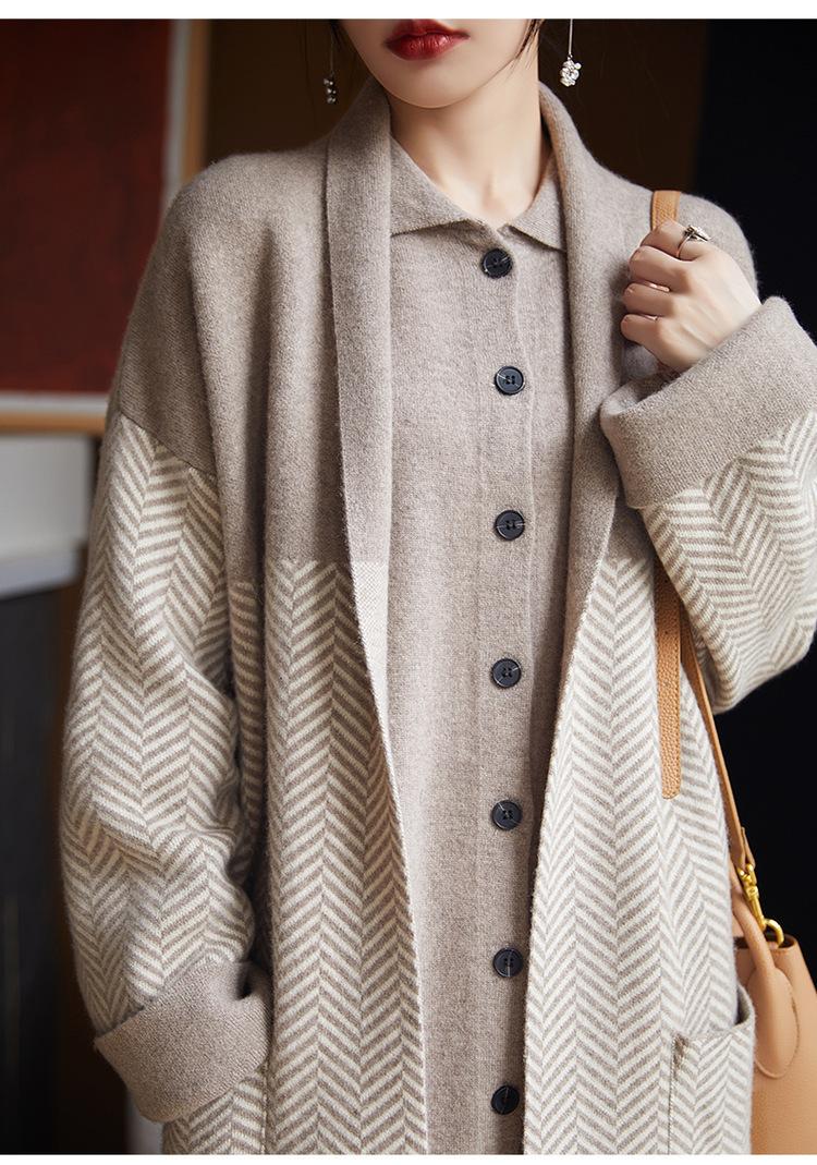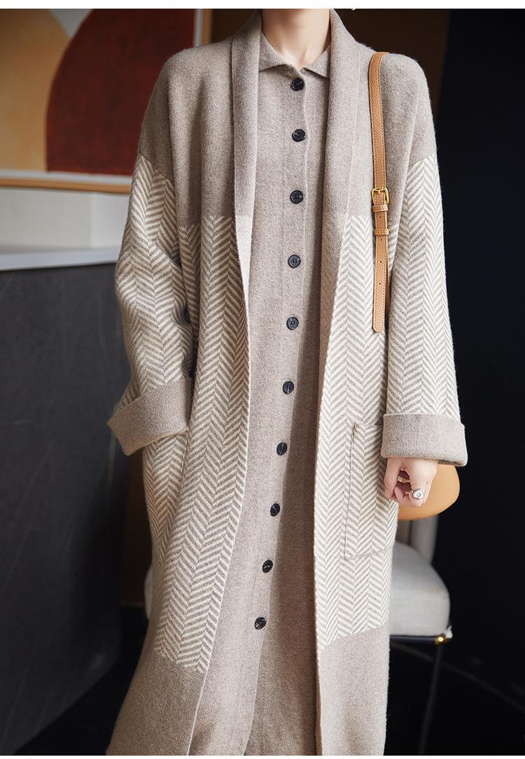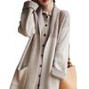 Cárdigan de lana pura para mujer, suéter holgado de espiga hasta la rodilla con solapa y largo medio, abrigo largo