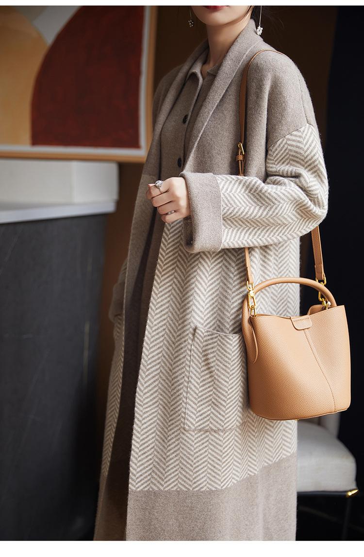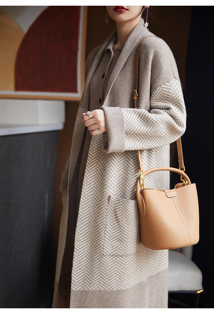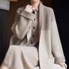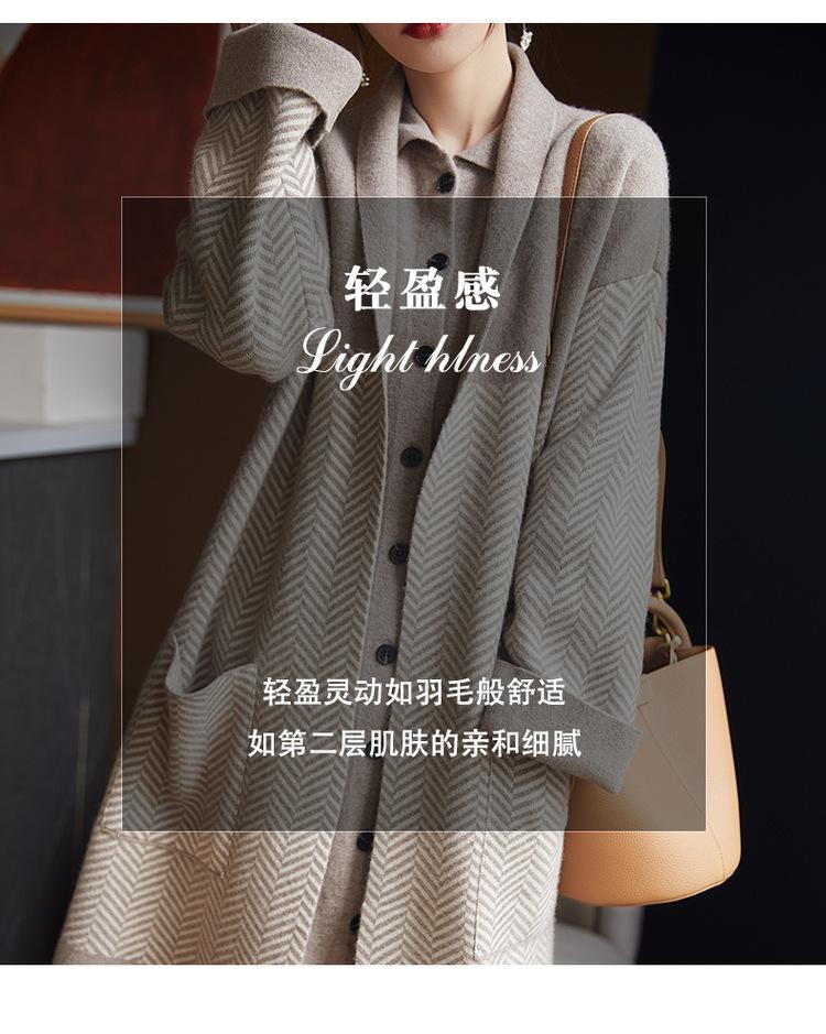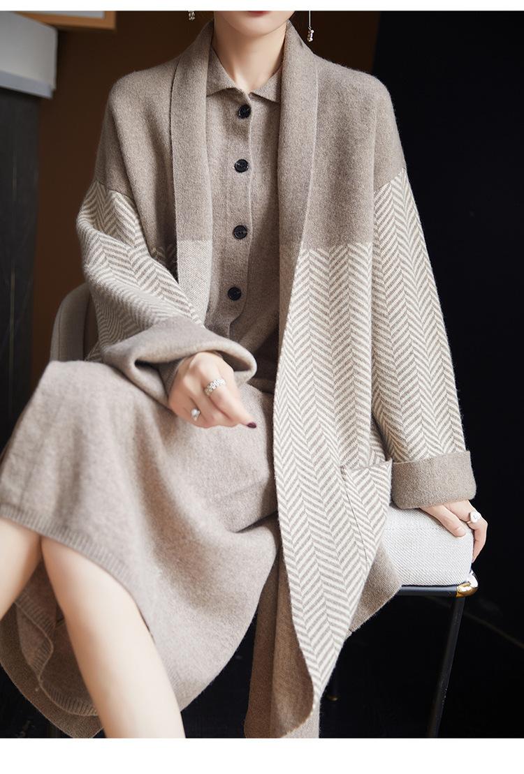 Cárdigan de lana pura para mujer, suéter holgado de espiga hasta la rodilla con solapa y largo medio, abrigo largo