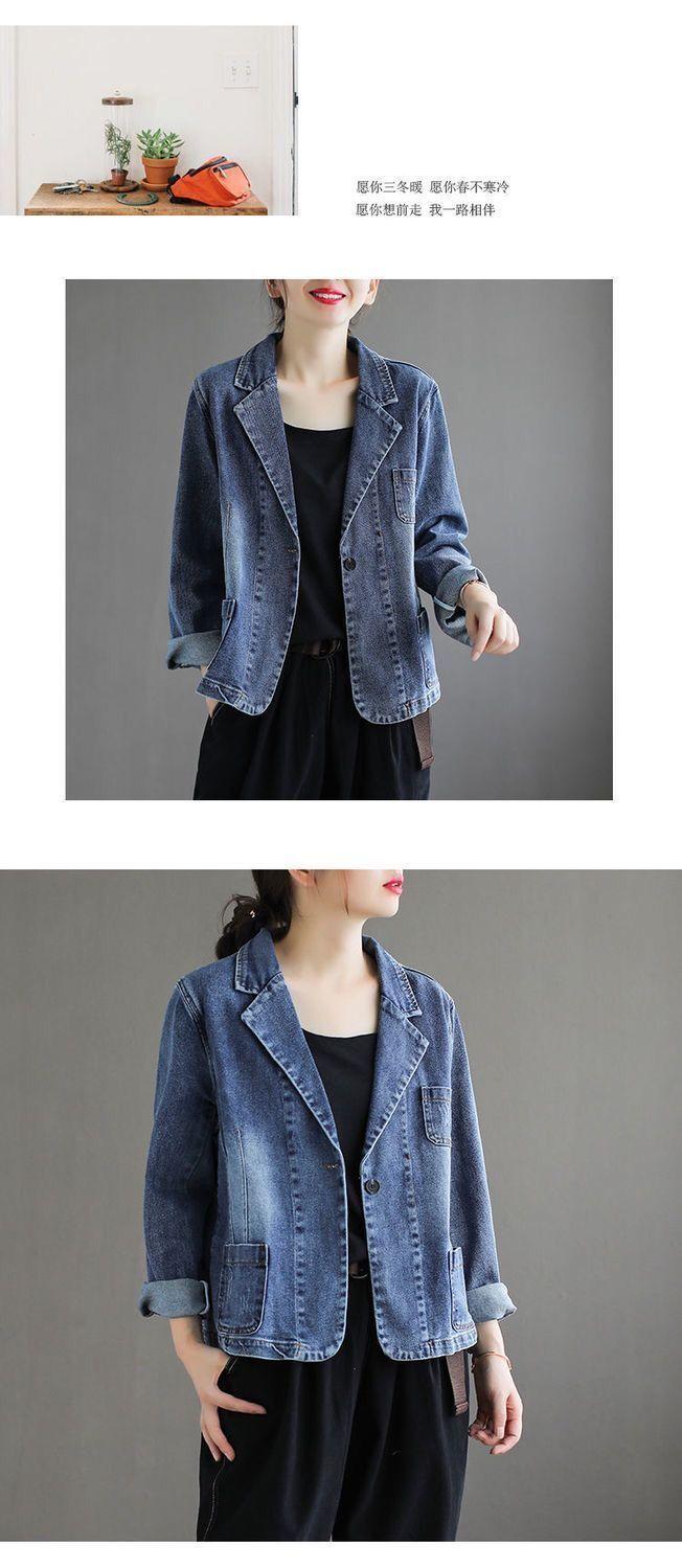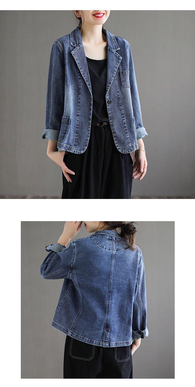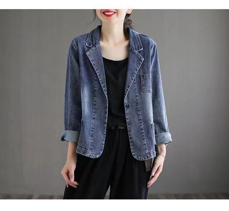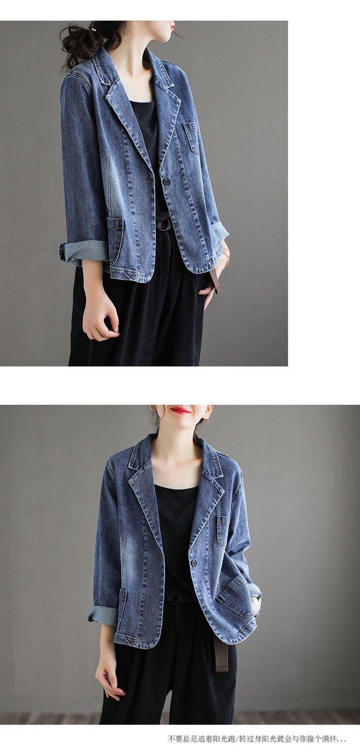 Chamarra de mezclilla para mujer 2025 Otoño Nuevo estilo Literario Retro Estilo coreano Suelta y versátil Traje casual Top Ins Tendencia