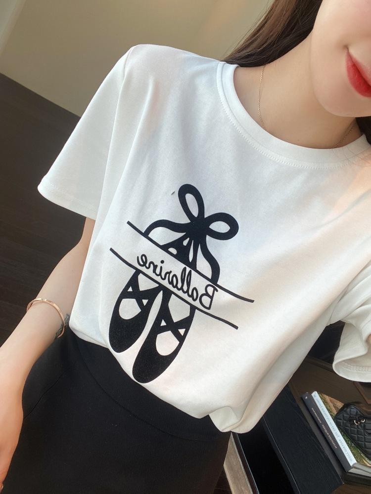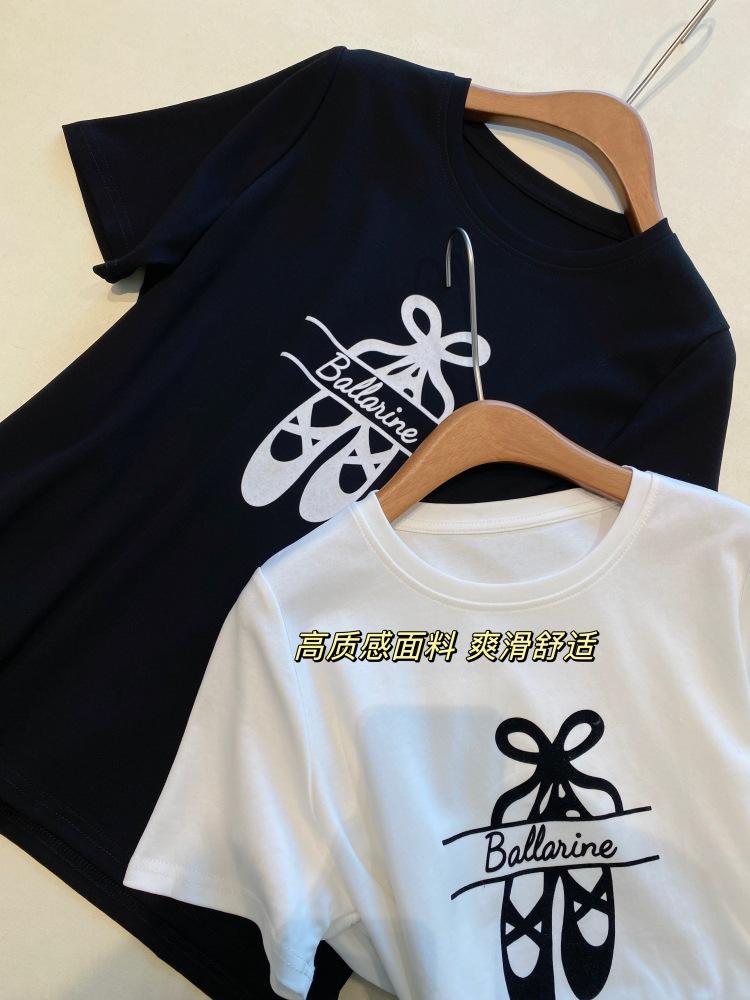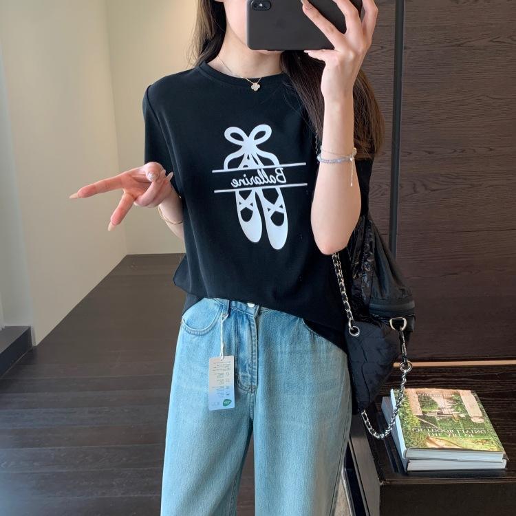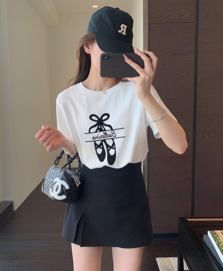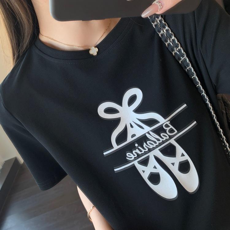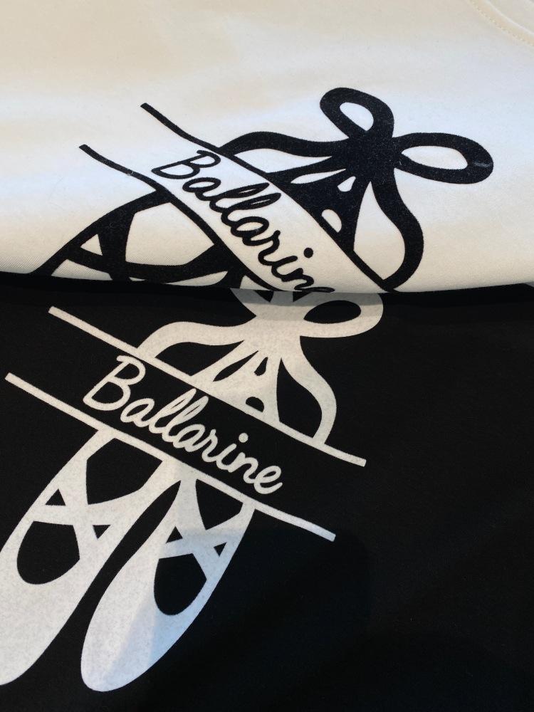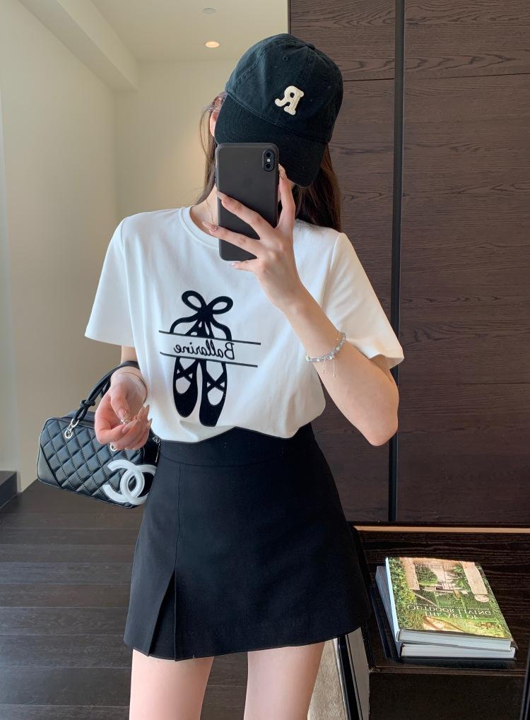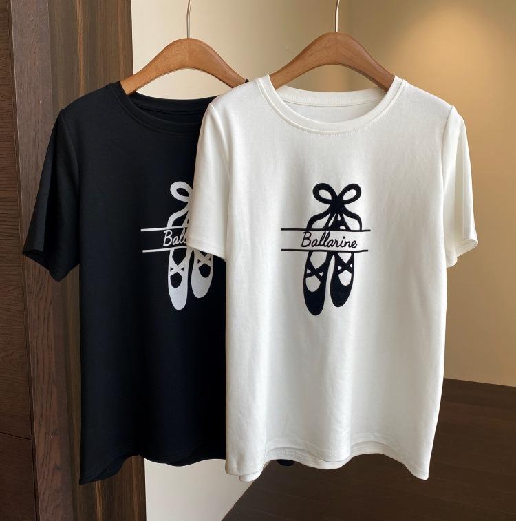 Camiseta de manga corta con zapatillas de ballet con flocado en el pecho