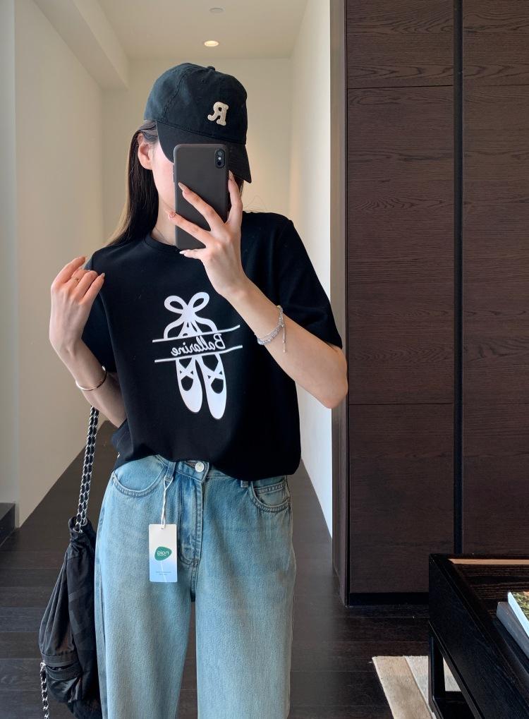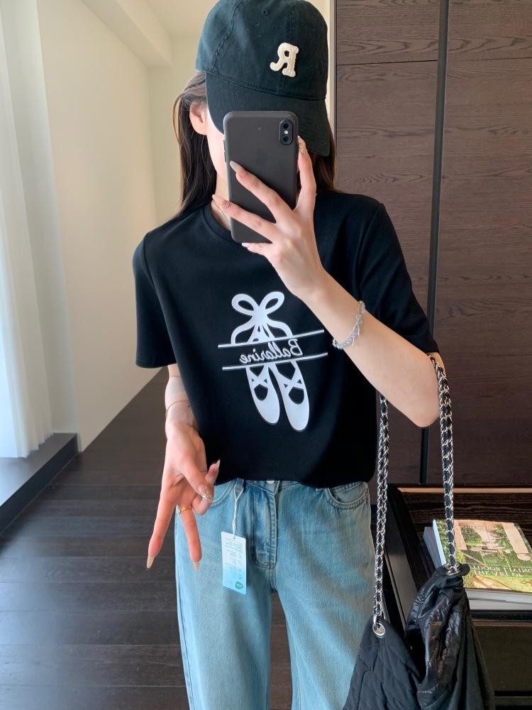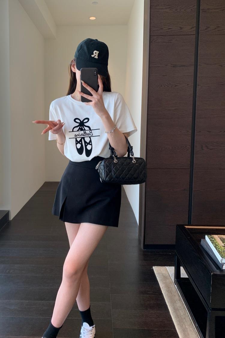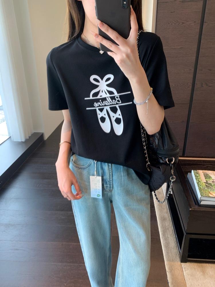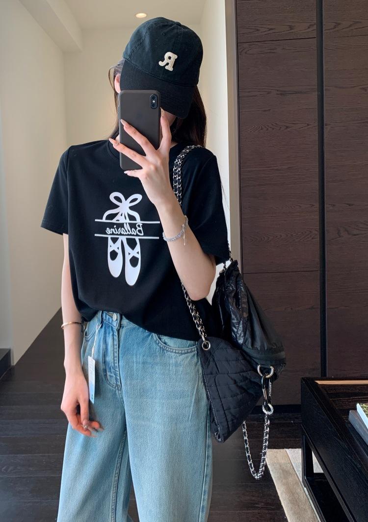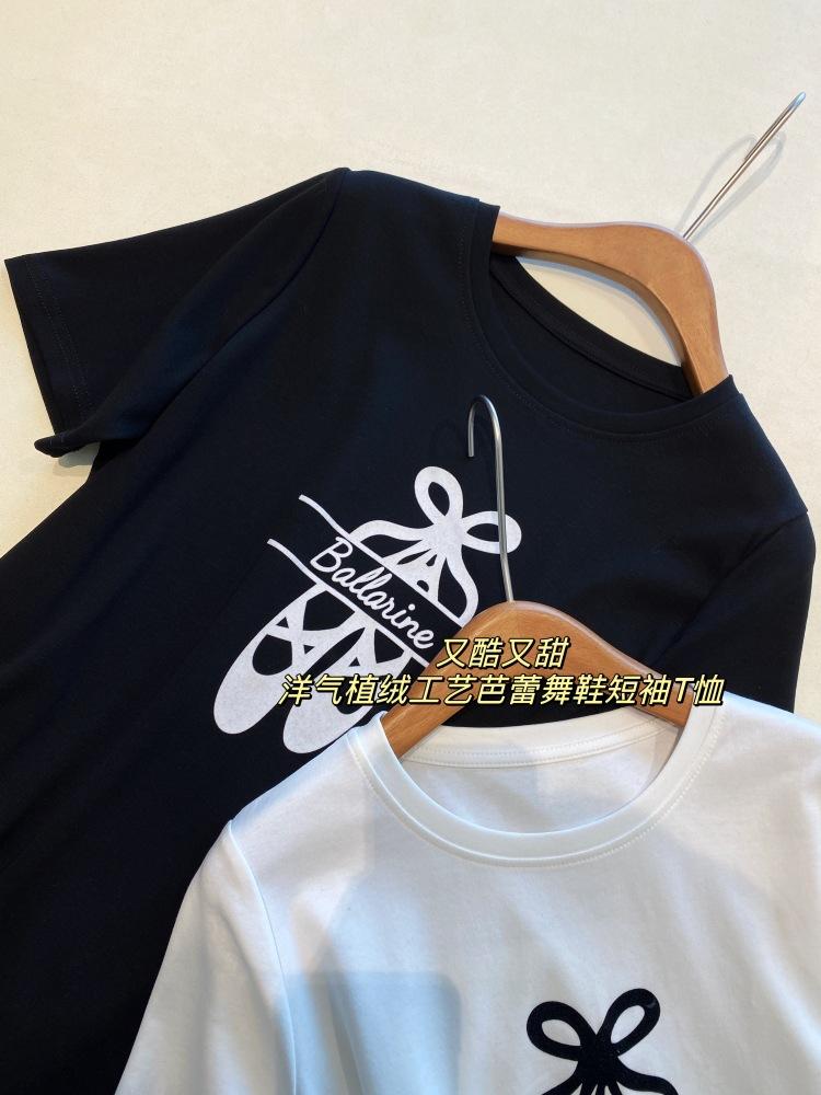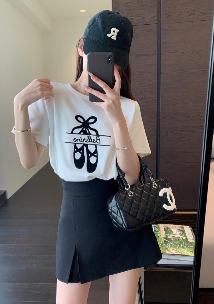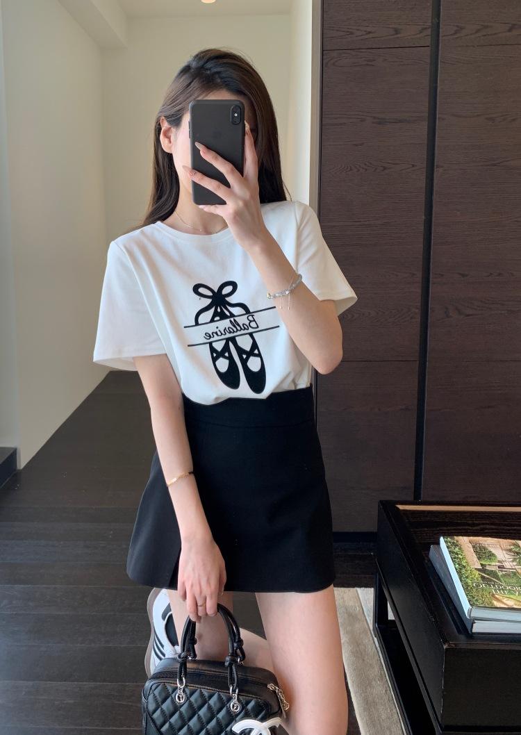 Camiseta de manga corta con zapatillas de ballet con flocado en el pecho