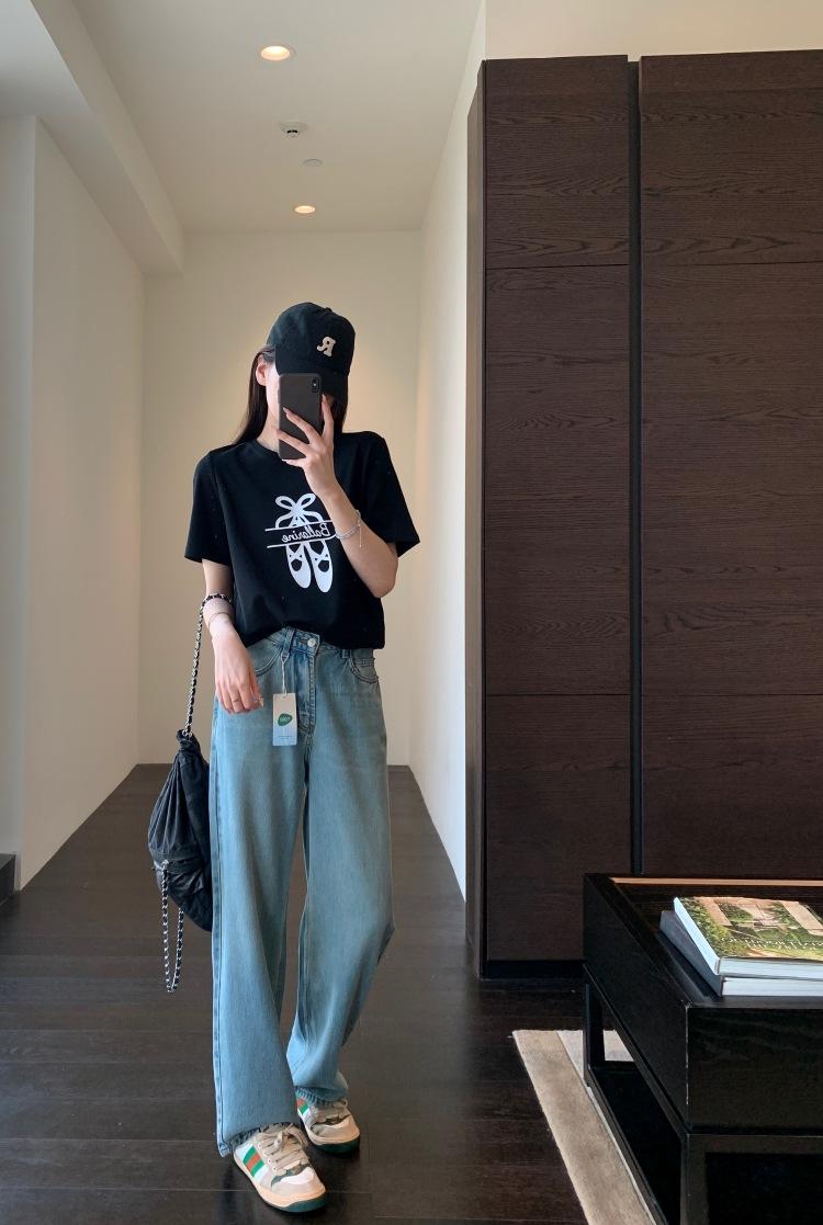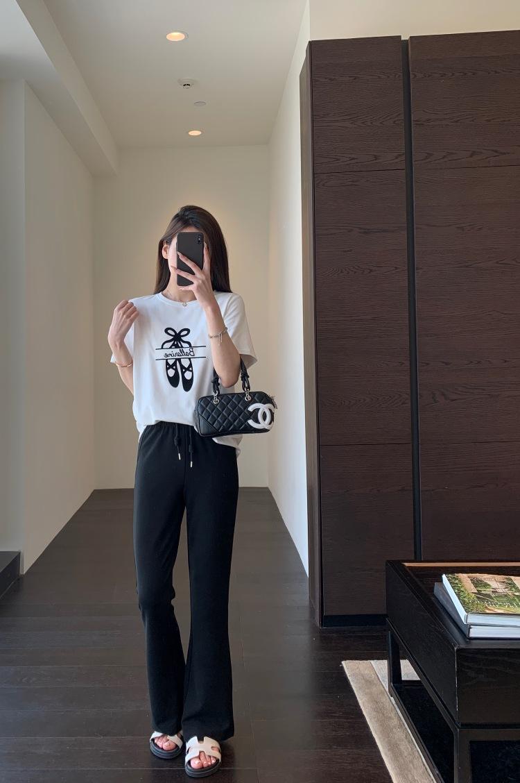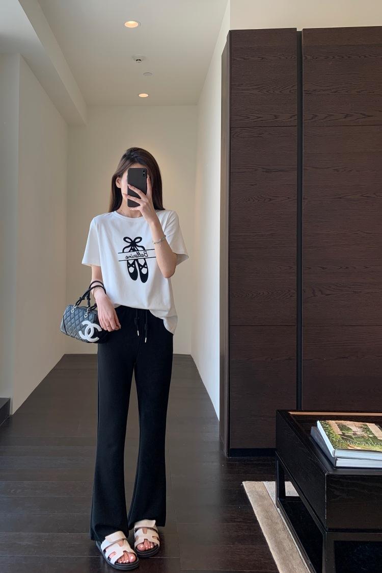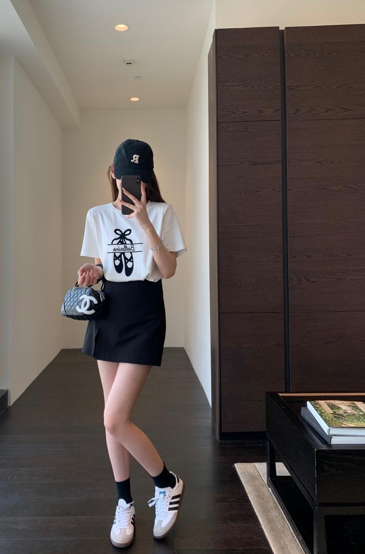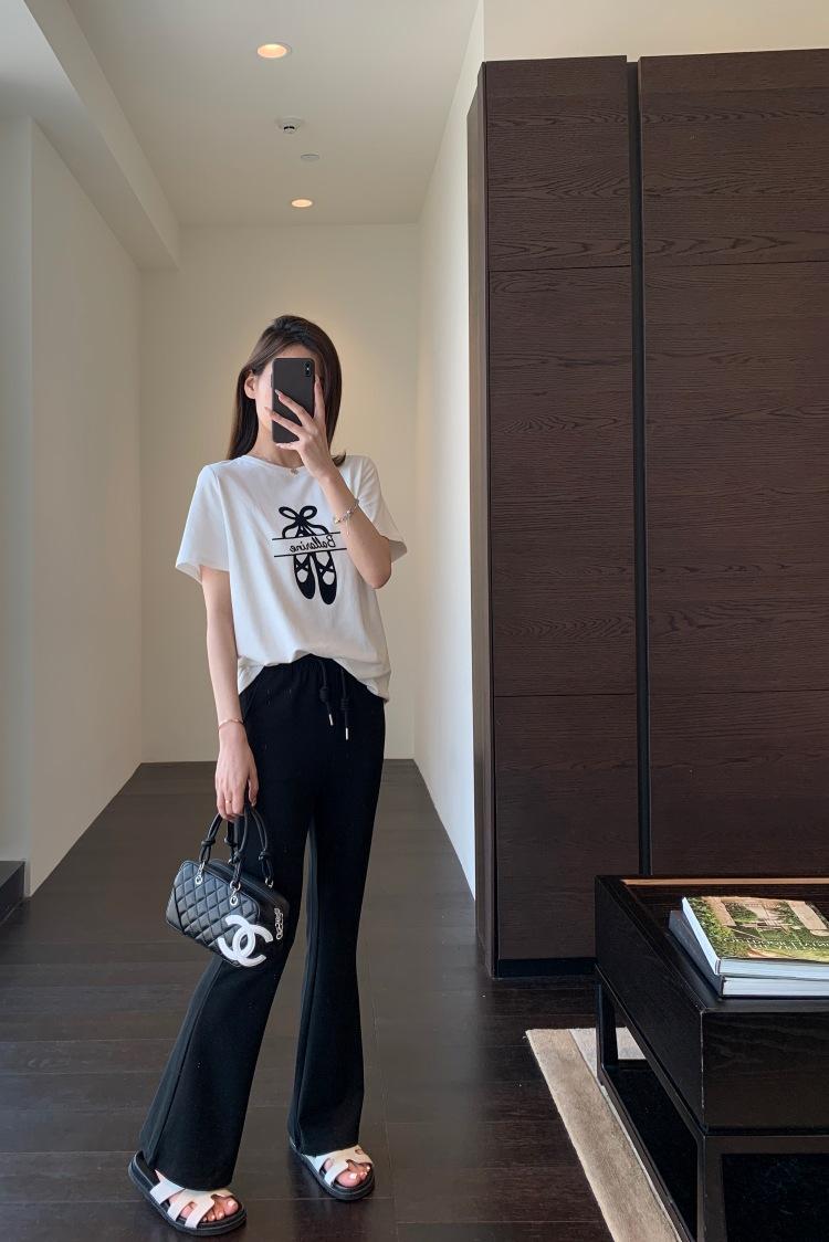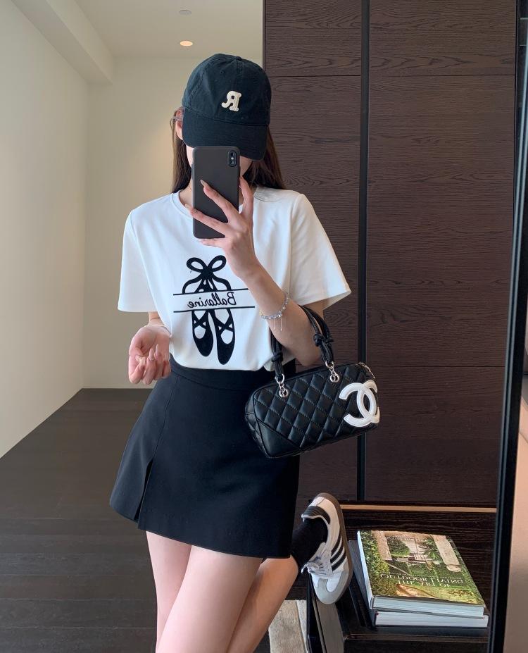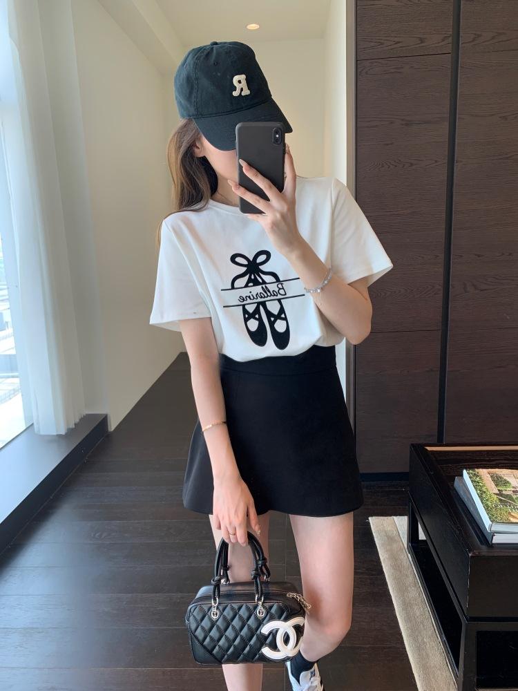 Camiseta de manga corta con zapatillas de ballet con flocado en el pecho