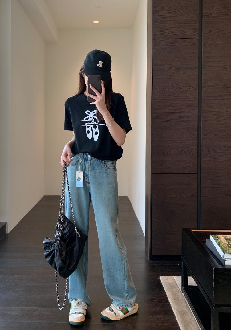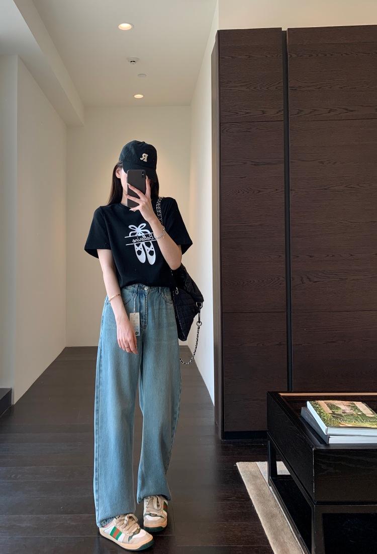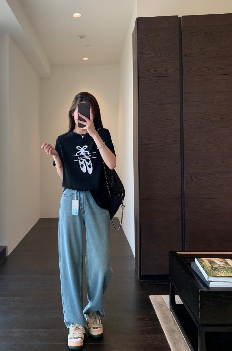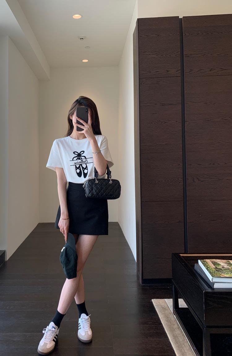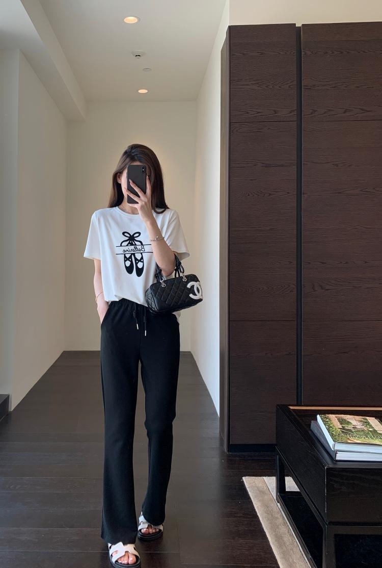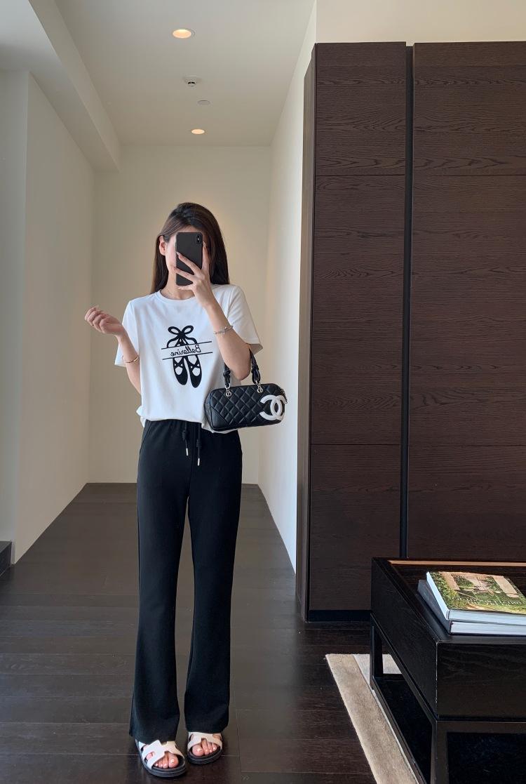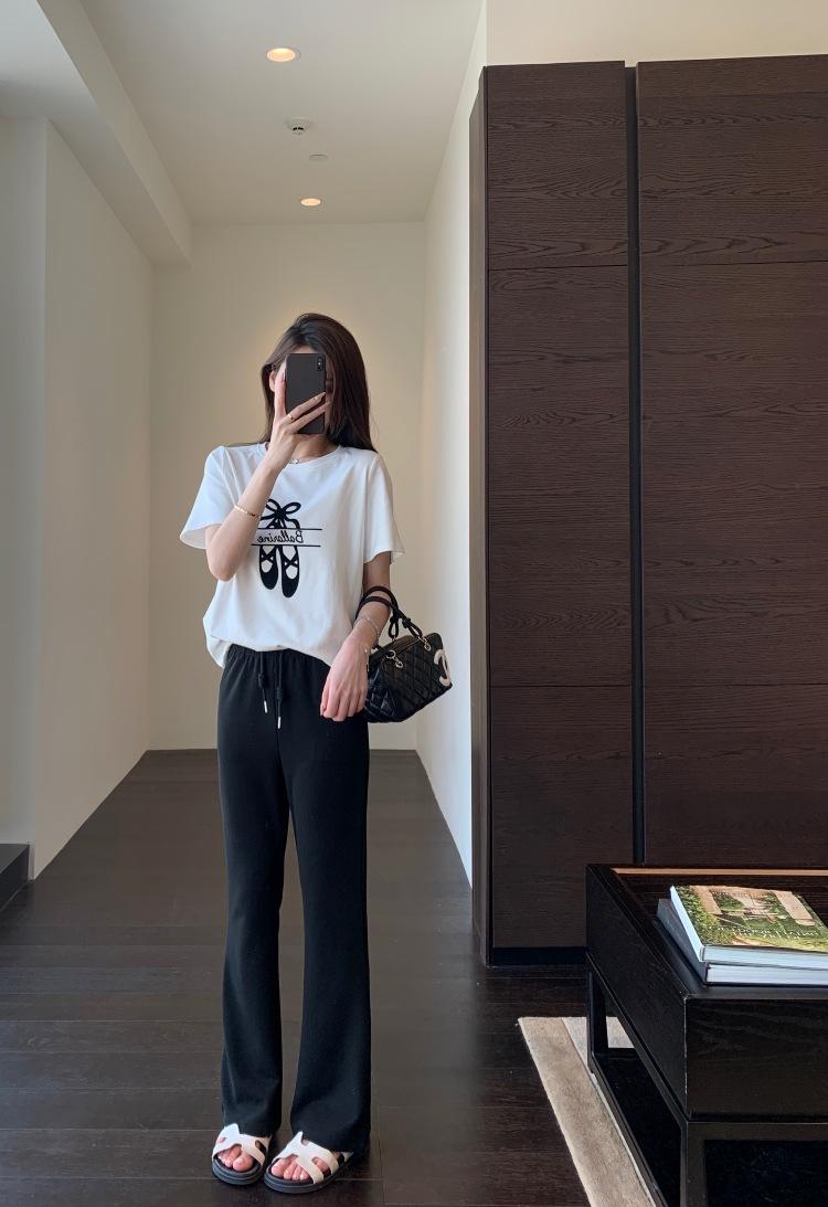 Camiseta de manga corta con zapatillas de ballet con flocado en el pecho