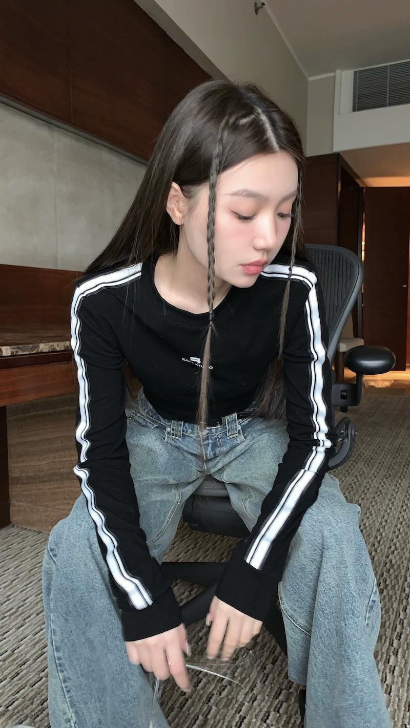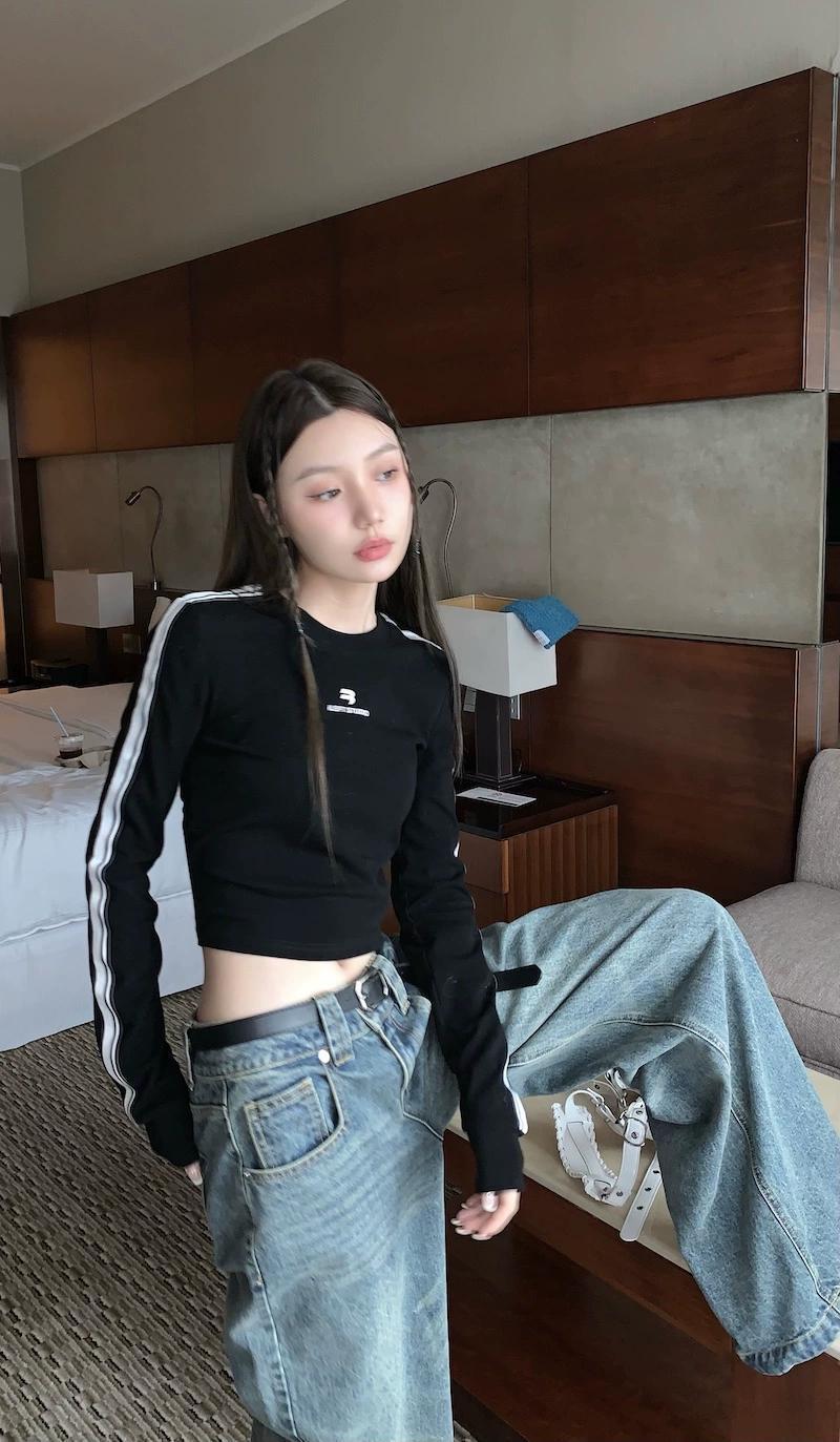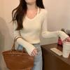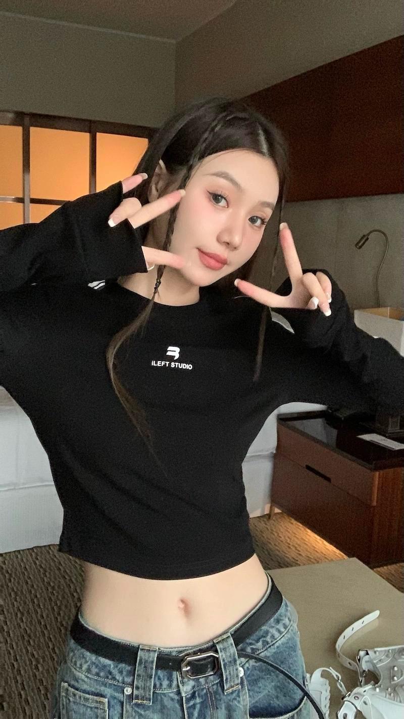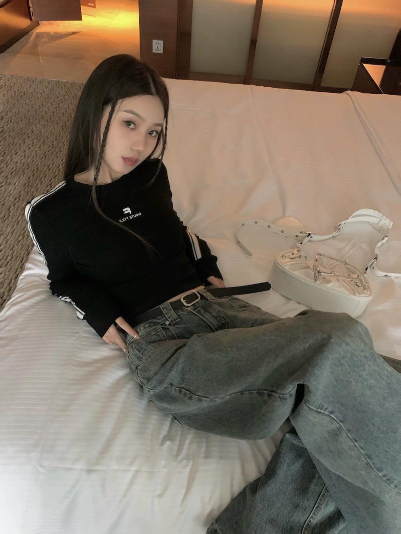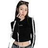 Camiseta Negra Spice Girl Sentido del Diseño Deseo Puro Manga Larga Niche Camiseta Base Otoño para Mujer Top Ajustado Interior