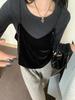 2024 Nuevo Camisola de Mujer Terciopelo Francés Engrosado Negro Retro Elegante Cuello en V Corto Capa Exterior Chaleco en Capas