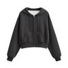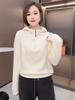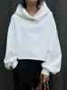 Suéter corto con capucha y media cremallera estilo americano para mujer, otoño 2023, nuevo, holgado, elástico, de cintura alta, manga larga
