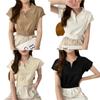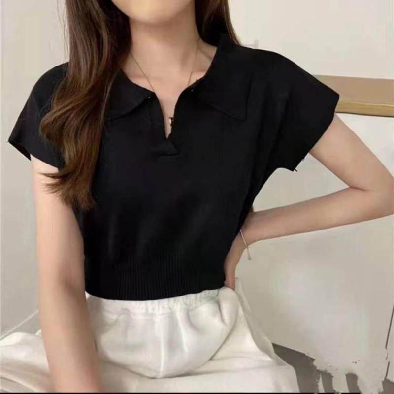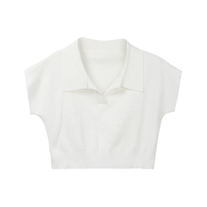 2023 Nueva Camiseta de Manga Corta Estilo Coreano de Verano Tejido de Punto Corto Solapa Color Puro Top para Mujer