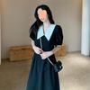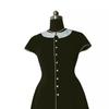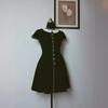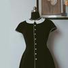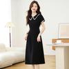 Vestido negro pequeño, ajustado, estilo Hepburn retro francés, de cintura pequeña, con cuello de muñeca, para mujer, de verano